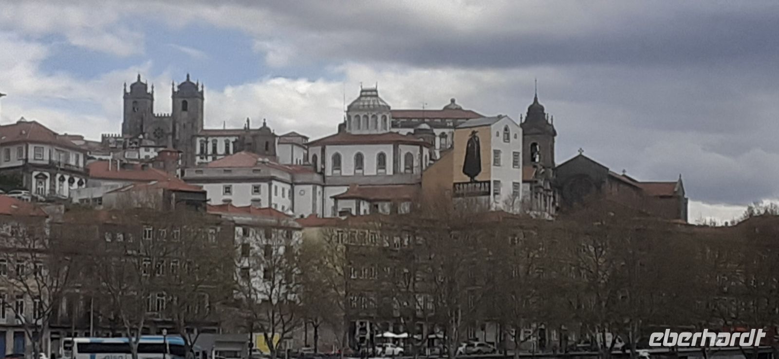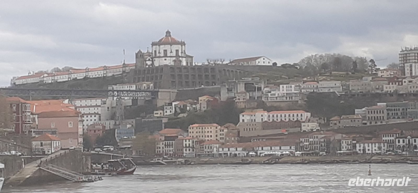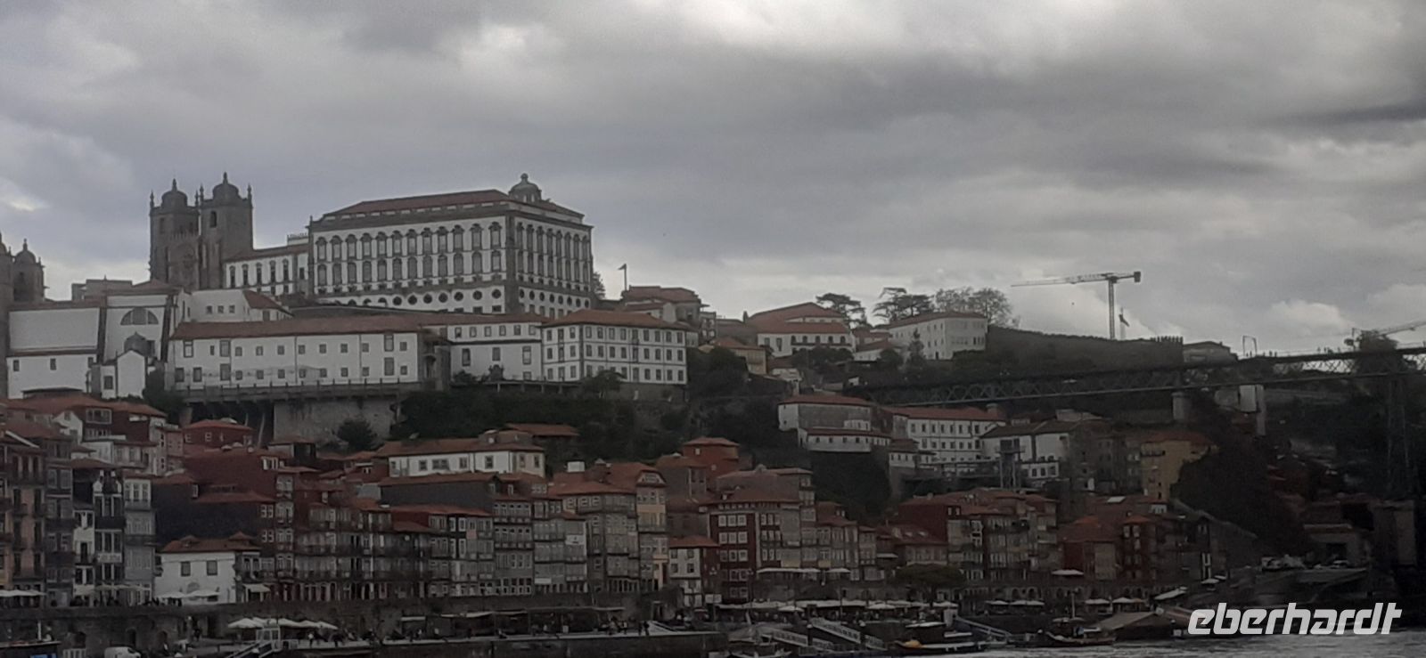 Nach dem geneinsamen letzten Mittagessen an Bord, ging es mit dem Bus zur Stadtrundfahrt. Leider begann es gerade jetzt heftig zu regnen. An der Kathedrale stiegen wir aus und liefen gemeinsam zum Bahnhof. Auch dieser ist für seine prächtigen Wandbilder aus Kacheln bekannt. Zurück an der Kathedrale, blickten wir hinunter zur Anlegestelle des Schiffes und auf die Mündung des Douro. Leider ist das Bild von Porto aktuell durch viele Baustellen für die neue Metrolinie geprägt. Und auch die Promenade am Atlantik war aufgrund des bevorstehenden Neuregens und angekündigten Sturms bereits gesperrt, sodass die Rundfahrt kurz ausfiel und viele schon früher in den Weinkeller einkehren wollten. In Gaia befinden sich zahlreiche Kellereien, die den typischen Portwein produzieren. Auch wir genossen einen Portugieser - ein gelungener Ausklang des Tages.