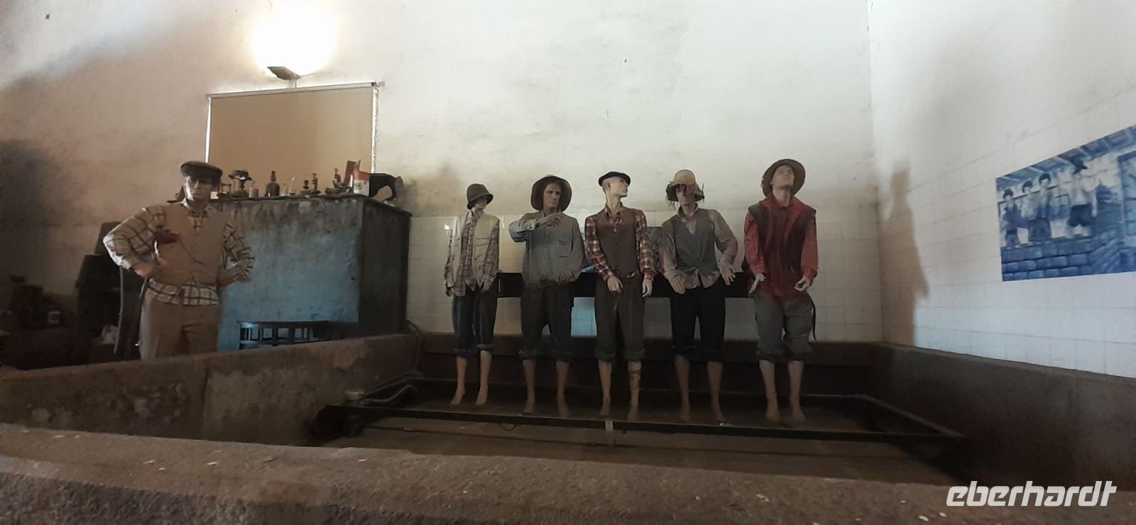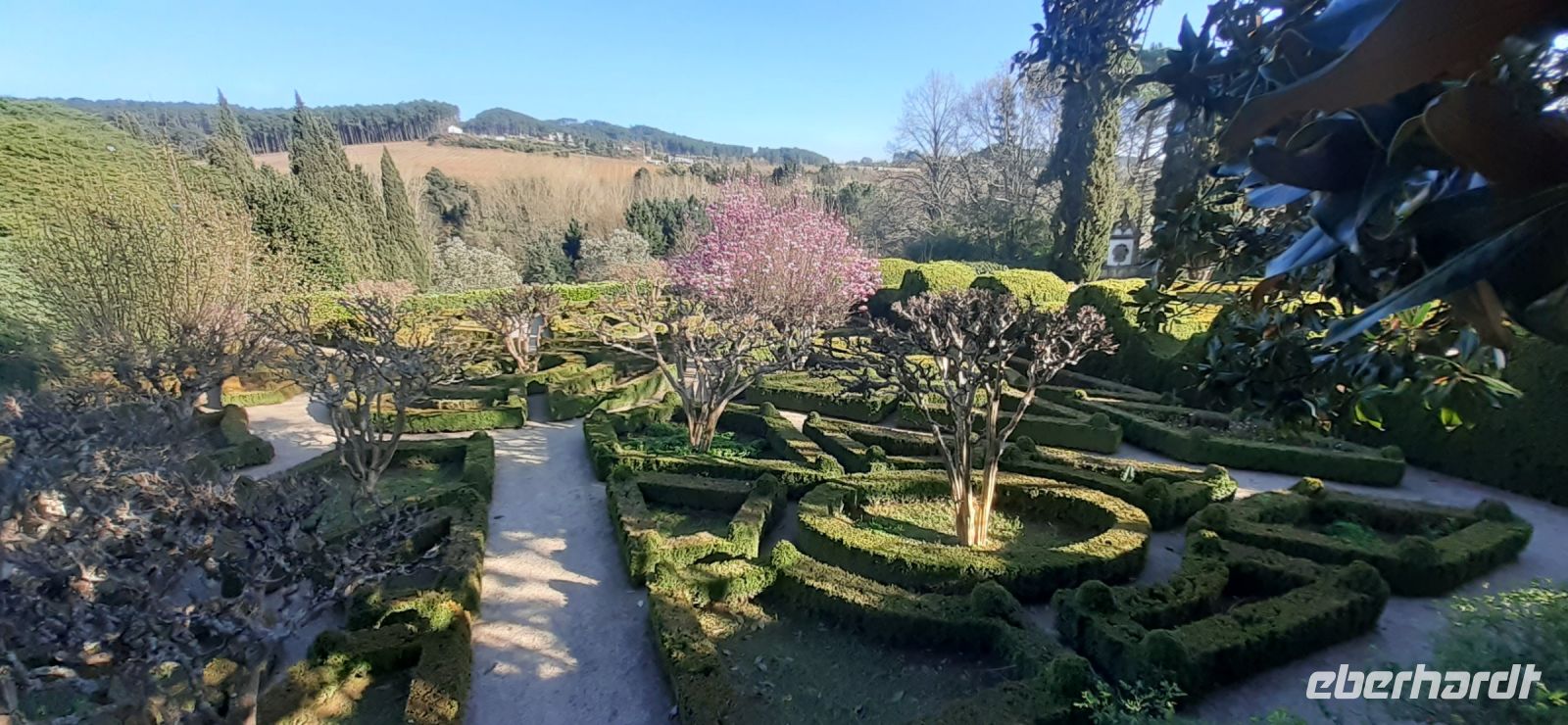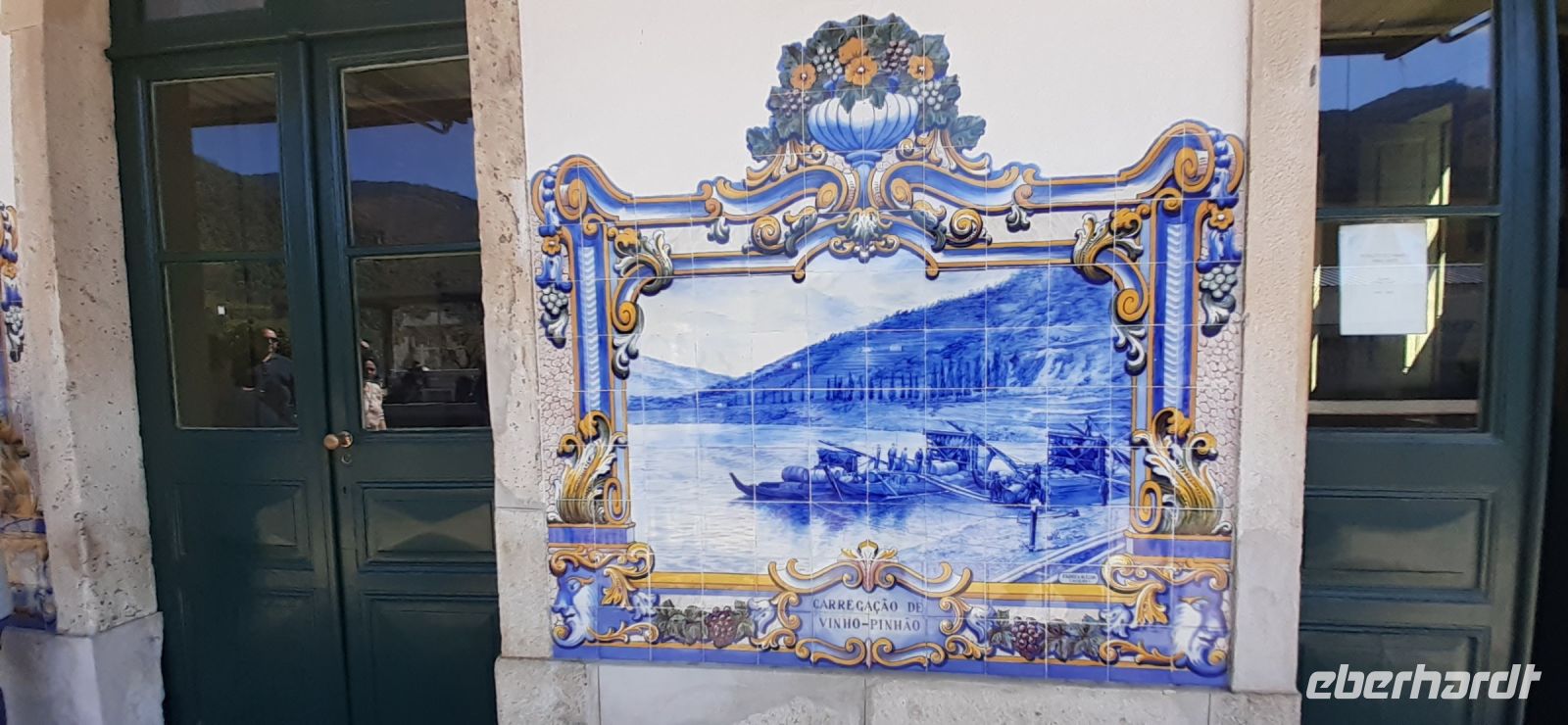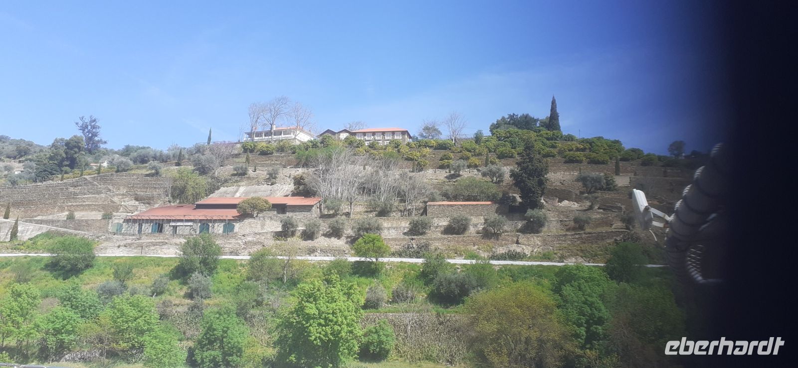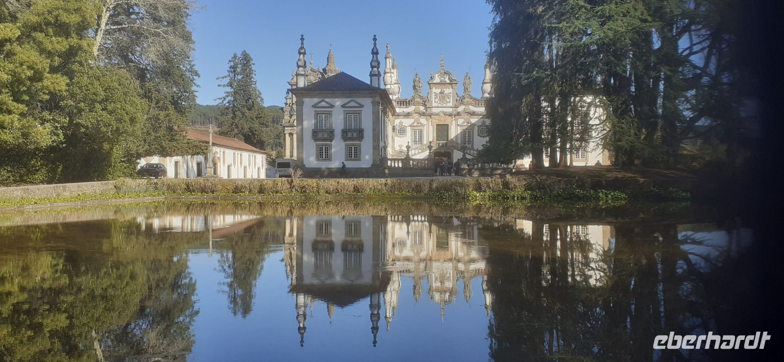 Nun hieß es, für die nächsten Tage flexibel zu bleiben und Daumen zu drücken. Das Ausflugsprogramm musste aufgrund des Hochwassers angepasst werden. So fuhren wir heute zunächst entlang des Duoro nach Pinhao. Der hiesige Bahnhof ist für seine wundervollen Azulejos, die blauen Kachelbilder bekannt. Diese waren prachtvolle und typisch portugiesische Fotomotive für uns! Und wie es Zufälle manchmal wollen, rollte für uns auch ein Zug im Bahnhof herein. Unser Buschauffeur Pedro brachte uns sicher auf kurvenreicher, aber wundervoller Strecke durch die Weinberge und vorbei an Korkeichen zur Quinta Avessada. Hier erwartete man uns bereits mit einem Glas Muskateller und Akkordeon-Musik. Humorvoll erhielten wir Einblick in den Anbau der Trauben und das seit Generationen geführte Weingut. Edel war das Mittagessen für uns angerichtet und so ließen wir uns die traditionellen Speisen schmecken. Gut gestärkt und gelaunt ging es weiter zum Mateuspalast in die Nähe von Vila Real. Der heutige Barock-Palast datiert auf 1488. Wir besichtigten die Räume, in denen vor allem die geschnitzten Holzdecken sowie eine umfangreiche Bibliothek, in der wir auch deutsche Titel entdeckten, beeindruckten. Malerisch ist auch der umgebende Park mit Kräutern, duftenden Magnolien und schönen Sichtachsen. Im vorgelagerten Wasserbecken spiegelte sich der gesamte Palast im Sonnenlicht. Zurück an Bord, genossen wir ein leckeres Essen und stimmungsvolle portugiesische Folklore mit Fado-Klängen. So genussvoll darf ein Tag enden.