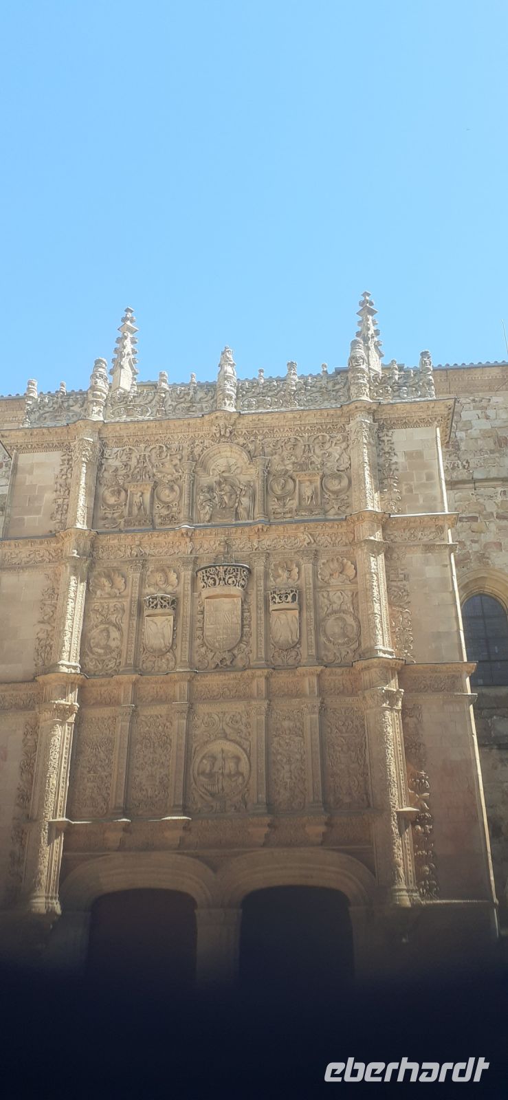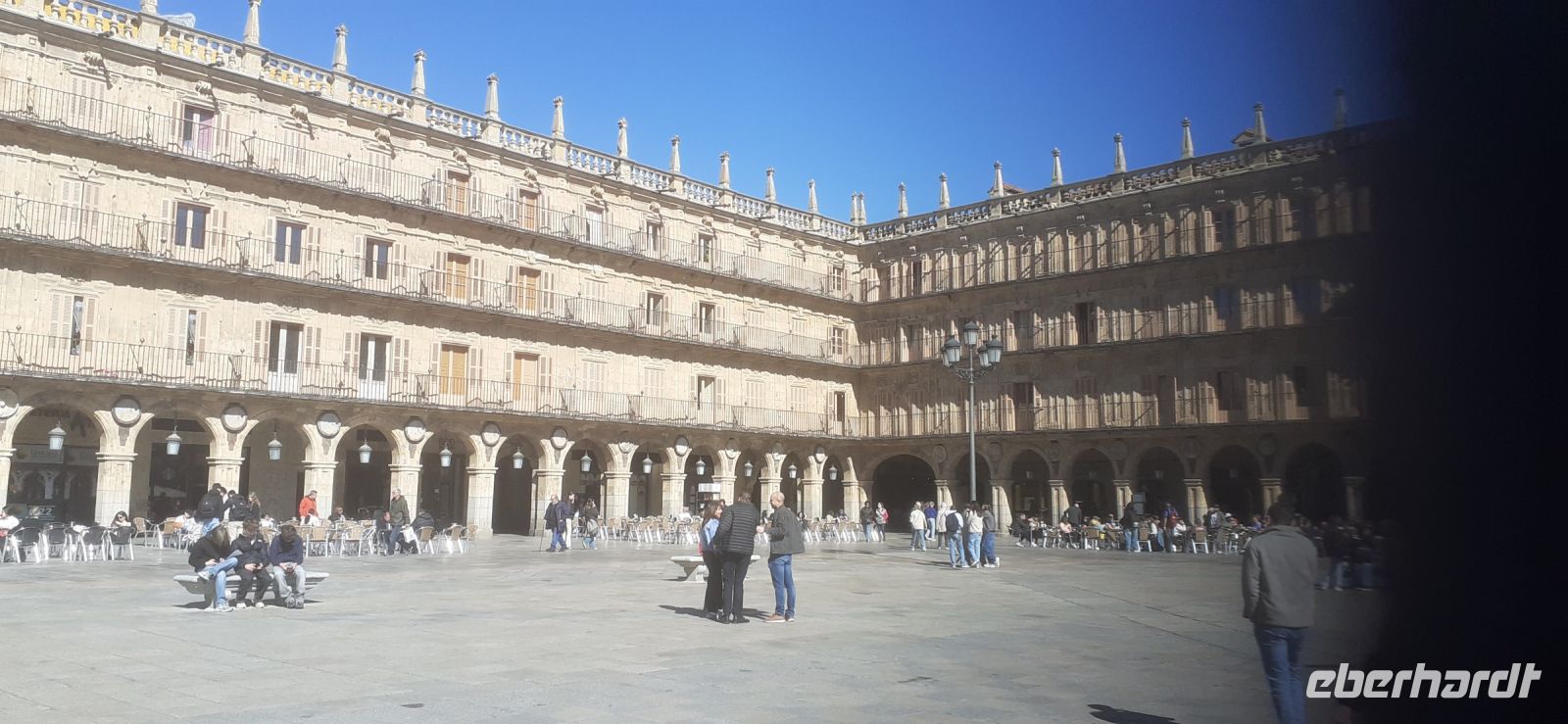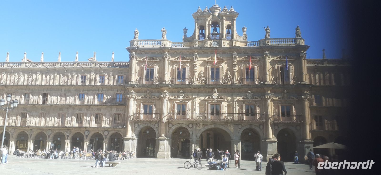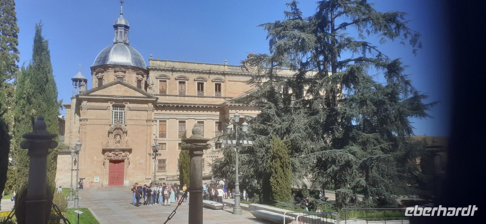 Der Tag erwartete uns frostig, denn wir starteten bei kühlen 5 Grad am frühen Morgen nach Salamanca. Die Hochebene, die wir durchquerten, war sanftes Weideland. Unterwegs sahen wir zahlreiche Störche. Gegen 10 Uhr erreichten wir die Universitätsstadt. Aufgrund der späteren spanischen Siesta hatten wir zunächst freie Zeit, die Stadt individuell zu erkunden. Es hatte sich zwischenzeitlich gut erwärmt, sodass Einzelne einen Kaffee in der Sonne tranken, andere die Geschäfte „stürmten“. Das typisch spanische Mittagessen mit Paella und Tortilla schmeckte köstlich und die anschließende Flamenco-Show vermittelte das vielbesagte spanische Temperament. Danach waren alle gut für den Stadtrundgang gestärkt: Wir sahen den Plaza Major, das Haus der Muscheln, die Fassade der Universität sowie die neue und die alte Kathedrale. Und natürlich suchten auch wir nach „dem“ Frosch und fanden den Astronauten, der nach der Restaurierung der neuen Kathedrale entstand.