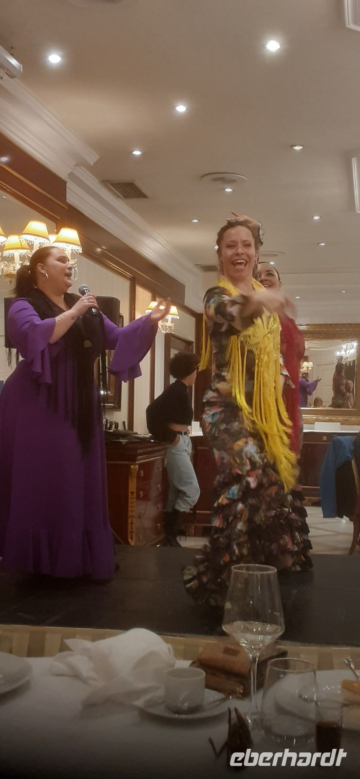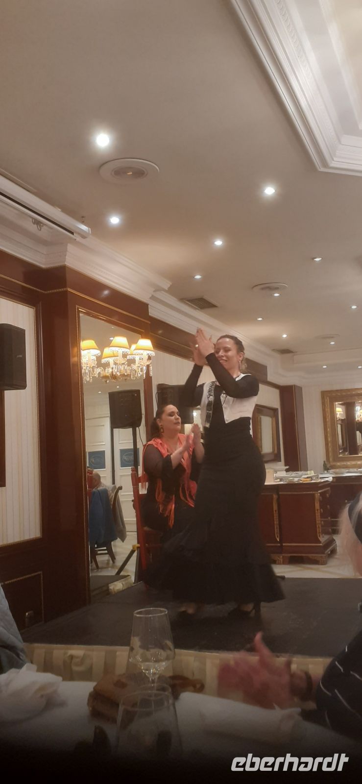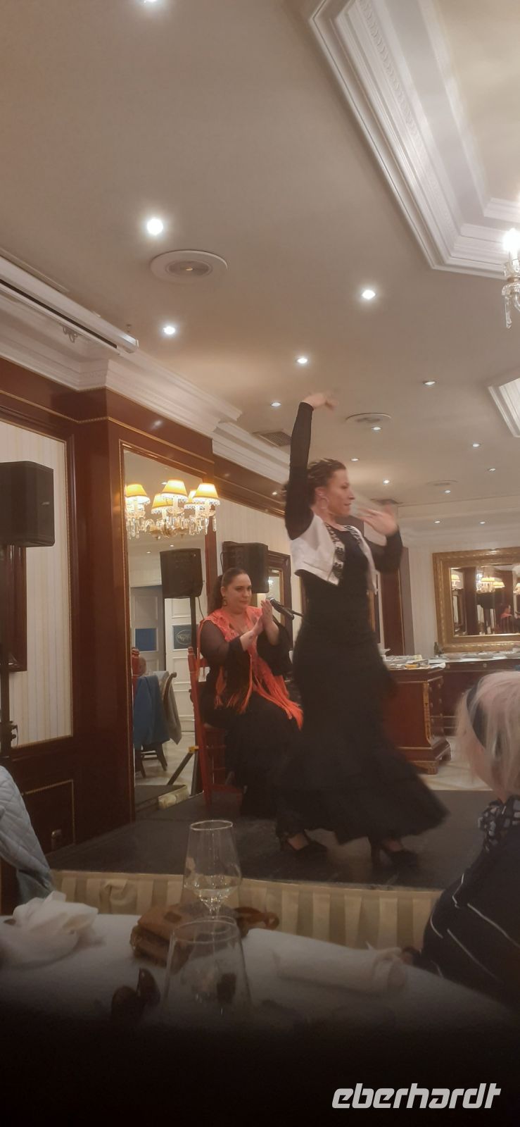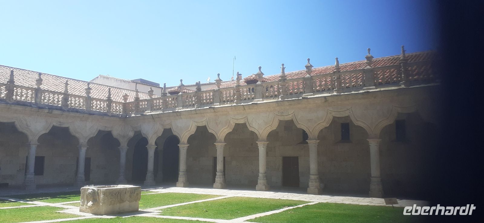 Der Tag erwartete uns frostig, denn wir starteten bei kühlen 5 Grad am frühen Morgen nach Salamanca. Die Hochebene, die wir durchquerten, war sanftes Weideland. Unterwegs sahen wir zahlreiche Störche. Gegen 10 Uhr erreichten wir die Universitätsstadt. Aufgrund der späteren spanischen Siesta hatten wir zunächst freie Zeit, die Stadt individuell zu erkunden. Es hatte sich zwischenzeitlich gut erwärmt, sodass Einzelne einen Kaffee in der Sonne tranken, andere die Geschäfte „stürmten“. Das typisch spanische Mittagessen mit Paella und Tortilla schmeckte köstlich und die anschließende Flamenco-Show vermittelte das vielbesagte spanische Temperament. Danach waren alle gut für den Stadtrundgang gestärkt: Wir sahen den Plaza Major, das Haus der Muscheln, die Fassade der Universität sowie die neue und die alte Kathedrale. Und natürlich suchten auch wir nach „dem“ Frosch und fanden den Astronauten, der nach der Restaurierung der neuen Kathedrale entstand.