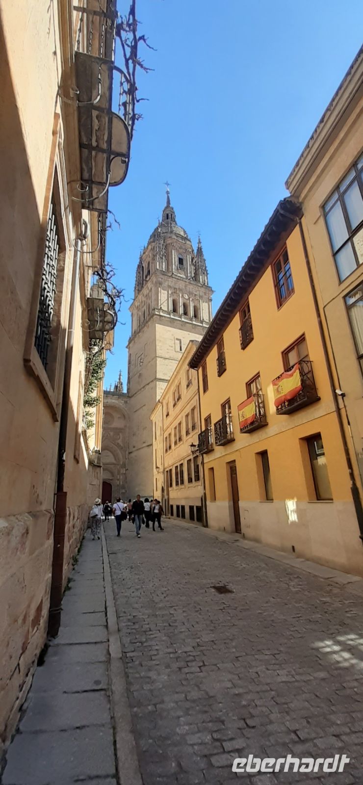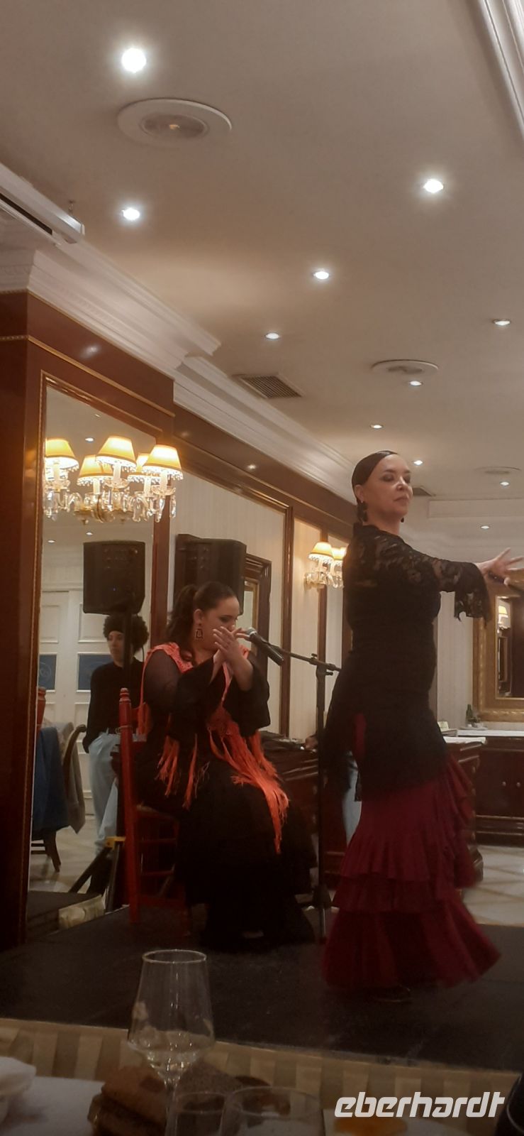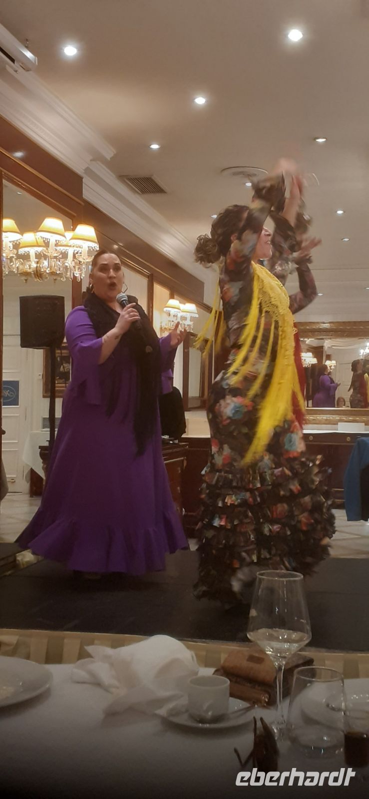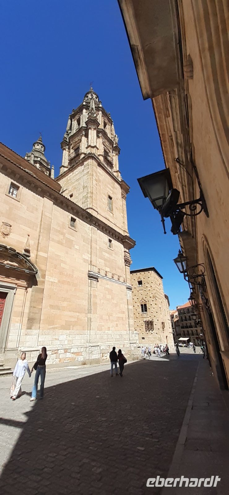 Der Tag erwartete uns frostig, denn wir starteten bei kühlen 5 Grad am frühen Morgen nach Salamanca. Die Hochebene, die wir durchquerten, war sanftes Weideland. Unterwegs sahen wir zahlreiche Störche. Gegen 10 Uhr erreichten wir die Universitätsstadt. Aufgrund der späteren spanischen Siesta hatten wir zunächst freie Zeit, die Stadt individuell zu erkunden. Es hatte sich zwischenzeitlich gut erwärmt, sodass Einzelne einen Kaffee in der Sonne tranken, andere die Geschäfte „stürmten“. Das typisch spanische Mittagessen mit Paella und Tortilla schmeckte köstlich und die anschließende Flamenco-Show vermittelte das vielbesagte spanische Temperament. Danach waren alle gut für den Stadtrundgang gestärkt: Wir sahen den Plaza Major, das Haus der Muscheln, die Fassade der Universität sowie die neue und die alte Kathedrale. Und natürlich suchten auch wir nach „dem“ Frosch und fanden den Astronauten, der nach der Restaurierung der neuen Kathedrale entstand.
