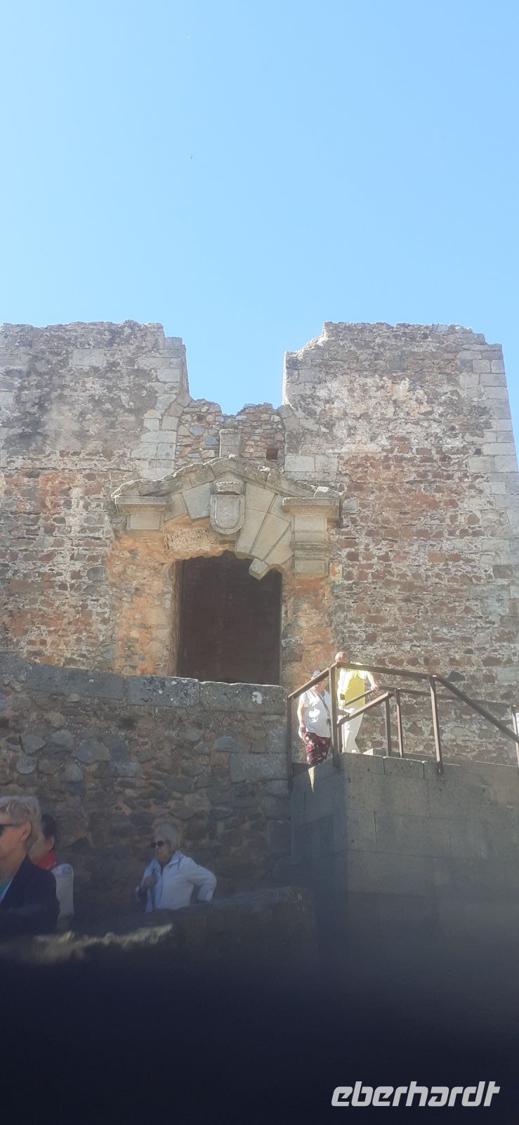 Nach unserer Ankunft am Nachmittag in Barga d´Alva verließen wir das Schiff zu unserem Ausflug nach Castelo Rodrigo. Entlang der spanischen Grenze ging es hinauf auf den Marofa-Bergrücken. Hier befindet sich am Wallfahrtsort ein Christus-Statue, von der sich ein herrlicher Blick über die Hochebene bis zu schneebedeckten Bergen am Horizont und bis zum Bergdorf bot. Wenig später erreichten wir das verschlafene urtümliche Bergdorf und starteten unseren gemeinsamen Spaziergang durch die Gassen. Der Ort gehört seit 1994 zu den 12 historischen Dörfern Portugals, den Aldeias Históricas. Kopfsteinpflaster und unverputzte Steinhäuser vermittelten einen mittelalterlichen Charme, der alle bezauberte. Und natürlich durfte auch der Kauf von Mandeln als Mitbringsel nicht fehlen.