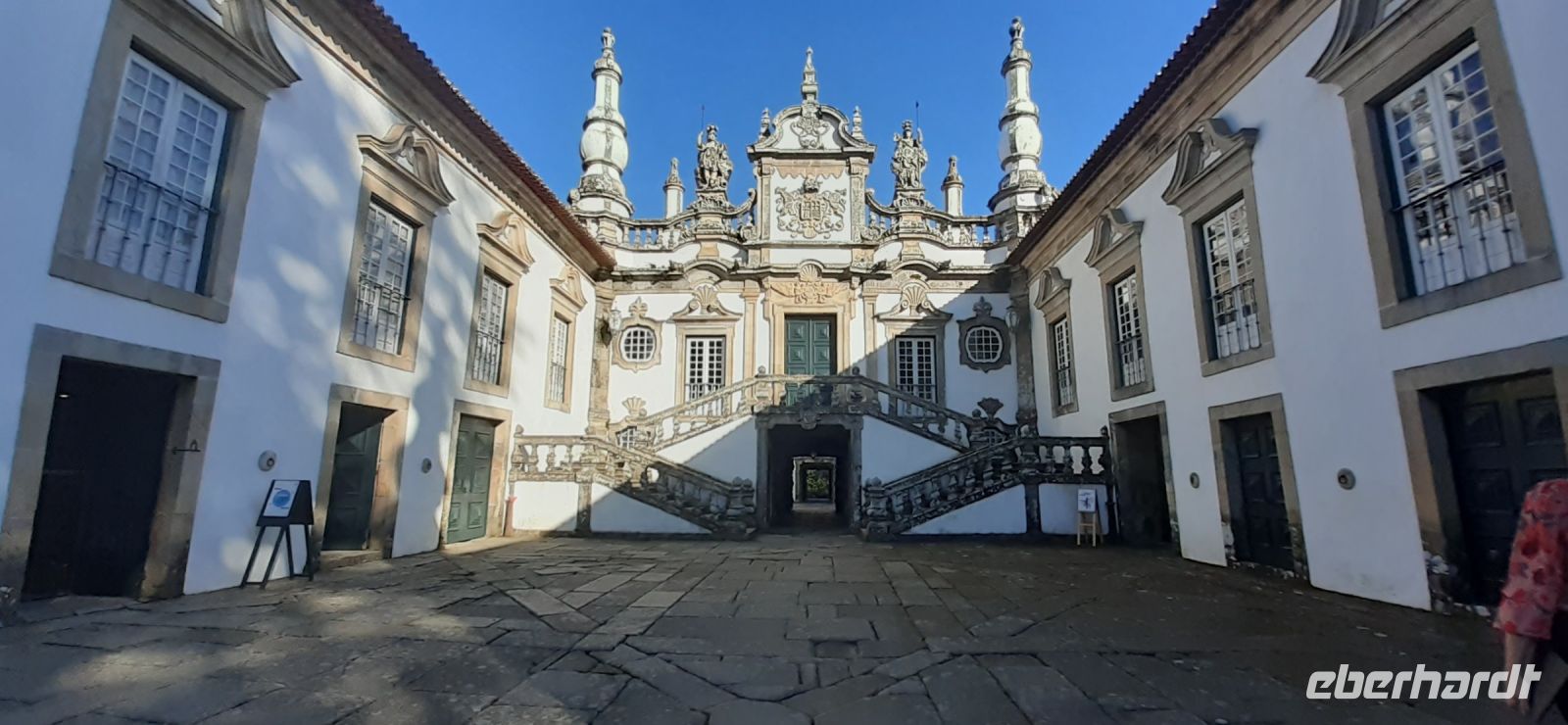 Nach einem reichhaltigen Frühstück an Bord ging es heute nach Lamego. 1143 wurde hier der erste portugiesische König, Alfons I., durch die Stände bestätigt. Die Stadt profitierte über viele Jahrhunderte von ihrer malerischen, aber auch strategisch bedeutenden Lage. Mitte des 16. Jh. begann eine rege Bautätigkeit. Besonders beeindruckend sind zahleiche Herrenhäuser, aber insbesondere die Kathedrale im Zentrum sowie der Wallfahrtsort Nossa Senhora dos Remedios auf einer Anhöhe über der Stadt. Die Rokoko-Kirche beherbergt den Schrein, die Doppeltreppe mit prächtigen Azulejos führt von der Stadt nach oben. Bequem machten wir es umgekehrt, besichtigten zuerst die Kirche mit dem Heiligtum und liefen oder fuhren dann nach unten. Hier blieb uns genügend Zeit für einen Spaziergang, einen Kaffee in der Sonne und die Besichtigung der Kathedrale.
