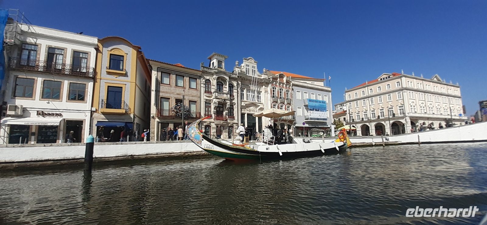 Ausgeschlafen verließen wir Lissabon Richtung Norden. Unseren ersten Stopp legten wir in Obidos ein. Das kleine Örtchen mit seinen verwinkelten schmalen Gassen erkundeten wir zu Fuß. Natürlich durfte auch eine Probe des typischen Kirschlikörs im Schokobecher nicht fehlen, für den Obidos bekannt ist. Hübsche kleine Läden luden uns zum Stöbern ein. Unsere Fahrt parallel zum Atlantik führte uns weiter nach Aviero. An der Mündung des Vouga gelegen, durchziehen den Ort zahlreiche Kanäle, sodass er den Beinamen „Venedig Portugals“ erhielt. Gemeinsam liefen wir kurz durch die Stadt, bevor wir individuell die Mittagspause verbrachten. Zahlreiche Cafés und Restaurants luden zum Entspannen ein. Danach bestiegen wir eine der typischen Gondeln, mit der wir die Stadt vom Wasser aus erlebten. Unser Gondolier war gut gelaunt wie wir. Unterwegs verkosteten wir die Avos Moles, die traditionelle Eierspeise aus Aviero. Hier wären wir gern noch etwas länger geblieben! Aufgrund der vielen Regenfälle im Vorfeld unserer Reise und dem Hochwasser führenden Douro ging es nicht wie geplant nach Porto, sondern zum aktuellen Liegeort des Schiffes Douro Queen in Peso da Régua, ca. 100 km östlich der Mündung. Herzlich wurden wir hier von der Crew empfangen und wenig später mit dem ersten Abendessen verwöhnt.