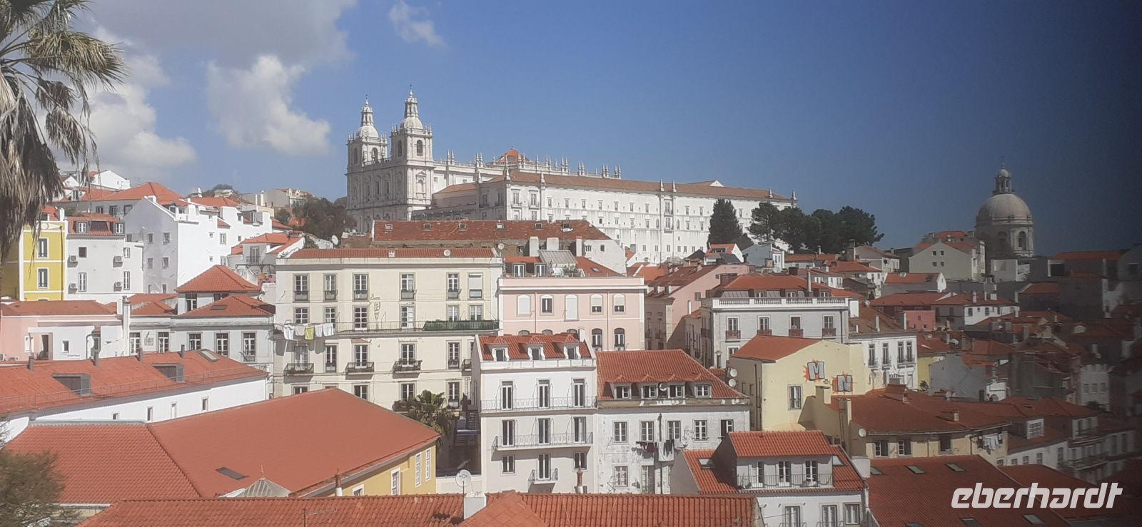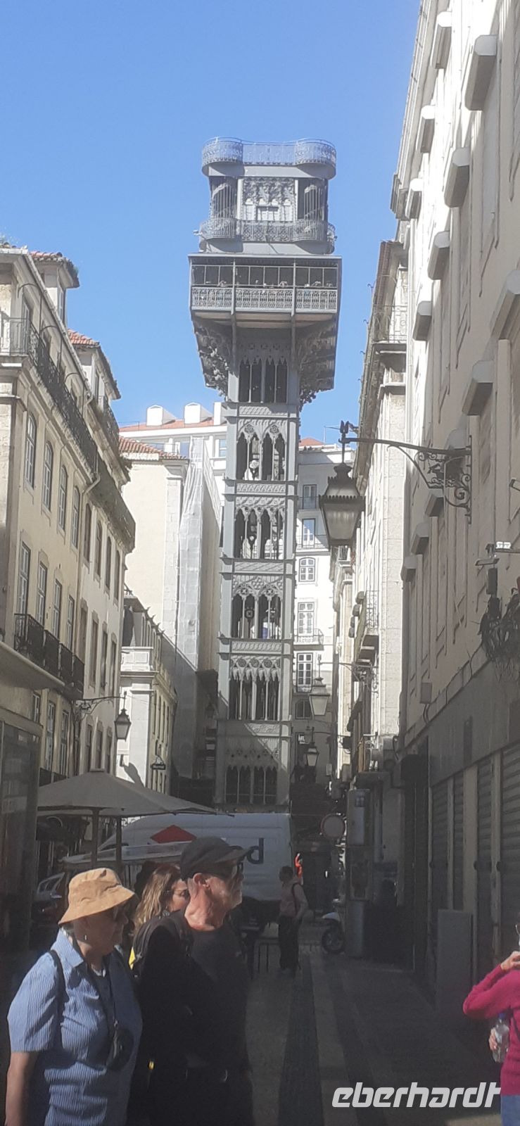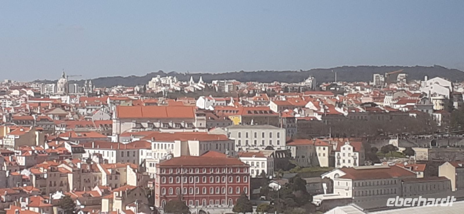 Nach dem reichhaltigen Frühstück fuhren wir mit dem Bus zur Stadtbesichtigung. Zuerst ging es hinauf zum Aussichtspunkt des Parks Eduardo VII, von dessen Terrasse sich uns ein prächtiges Panorama auf die Stadt und das Tal der Baixa bis zum Tejo bot. Vorbei an der stolzen Säule des Stadtplaners Pombal, erreichten wir die Prachtstraße Avenida da Liberdada mit der Eleganz des Jugendstils. An deren Ende befindet sich in einem Mosaik die Symbolik Portugals, die Abbildung der Caravelle mit den zwei schwarzen Raben. Nun ging es zu Fuß weiter. Hinauf zum Castelo de São Jorge halfen uns 2 Fahrstühle. Von oben bot sich erneut ein toller Blick auf die Stadt, bevor wir die Festungsanlage erkundeten. Durch schmale Gassen und auf Treppen ging es hinunter zur Alfama, dem ältesten Stadtteil mit der Kathedrale aus dem 12. Jahrhundert. Am Ende erreichten wir das Ufer des Tejo am Handelsplatz. Nun hatte ein Jeder Zeit für ein individuelles Mittagessen oder einen Bummel. Der zweite Teil der Besichtigungen startete mit dem Torre de Belem, dem bekannten Turm am Meer. Hier gab es auch ein Gläschen Portwein und die typischen Pasteis de Belem, eine süße Leckerei. Den ausführlichen Entdecker-Tag beendeten wir mit zwei weiteren Stopps am Seefahrerdenkmal und am bekannten Jerónimos-Kloster. Das Abendmenü nahmen wir in einem lokalen Restaurant in der Nähe des Hotels ein.