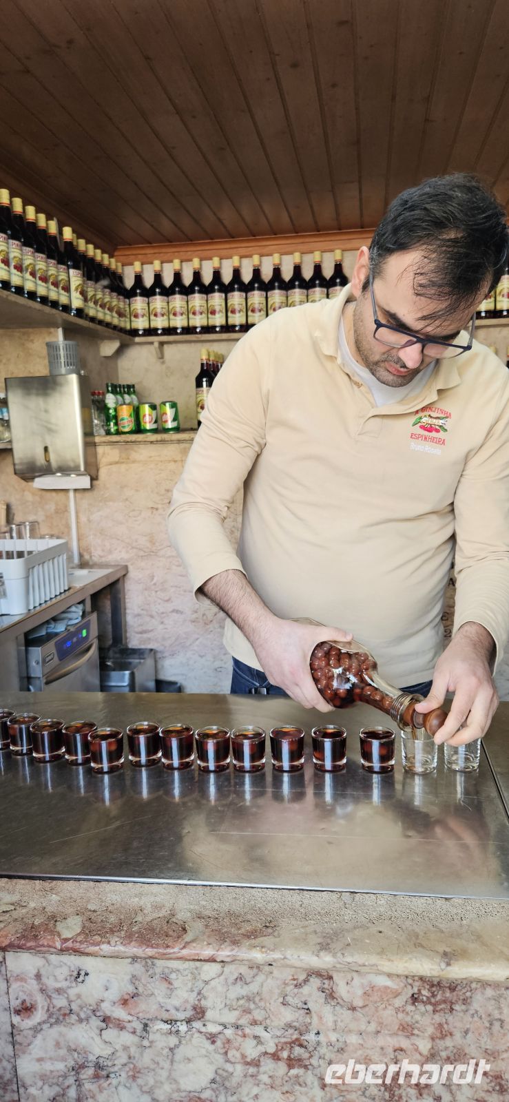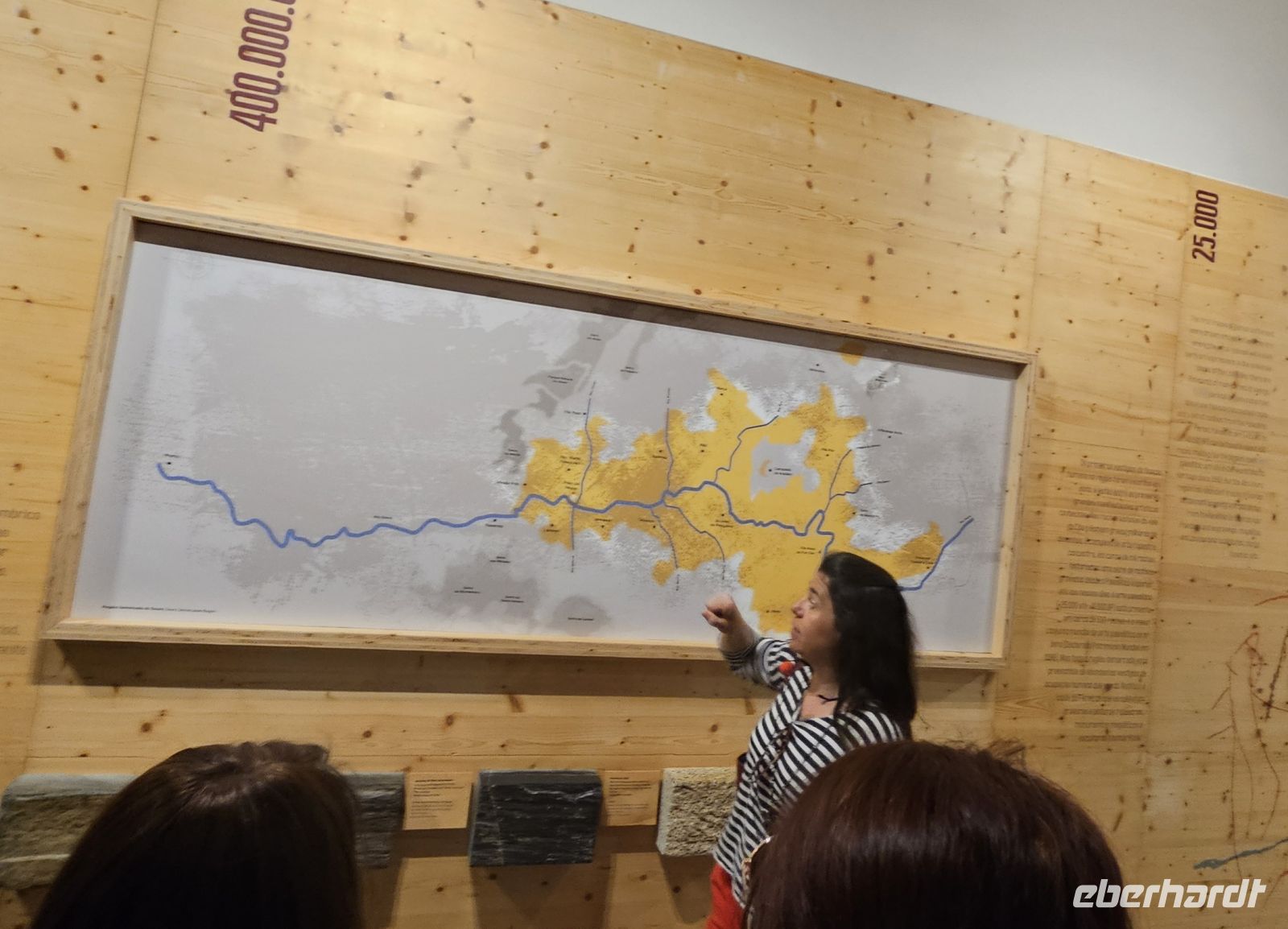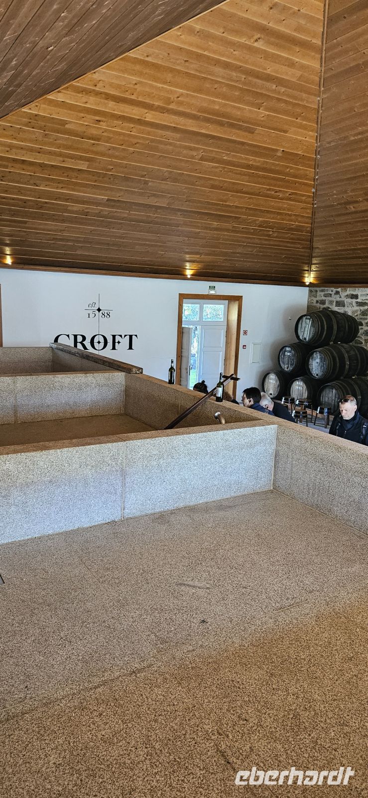 Heute gab es einen Geburtstag zu feiern in unserer Gruppe und wir konnten mal ausschlafen. Gegen 10 Uhr erreichten wir Pinhao und 11 Uhr begaben wir uns zu Fuss vom Schiff zum Bahnhof des Ortes. Der Bahnhof ist mit wunderschönen blau weissen Kacheln verziert und diese zeigen Szenen aus dem Leben der hiesigen Bevölkerung, vor allem Szenen aus der Landwirtschaft und vom Weinanbau. Gegen 12 Uhr stiegen wir in die Busse ein und fuhren über aussichtsreiche Strassen hinauf durch die Weinberge zur Quinta Avessada auf 620 m Höhe. Dort kann man keine Trauben für den Portwein anbauen und so hat sich das Weingut über viele Generationen auf die Produktion von Muskateller Wein spezialisiert. Das ist ein höher prozentiger Apperitiv Wein, den wir zur Begrüßung auf der Terrasse des Weingutes probieren durften. Danach besuchten wir das Weinmuseum der Familie Luis Barros. Im grossen Saal erwartete uns dann ein vorzügliches Mittagessen mit Weinen des Weingutes Avessada. Reiseleiterin Anna übersetzte für uns die Erzählungen eines Mitarbeiters zu einer besonderen Suppe und wir durften auch den Besitzer des Weingutes - Luis Barros - kennenlernen.