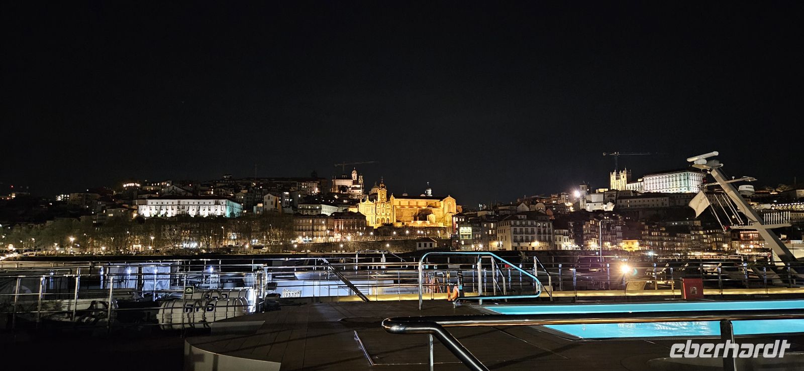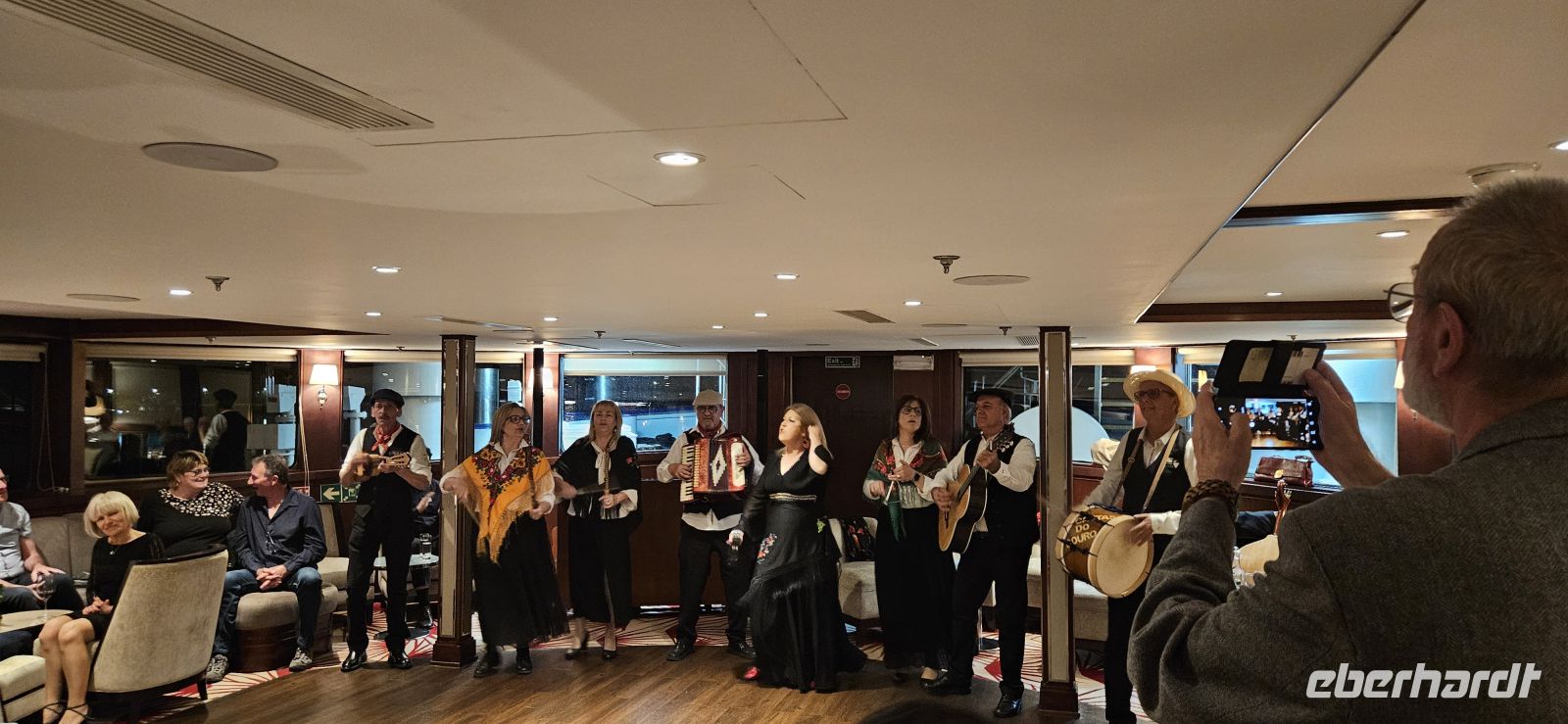 Auf dem Schiff war portugisischer Abend mit einem tollen Buffet gefüllt mit allen portugisischen Spezialitäten. Danach wurden im Salon zwei Flaschen Vintage Portwein geöffnet und der Wein an die Gäste verkauft.