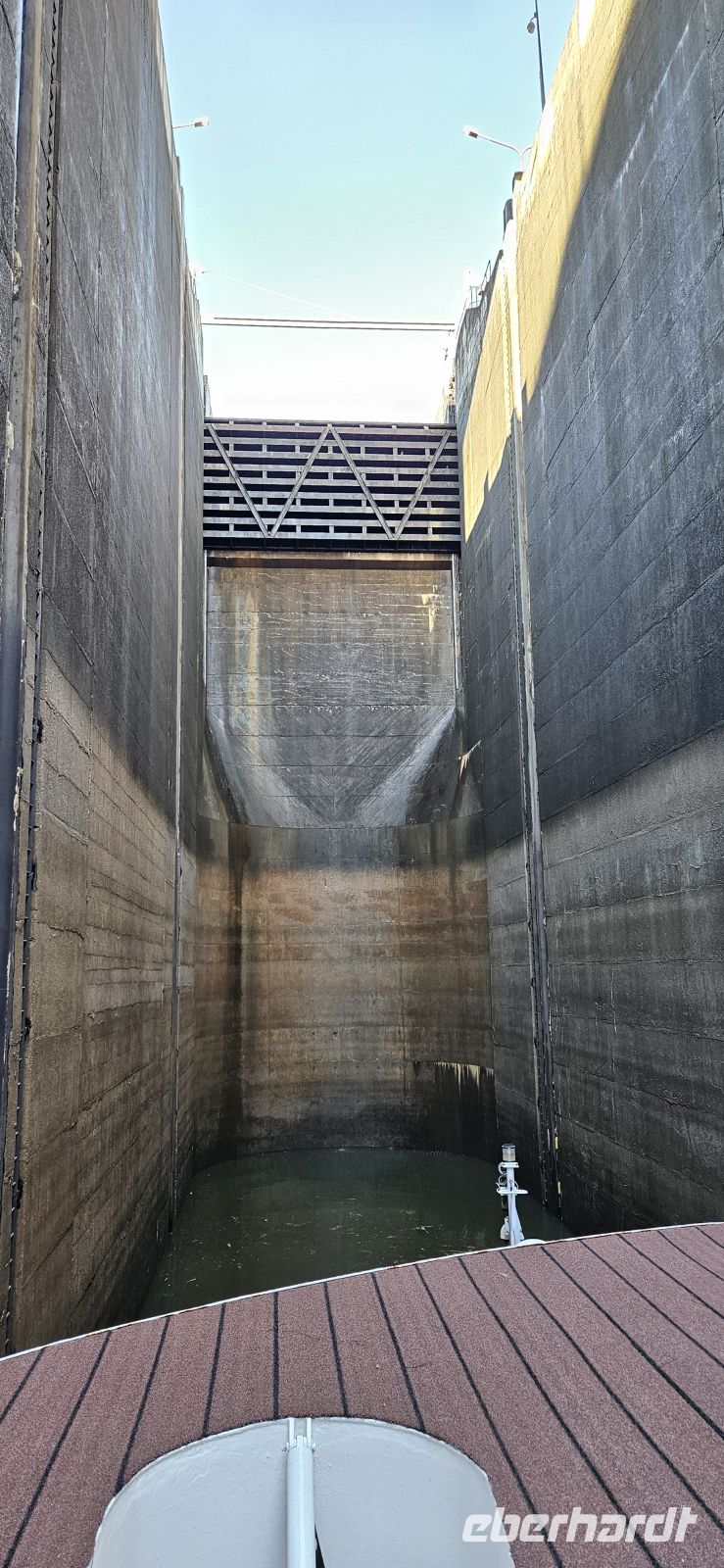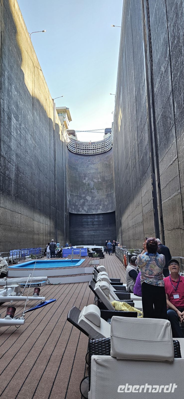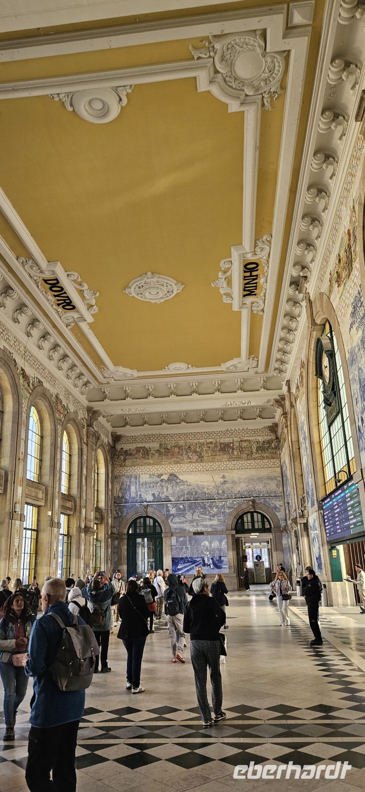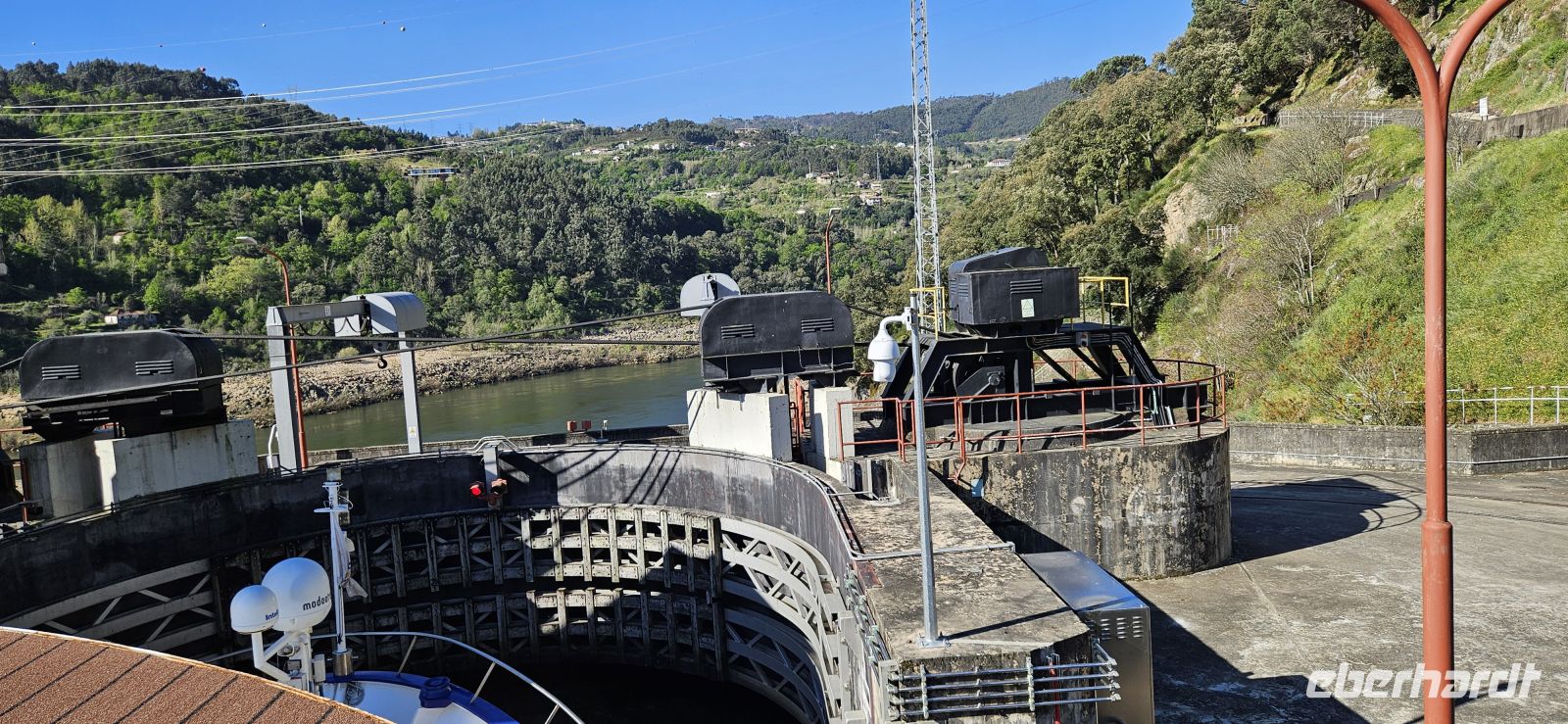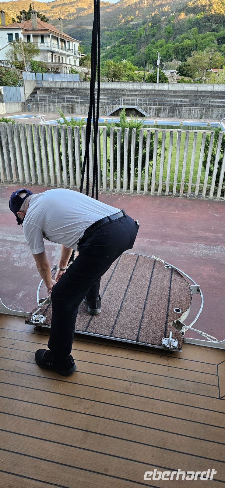 Frühstück gab es auf dem Schiff immer ab 7 Uhr und heute mussten noch die Audiogeräte an der Rezeption abgeholt werden, denn bereits 8.30 Uhr begann unser erster Ausflug. Unsere Singlegruppe war immer für den Bus 1 mit Reiseleiterin Vanessa und Fahrer Pedro eingeteilt. Wir fuhren von Gaia hinauf und über die Brücke hinüber nach Porto. An der Kathedrale stiegen wir aus und genossen zunächst den Blick über die Dächer der historischen Innenstadt von Porto. An der Kathedrale war gerade eine Rad Pilgergruppe dabei , ihre Pilgerhefte abzustempeln. Wir spazierten danach hinunter zum Bahnhof und mussten wegen der Bauarbeiten für die Metro den Seiteneingang nehmen. Der Bahnhof ist reich mit blau weissen Kacheln verziert. Darauf sind Szenen aus dem täglichen Leben sowie von geschichtlich bedeutenden Ereignissen dargestellt. Der Bahnhof wird von Pendlern täglich genutzt. Auf der Weiterfahrt durch das Zentrum von Porto kamen wir unter anderem am Rathaus und an der alten Universität vorbei, sahen viele Wartende vor einem berühmten Buchladen und fuhren schliesslich hinunter an den Atlantik, wo sich der Industriehafen und das neue Kreuzfahrtterminal befinden. Auf der Uferstrasse, die mit vielen grossen neuseeländischen Eisenholzbäumen gesäumt war, fuhren wir in Richtung Douro Mündung und weiter zurück nach Gaia. In Gaia befinden sich alle berühmten Portweinkellereien und wir besuchten die von Calem. Bei einer Führung erfuhren wir alles Wissenswerte über Anbau, Ernte und Verarbeitung der Trauben aus dem Dourotal und zum Schluss probierten wir einen Fine White Portwein und einen gemischten Roten Portwein. Auf dem Weg zurück zum Schiff gab es nochmal zahlreiche tolle Fotomotive. 13 Uhr legte die Douro Queen ab und nun begann endlich unsere Flusskreuzfahrt. Am Nachmittag befuhren wir die ersten beiden Schleusen und kurz nach 17 Uhr erreichten wir Caldas de Aregos. Dort blieben wir über Nacht.