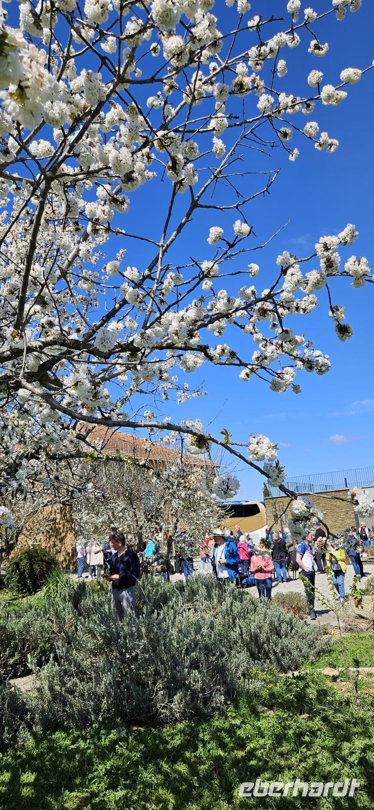 Die Teilnehmer unserer Gruppe nahmen anschliessend am Ausflug zum Mateus Palast teil und den betreute ausnahmsweise Reiseleiterin Anna. Im Mateus Palast besichtigten wir zuerst in kleinen Gruppen die Innenräume und danach war genügend Zeit zum Erkunden des riesigen Gartens mit vielen blühenden Obstbäumen, Kamelien, Schneeball, Tulpenbäumen und vielem mehr. Schon auf der Rückfahrt zum Schiff erhielten wir die Information, dass die Kreuzfahrtleiterin Nadine uns im Salon für eine wichtige Information erwartet. Der Douro hatte noch vor unserem Eintreffen Hochwasser geführt und in den 2 Schluchten bis zur spanischen Grenze hatte das Hochwasser Felsrutsche ausgelöst und einige Markierungsbojen weggerissen. Auch waren zahlreiche große umgestürzte Baumstämme vom Sturm Kristina in den Douro geschwemmt worden und diese stellten vor allem an den Schleusen eine Gefahrt dar. Das alles führte dazu, dass wir den Fluss weiter aufwärts nicht befahren konnten, unsere Kreuzfahrt in Pinhao endete und wir den Rückweg antreten mussten. Wir alle waren sehr traurig, aber gegen Naturgewalten sind Menschen noch immer machtlos. Die Schiffsleitung stellte sofort das Programm um und tat wirklich alles, damit wir die gebuchten Ausflüge auch machen konnten. In der Nacht erfolgte die Zeitumstellung auf Sommerzeit und so gingen die meisten früh schlafen.