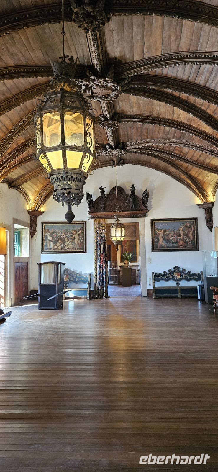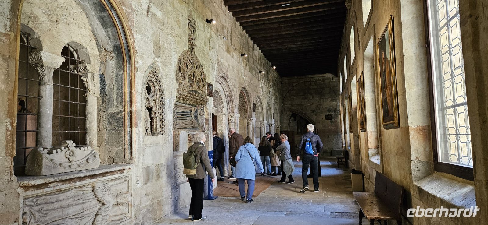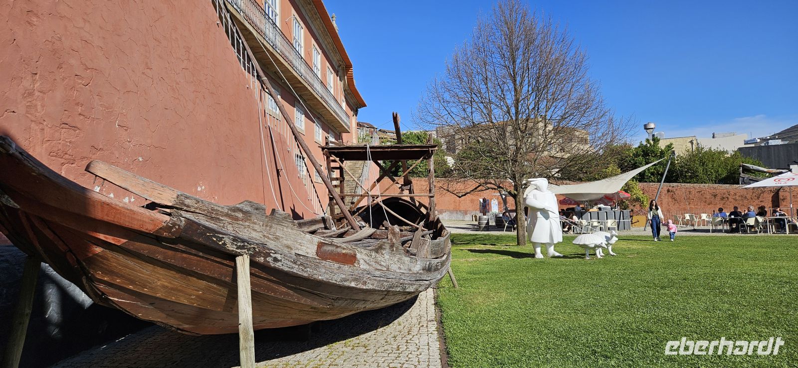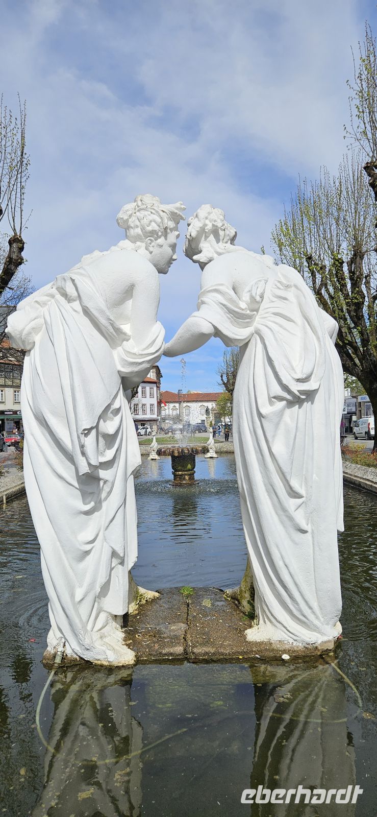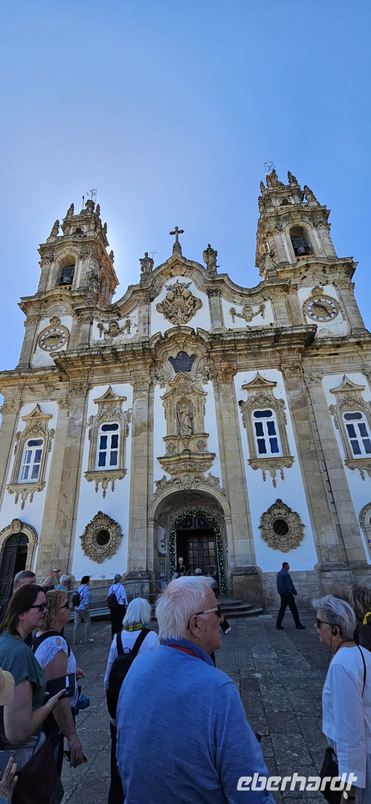 Am Nachmittag fand unser Ausflug nach Lamego statt. Über die Autobahn erreichten wir nach kurzer Fahrtzeit Lamego. Wir verliessen den Bus oben an der Wallfahrtskirche und besuchten das Innere der reich geschmückten Kirche. Es war Palmsonntag und in der Kirche wurde alles für den Auftritt eines Chores vorbereitete. Hinunter in die Stadt konnten wir mit dem Bus fahren oder über die reichlich 600 Stufen einer prunkvoll gestalteten Treppenanlage gehen. An den Absätzen waren die Portale mit Kachelmotiven geschmückt und ringsum blühten die Bäume. Unten in Lamego spazierten wir über die Hauptallee mit vielen Wasserbecken, die mit Plastiken geschmückt waren, und wir hatten Zeit für einen Kaffee und den Besuch der Kathedrale. Hinter dem Bischofspalast warteten unsere Busfahrer und brachten uns zurück nach Regua. Wer dann noch Lust hatte, konnte mit Vanessa das interessante Museum zum Weinbau in Regua besichtigen.