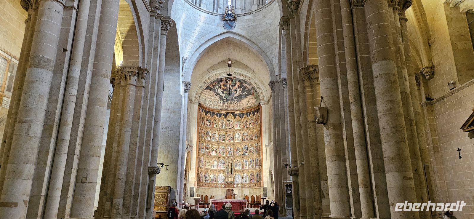 Den Ausflug von Salamanca macht man normalerweise vom Hafen Barca dÁlva, direkt an der spanischen Grenze. Da wir dort aber mit dem Schiff nicht hinfahren konnten, wurde dieser Ausflug von Regua aus angeboten. Die Fahrtzeit ist fast doppelt so lang und so spendierte die Reederei Nicko Cruises für die Teilnehmenden diesen Ausflug. Bereits 7.30 Uhr starteten wir und die Fahrt ging über die Autobahn zur spanischen Grenze. Dort wurde eine Pause gemacht und 11.30 Uhr erreichten wir unser Hotel für das Mittagessen in Salamanca. Bis dahin war aber noch eine gute Stunde Zeit und die konnte Jeder individuell verbringen. Zum Mittagessen gab es ein leckeres Vorspeisenbuffet, eine Paella mit Meeresfrüchten, einen Nachtisch, Wein und Kaffee. Während des Mittagessens boten uns 3 Damen eine Flamenco Show mit Tanz und Gesang. Das war die passende Unterhaltung und so typisch für Spanien. Nach dem Mittagessen trafen wir unseren Stadtführer Luis und er zeigte uns sein Salamanca bei einer Stadtführung zu Fuss. Von der Praca Major, ging es zum Muschelhaus, zur alten Universität und zur Innenbesichtigung der alten und neuen Kathedrale. Beim Artdeco Museum endete die Führung und von dort gingen wir hinunter zum Fluss, wo uns der Bus wieder erwartete und auf gleicher Strecke zurück zum Schiff brachte. Es war ein sehr langer Tag, aber mit vielen schönen Erlebnissen in Spanien.