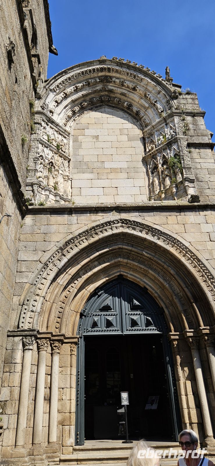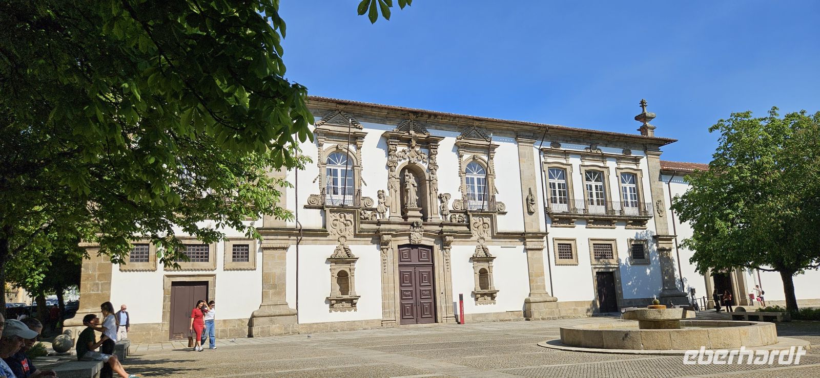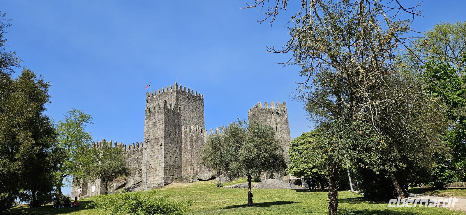 8 Uhr pünktlich legte unsere Douro Queen in Regua ab und wir fuhren bei herrlichem Sonnenschein weiter flussabwärts nach Entre-os-Rios. Dieser Hafen wird im normalen Programm nicht angelaufen und so lernten wir noch einen neuen Ort am Douro kennen. Entre-os- Rios bedeutet zwischen zwei Flüssen, denn dort mündet der Tamega in den Douro. Der Ort hat viele Brücken und noch vor dem Mittagessen erkundete ich die alte Brücke über den Tamega. Nach dem Mittagessen gab es dann schon den Ausflug nach Guimares und der war für uns als Ersatz für den ausgefallenen Ausflug zum Castel Rodrigo. Auf der Fahrt dorthin kamen wir an vielen Weinbergen vorbei und hier ist das Zentrum für die Produktion des Vino Verde, eines jungen, frischen Sommerweines. Das bizarre Städtchen Guimares ist die "Wiege" Portugals, weil hier der erste König Alfonso I. geboren sein soll und Guimaraes zur ersten Hauptstadt Portugals wurde. Wir gingen zu Fuss von der Burg hinunter in die Stadt, kamen an vielen Geschäften, einem schönen Park, einem Kloster, dem Rathaus vorbei und erreichten den Hauptplatz, wo man gemütlich draussen sitzen konnte. Auch der Spaziergang über ein Stück der alten Stadtmauer bot schöne Ausblicke. Es war ein entspannter Nachmittagsausflug und der letzte mit unserer Reiseleiterin Vanessa und Fahrer Pedro. Nach der Ankunft am Schiff bedankten wir uns bei beiden sehr herzlich und verabschiedeten uns.