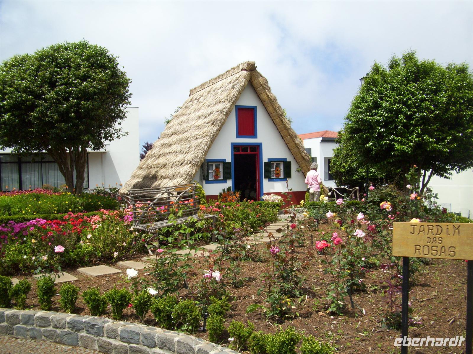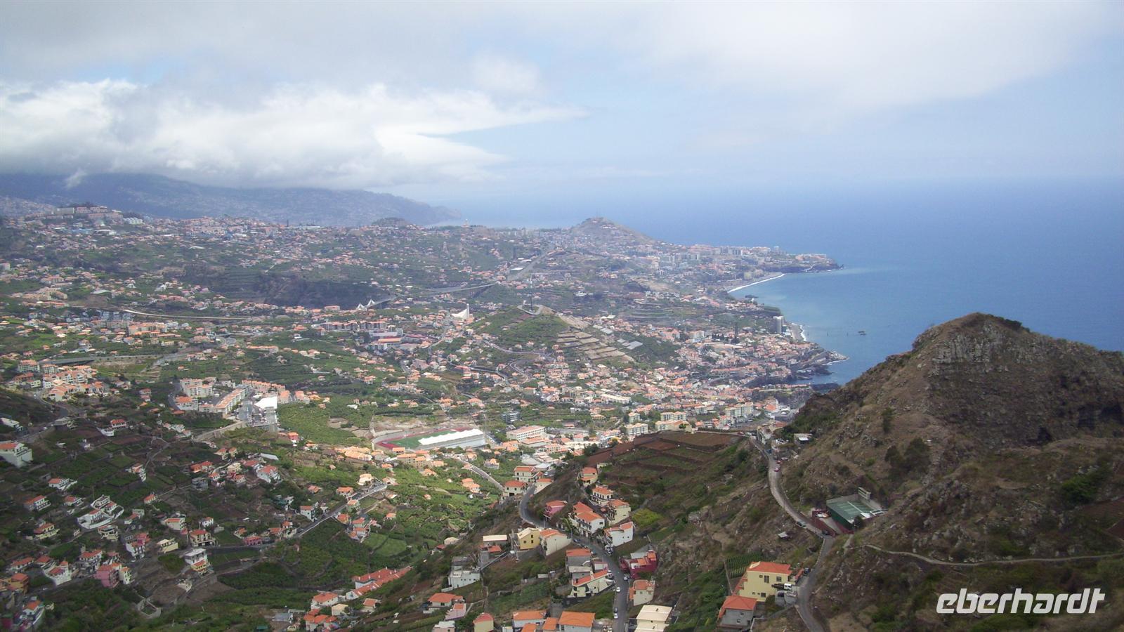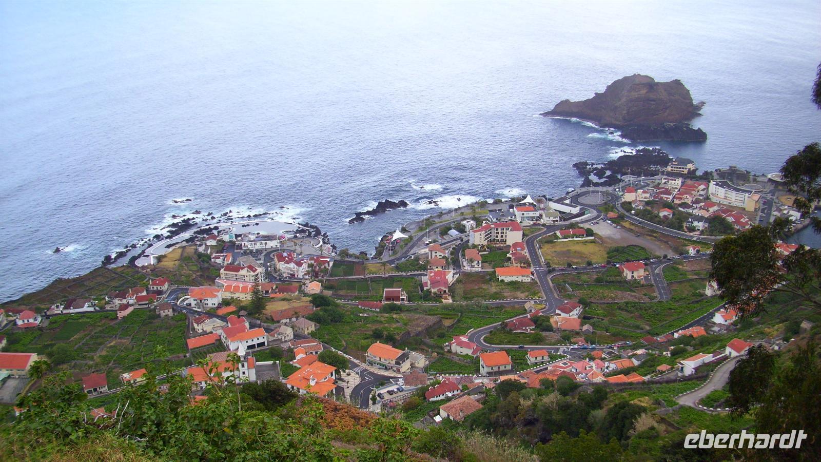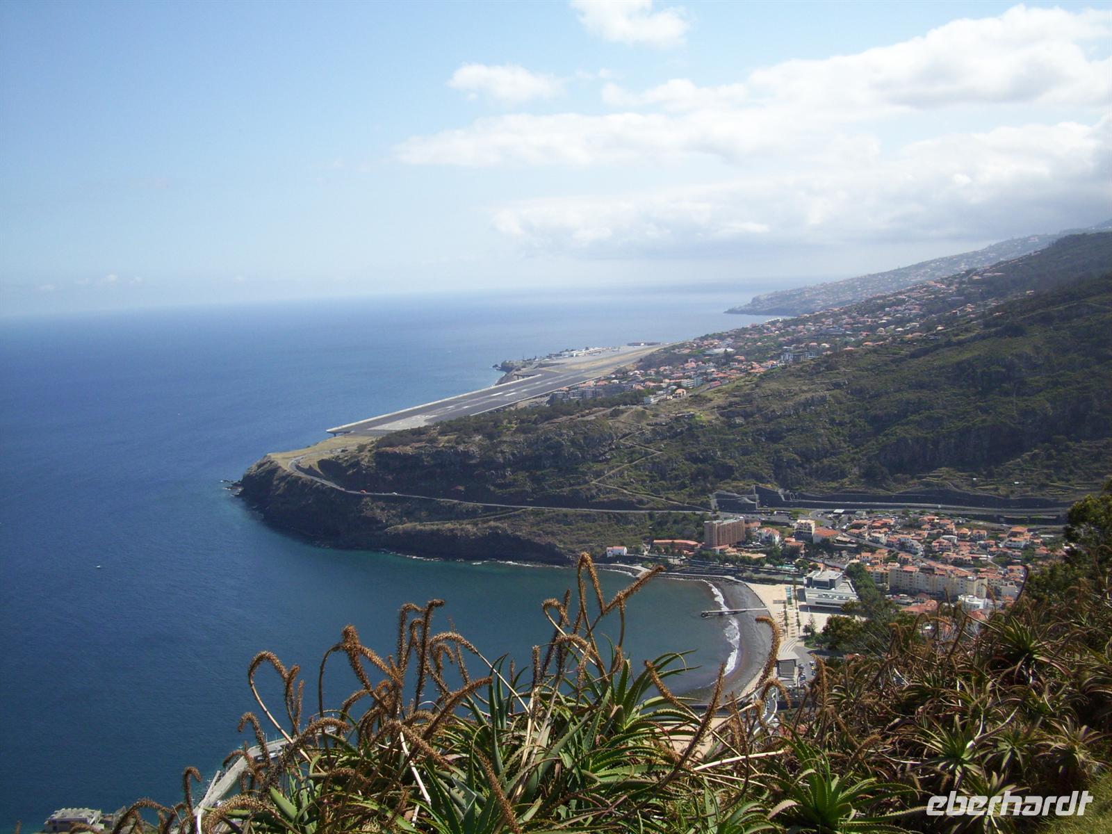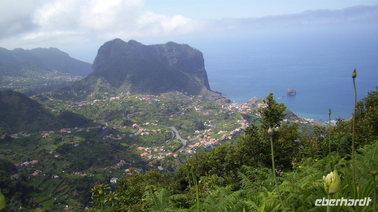 der Wanderung erwartet unsere Gäste eine besondere Überraschung: ich gebe im Namen von Eberhardt TRAVEL einen „Poncha“ aus, ein typisch madeirensisches Getränk hergestellt aus Zitronensaft, Honig und Rum. WOW! Nun fahren wir nach Santana, das für seine weißen Häuser mit Strohdächern bekannt ist. Ein schönes Fotomotiv! Hier nehmen wir auch unser Mittagessen zu uns. Wer möchte, kann eine madeirensische Fisch- oder Tomatensuppe bestellen. Zum Nachtisch gibt es Maracuja-Pudding, ebenfalls typisch für Madeira. Sehr lecker! Zum Abschluss des Tages fahren wir noch zum Aussichtspunkt Pico do Facho. Wir haben einen wunderbaren Blick auf die Ostspitze Madeiras, auch der Blinddarm genannt, und die kurze Landebahn des Flughafens.