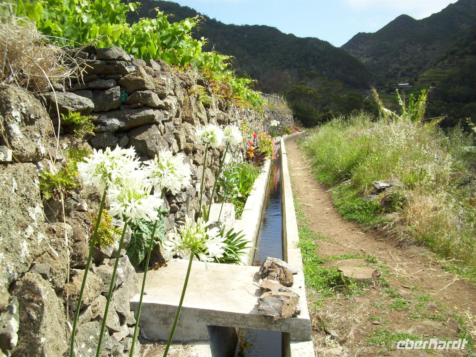 An diesem Tag steht eine Wanderung entlang der Levada von Marocos auf dem Programm. Wir wandern etwa zwei Stunden immer entlang der Levada genannten Wasserkanäle, die die Felder ringsherum bewässern. Unterwegs bekommen wir wunderschöne Ausblicke auf die umliegende Landschaft, in das Tal hinein und die landwirtschaftlichen Flächen. Wir können auch Bauern bei der Arbeit zusehen. Pünktlich zur Mittagszeit sind wir wieder im Hotel.