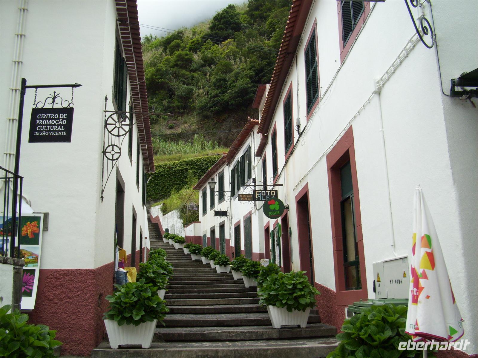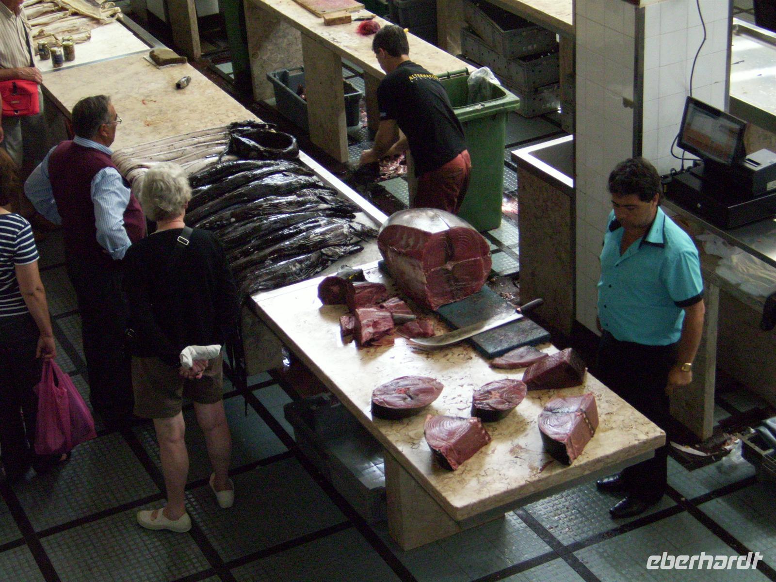 Heute erleben wir die Hauptstadt Madeiras, Funchal. Zunächst fahren wir in den Botanischen Garten, ein schön angelegter Park mit vielen verschiedenen Pflanzen, einem Sukkulentenpark und sogar einigen kunstvoll beschnittenen Buchsbaumhecken, die uns etwas an England erinnern. Oft sehen wir auch die Strelitzien, die auf Madeira häufig wachsen. Anschließend fahren wir zum Markt von Funchal. Da wir an einem Freitag da sind, herrscht besonders reges Treiben. Fast alles kann man hier käuflich erwerben, wenn man nur möchte: Blumen, Souvenirs, Korbwaren, allerlei verschiedene Früchte und Gemüse und natürlich Fisch. Unser nächster Stopp ist die Hafenpromenade von Funchal. Wir bummeln entlang des Ufers und in der Hauptstraße der Stadt, jeder auf eigene Faust. Wer will, kann stilvoll am Hafen zu Mittag essen. Danach fahren wir auf ein Weingut in den umliegenden Hängen. Außer Wein wachsen hier auch einige Bananenstauden. Wir bekommen eine kleine Kostprobe des Madeira-Weins, ein sehr süßer Dessertwein, und ein Stück des typischen dunklen Honigkuchens. Das Weingut verfügt auch über eine Kapelle, die wir besichtigen dürfen. Den Abschluss des Tages bildet das Fischerdorf Camara de Lobos. Hier trinken wir am Hafen einen „Nikita“, ein Getränk, das vor allem in diesem Ort oft getrunken wird.