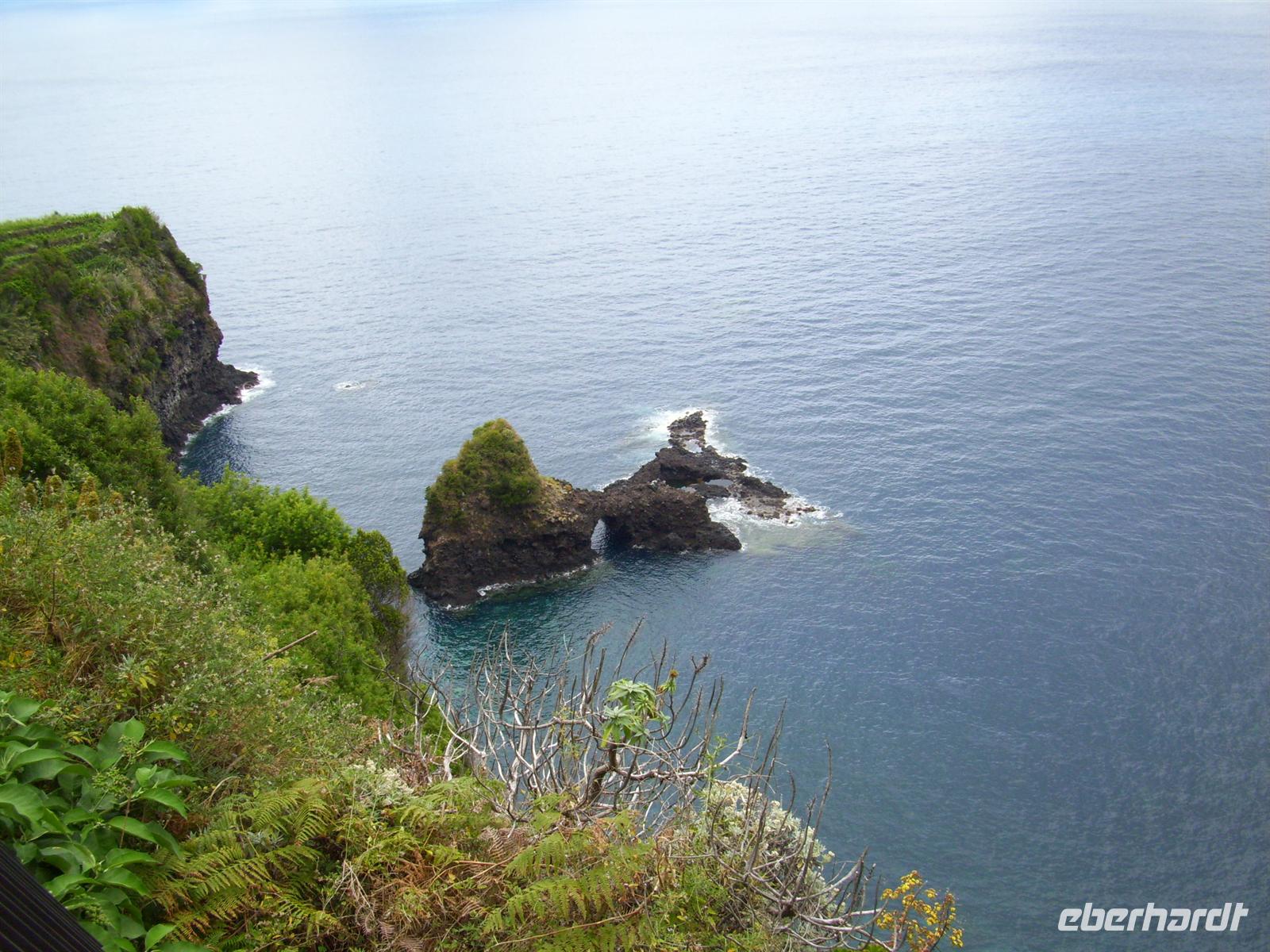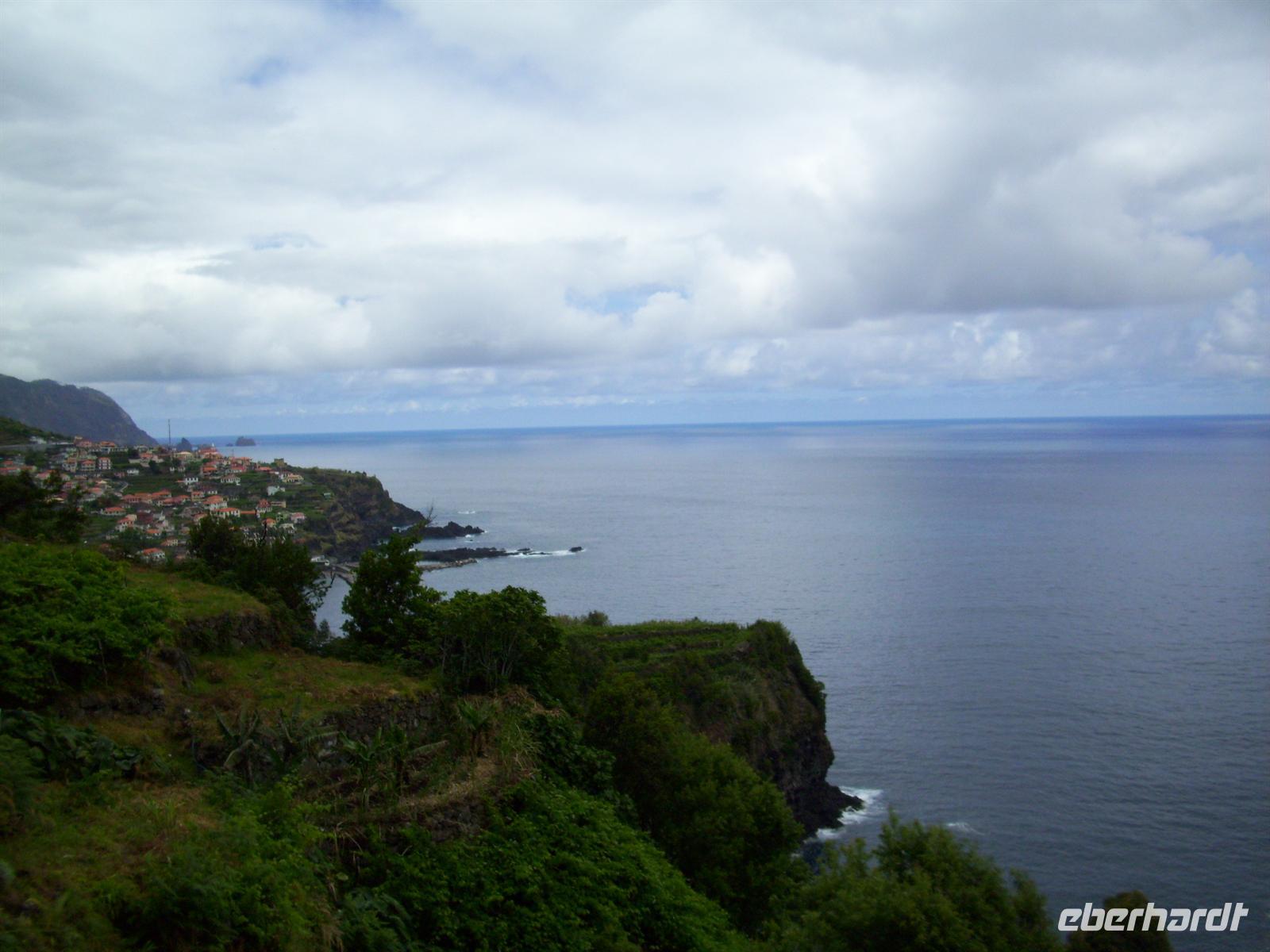 Der letzte Tag unserer Rundreise ist noch einmal sehr lang. Unser erster Stopp ist das Zentrum des Westens, Ribeira Brava. Weiter fahren wir über den Encumeada-Pass in die Hochebene. Leider haben wir ausnahmsweise schlechtes Wetter, sodass wir nicht anhalten können. Unterwegs sehen wir aber viele Kühe und auch kleine niedliche Kälber. Oberhalb von Porto Moniz, ein Ort, der im äußersten Nordwesten Madeiras liegt, halten wir und genießen einen wunderbaren Blick auf den für seine Lavabecken berühmten Ort. Im Tal angekommen nutzen wir unsere Freizeit, um Porto Moniz zu erkunden. Anschließend fahren wir immer entlang der Küste zum Brautschleierwasserfall. Der führt allerdings leider sehr wenig Wasser, sodass es eher ein Rinnsal ist. Zum Abschluss halten wir in Sao Vicente und bummeln im malerischen Ortskern. Am Abend können wir an einem Abschlussabendessen in Funchal im Restaurant „Montanha“ teilnehmen. Uns wird ein „Espetada“ serviert, ein typischer Fleischspieß. Zum Nachtisch gibt es lecker Maracuja- und Flan-Pudding. Manch einer fragt sogar nach einer zweiten Portion ;-)