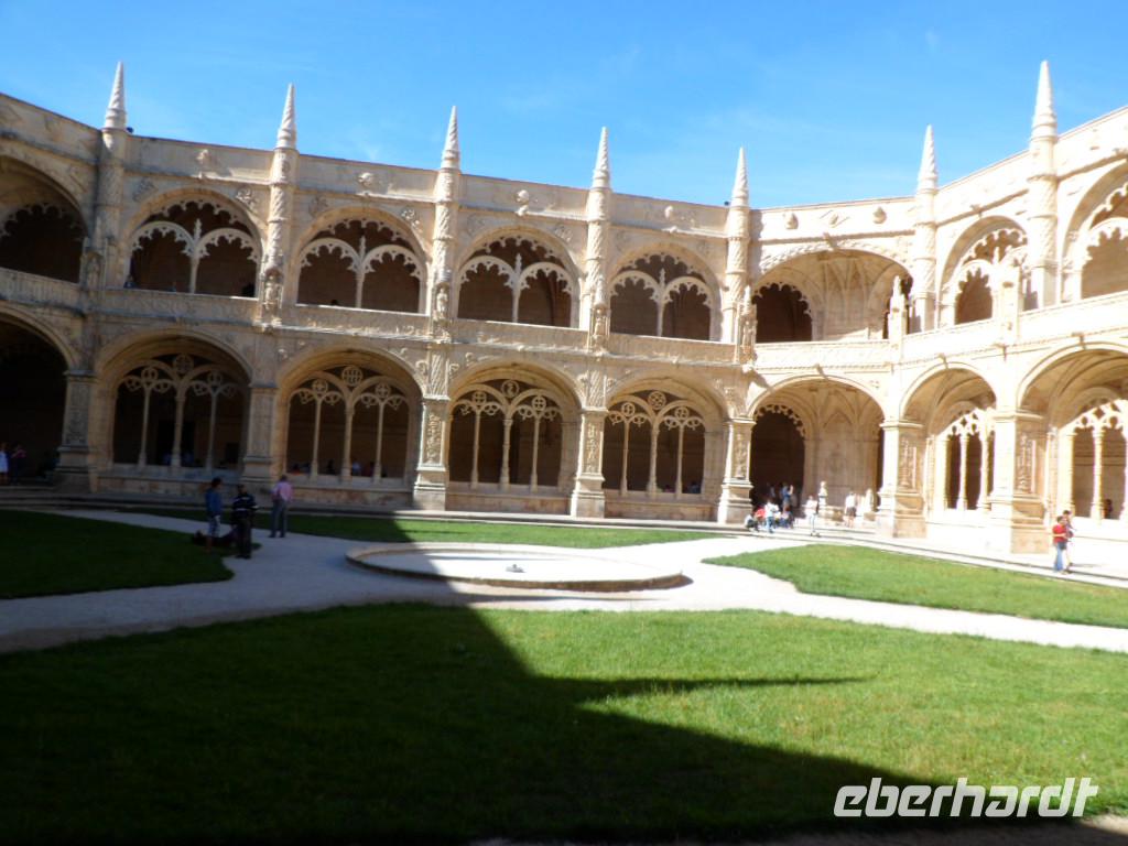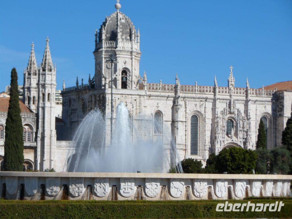 Nach dem individuellen Früstück holte uns 09.00Uhr der Bus und Margarida zur Stadtrundfahrt ab. Die Sonne schien bei 19 °C war es sehr angenehm.Vorbei am Gefängnis, großen Gewächshäusern mit exotischer Vegetationen,Edward den VII. Park wo wir den ersten Fotostopp auf der Aussichtsplattform mit Blick über die gesamte Stadt hatten, die Freiheitsstatue sehen konnten ging es über eine Brücke ,die das Tal von Alcatere überspannt zum Turm von Belem. Hier hatten wir 45 min Freizeit und danach ging es zu Fuß zum Kloster Jeronimus. Wir erhielten ein Audioset, das leider bei einigen Gästen nicht funktionierte,aber bei der kleinen Gruppe war es kein großes Problem, alle konnten die Eklärungen von Margarida verstehen. Wir hatten noch etwa 40 min Freizeit und konnten den Kreuzgang und Garten besichtigen.