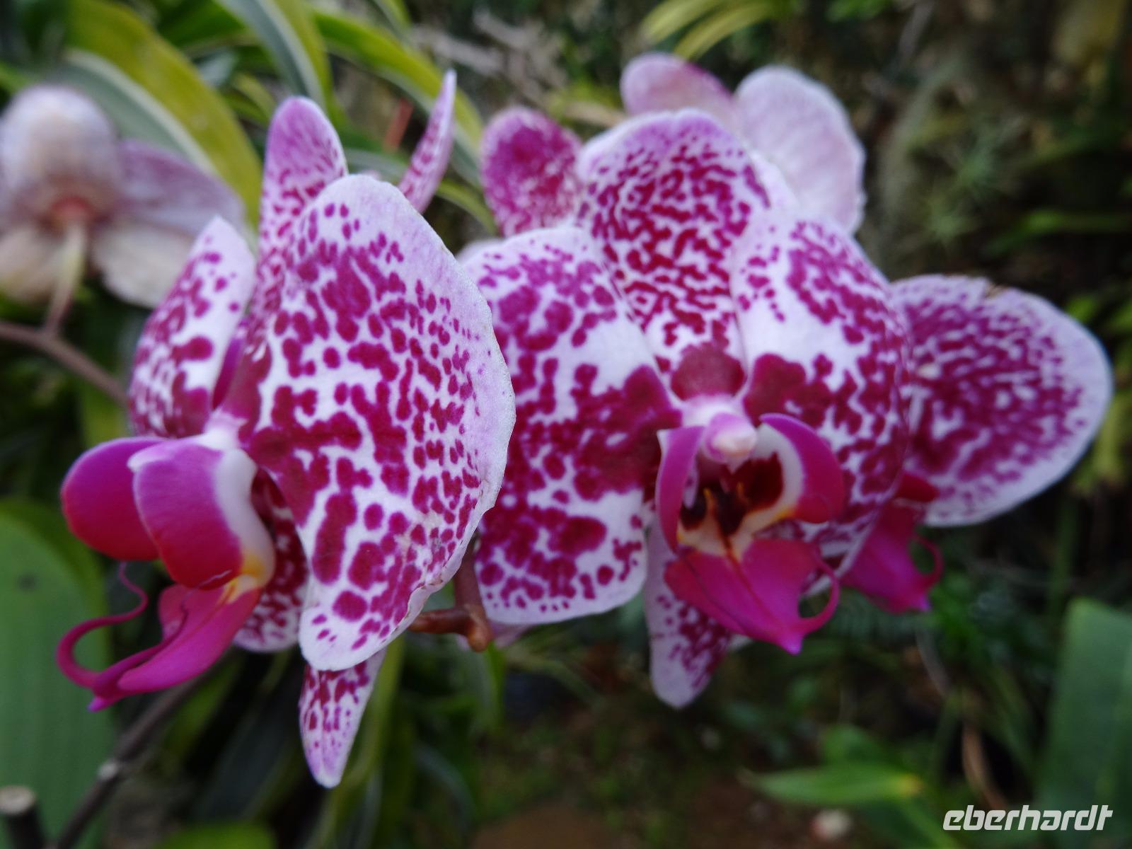Wir starteten in der "Quinta da Boa Vista=Haus mit dem herrlichen Blick", anlehnend an den wiederum herrlichen Blick auf die Hauptstadt Madeiras. Dem Besitzer dieses Orchideengartens -Patrick- ist es wichtig, die Pflanzen in ihrer natürlichen Umgebung zu züchten und zu präsentieren. Vor unseren Augen wuchsen und blühten viele verschiedenen Sorten - einige sogar nach Schokolade bzw. Koriander duftend-, die jedes Herz von Orchideenfreunden höher schlagen lassen.