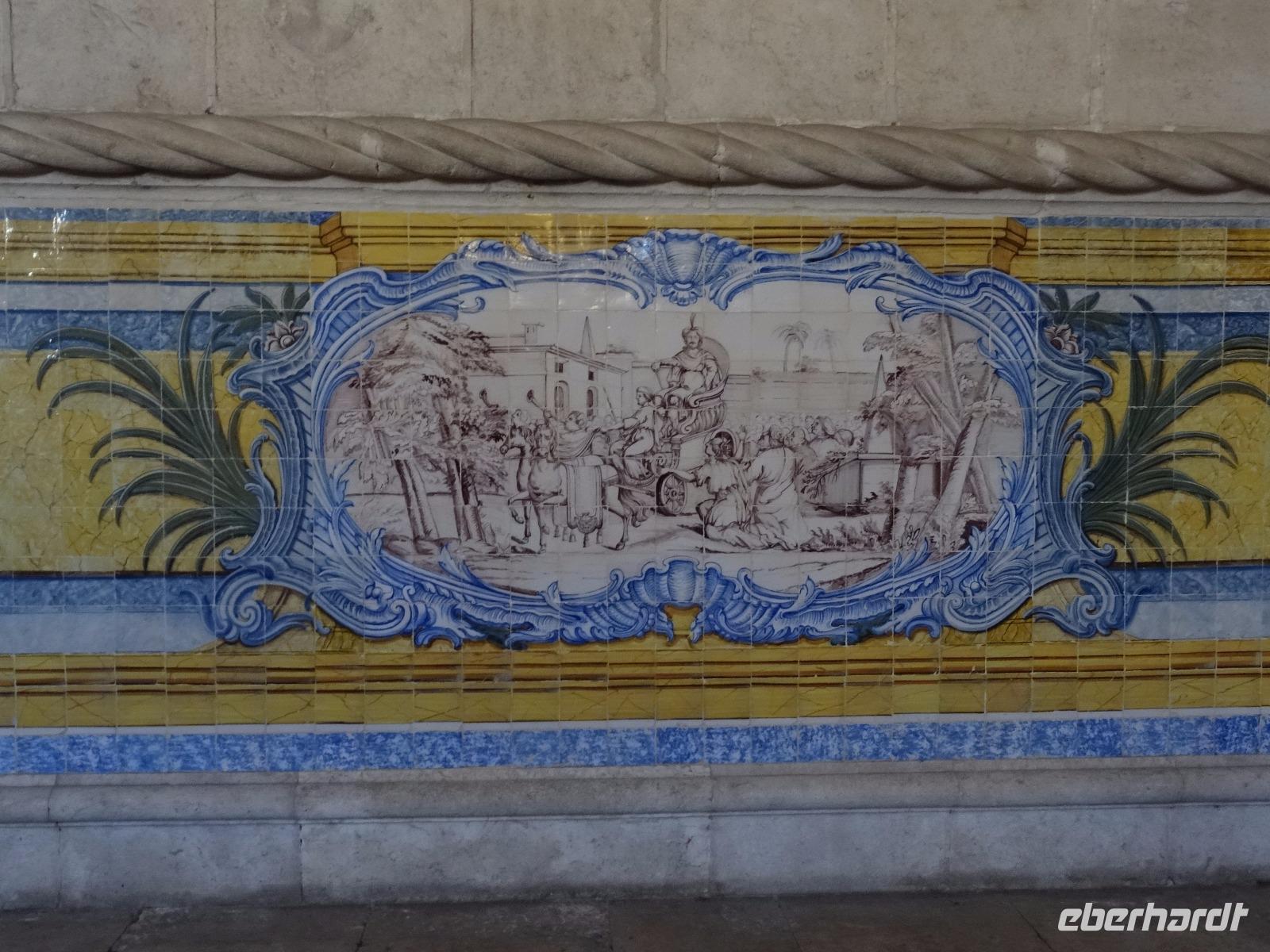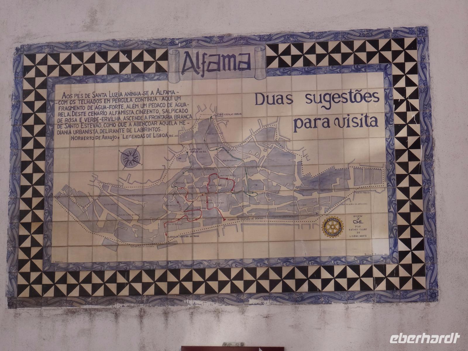 Welch kluge Entscheidung - denn so fand die gesamte Reisegruppe Platz in dem einzigen Waggon der Electrico. Dann ging es bergab und bergauf durch die verschiedenen Stadtteile bis in die Alfama. Jetzt verstanden wir, warum Lissabon auch die Stadt der sieben Hügel genannt wird. Wir bewunderten den Fahrer= Guadra Freios (Bremsenhüter) dieser Bahn, wie er uns sicher durch die engen Gassen vorbei an knapp geparkten Autos logierte. In der Alfama angekommen, wagten wir nun den Aufstieg zum Castelo de Sao Jorge. Fur unsere Mühen wurden wir auf der Burg mit herrlichen Blicken auf den Theaterplatz, die Ufer des Tejo sowie die Sehenswürdigkeiten der Altstadt belohnt. Mit den schönen Blicken noch vor Augen führte uns dann Rute -abseits vom üblichem Tourismusgebiet- hinab durch enge Gassen mit kleinen Lokalen und alten Häusern, vor denen noch die alten Frauen sitzen und sich über den neuesten "Tratsch" austauschen, bis zum Praca do Comercio. Erschöpft von den warmen Temperaturen und dem etwas längerem Spaziergang, stärkte sich der überwiegende Teil der Reisegruppe jetzt erst einmal in der "nah gelegenen" Markthalle. Neue Kraft aufgetankt erkundete dann jeder Lissabon entsprechend seinen noch offen persönlichen Wünschen. Sei es mit einer Bootsfahrt auf dem Tejo, oder einer Fahrt zum Gelände der Weltausstellung von 1998, oder der Nutzung der verschiedenen Elevadoren, oder...
