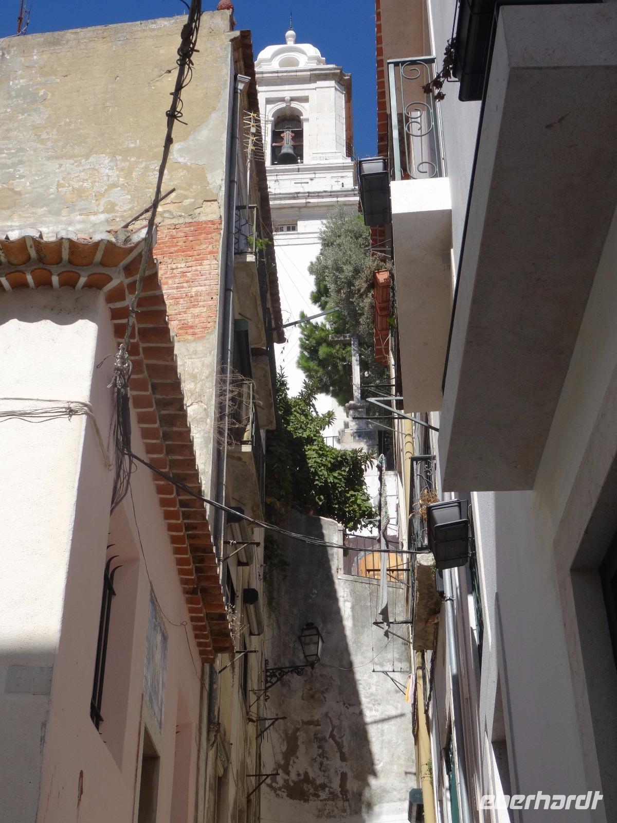 Wir fuhren mit der blauen Linie der Metro zuerst zwei Stationen Richtung Baixa, um dann mit dem Bus Nummer 709 bis zur Endhaltestelle Prazeres zu fahren. Sie ist gleichzeitig auch die Endhaltestelle der Electrico 28 und wir fahren einfach die Strecke zurück in die Altstadt.