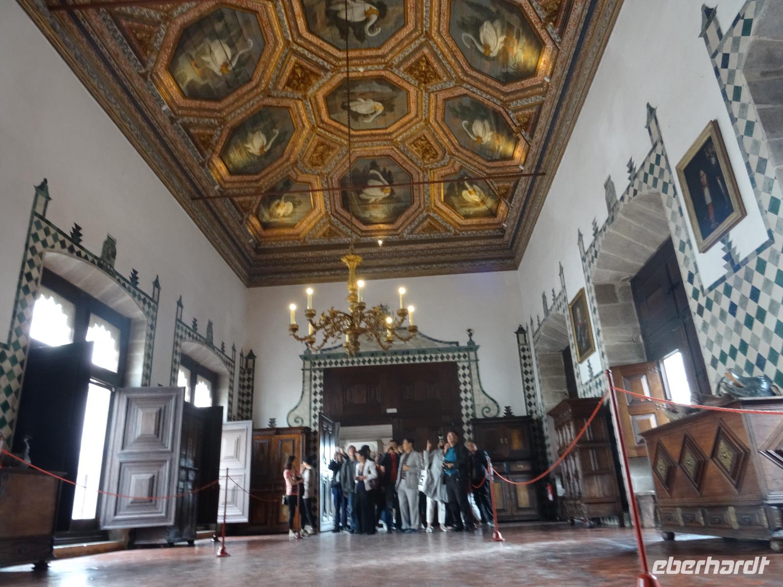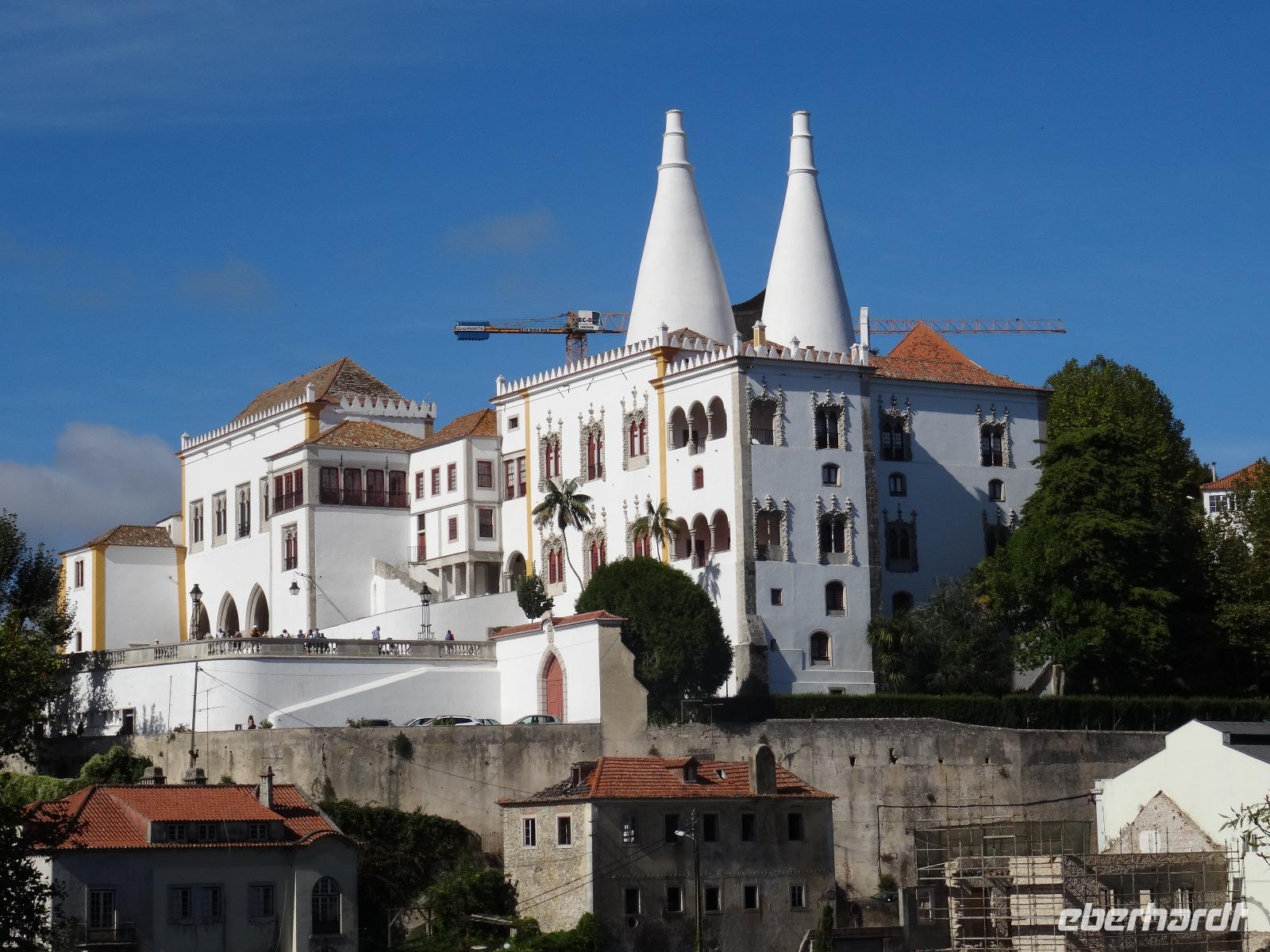 Angekommen in Sintra besichtigten wir das Königsschloss aus dem 14. Jahrhundert, dessen Mittelpunkt zwei Riesenkamine (die damalige Küche) bilden und um welche in 500 Jahren immer wieder neue Flügel hinzu gebaut wurden.