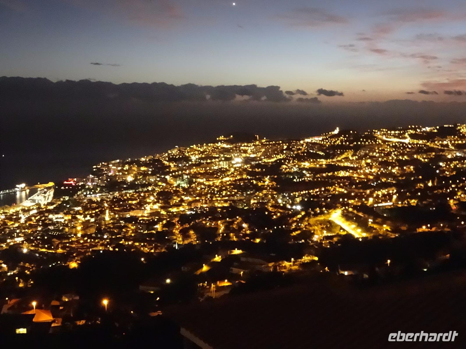 Punkt 19.00 Uhr wartete dann für alle ein weiteres Highlight der Reise. Angelo brachte uns zum Panorama-Restaurant "Planka" und wir genossen eine weitere Spezialität Madeiras - den Fleischspieß "Espetada". Dabei lag uns Funchal zu Füßen. Es bot sich ein wundervoller Blick auf die Hauptstadt und den Hafen. Ein Kreuzfahrtschiff ankerte nicht im Hafen. So "mußten"wir nicht dessen Gäste bedauern, welche am Duft der Insel nur einmal kurz schnuppern, während wir ihn in vollen Zügen einatmen dürfen.