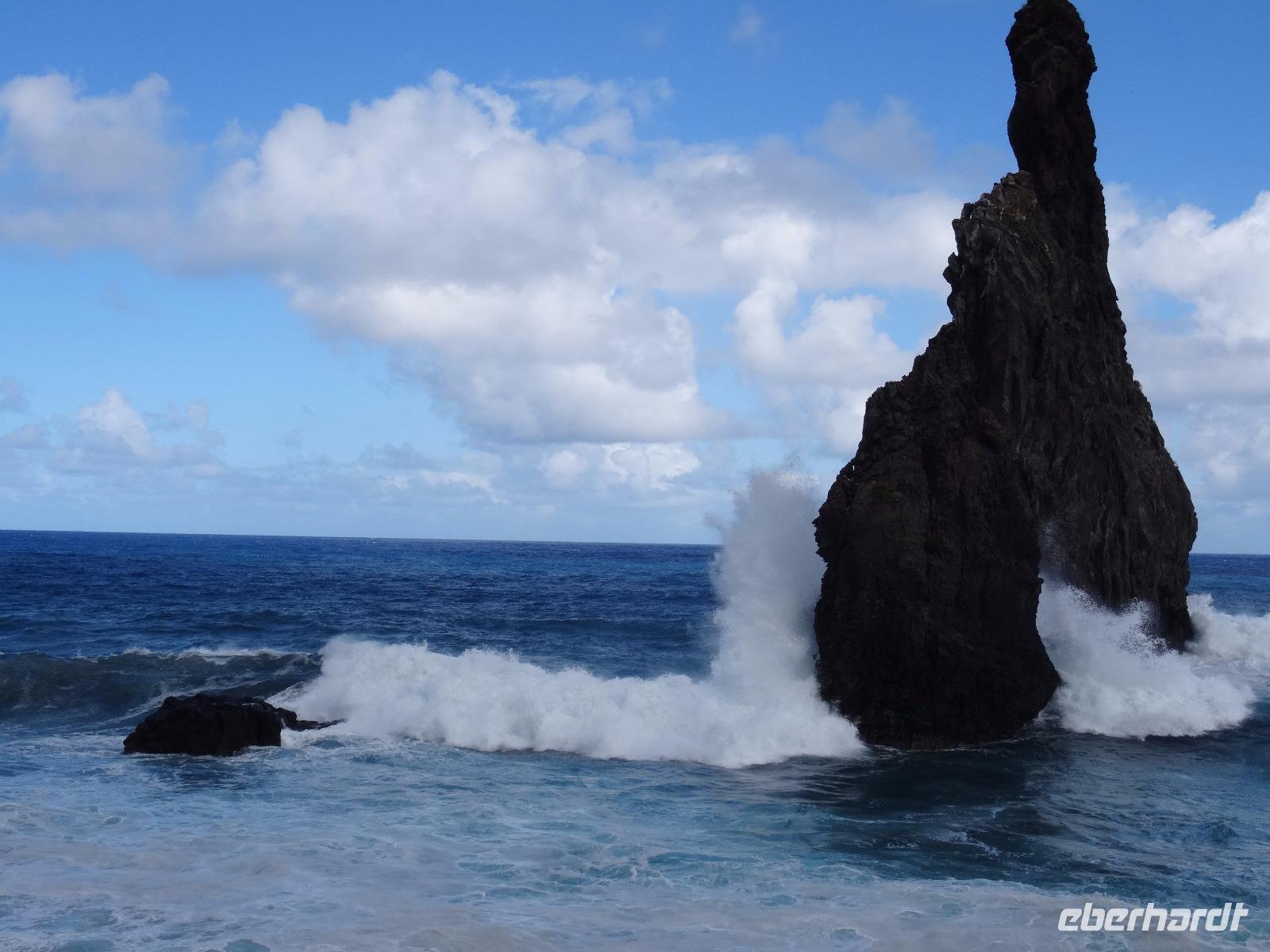 Danach ging es über den Portela - Pass in "nur" 670 Meter Höhe über Machico zum östlichsten Zipfel der Insel, um vor Ort nicht nur die schroffe Küste zu betrachten, sondern auch einen tollen Blick auf den Flughafen sowie den einzigen Sandstrand Madeiras zu erhalten.