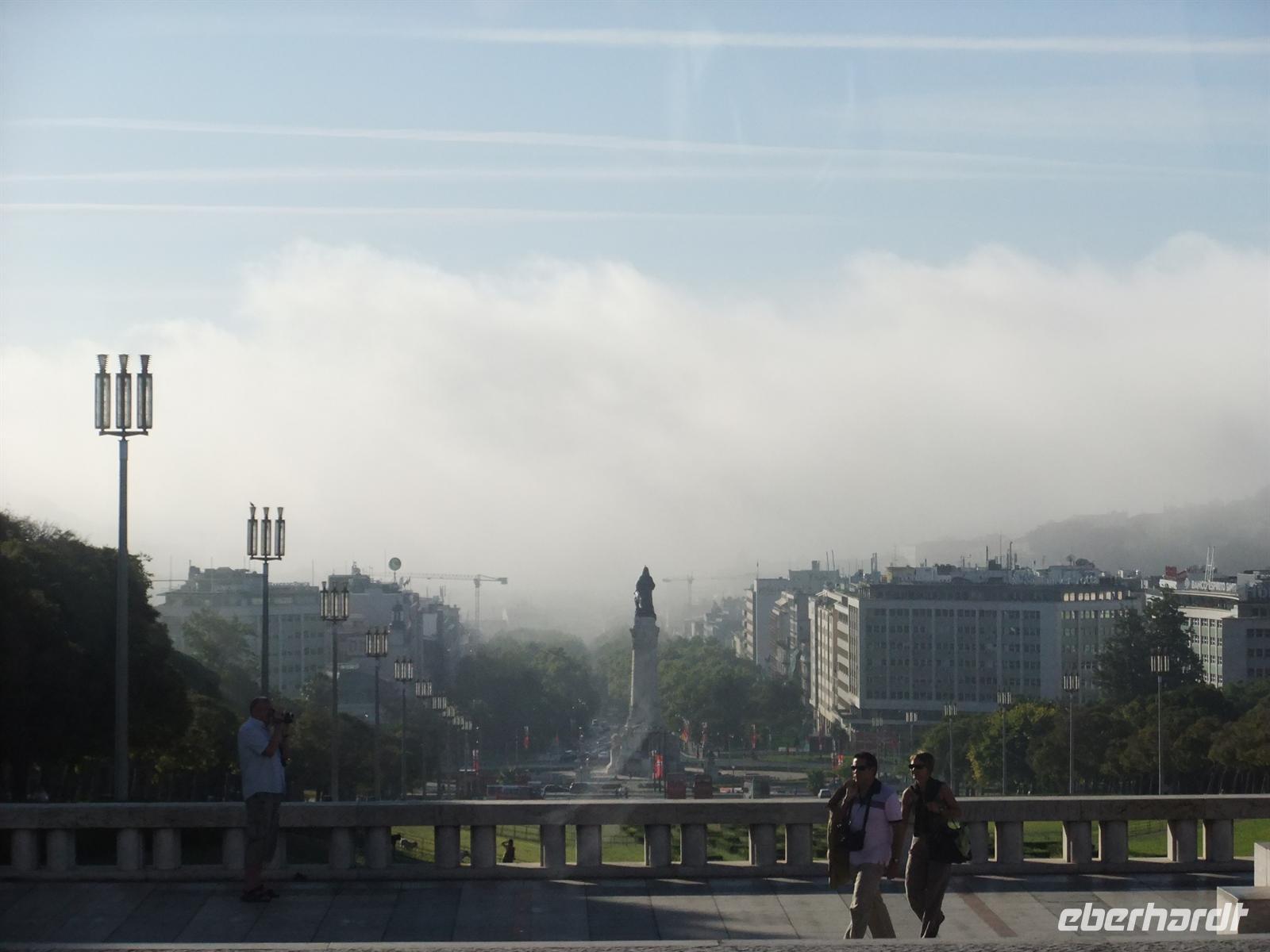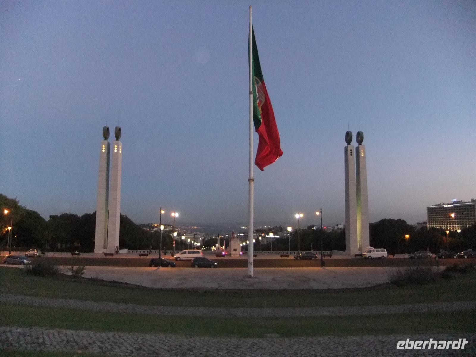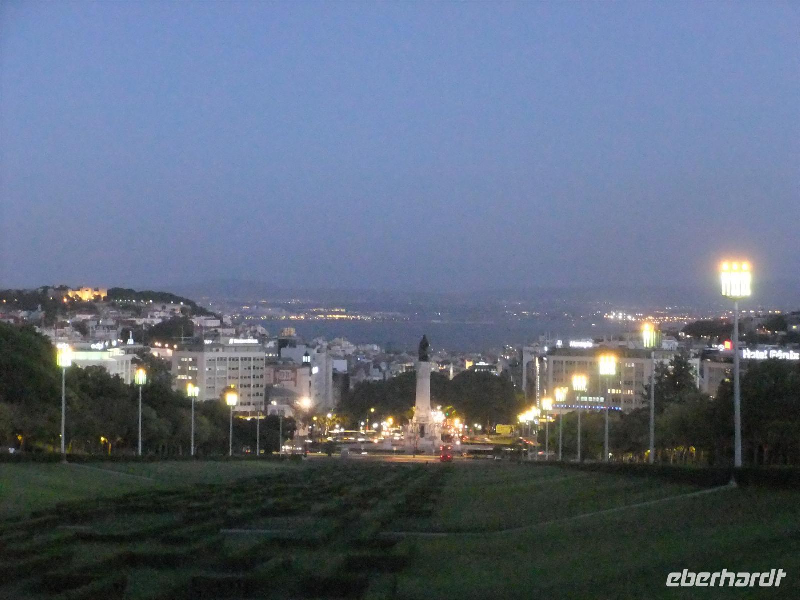 Gegen 15:30 Uhr traf ich mich mit ein paar Gästen am vorher vereinbarten Treffpunkt. Gemeinsam fuhren wir mit der Roten Linie bis zur Endhaltestelle San Sebastiao, der Haltestelle direkt vorm Hotel. Am Abend aßen wir wieder gemeinsam das Abendessen, diesmal schon um 18:00 Uhr. Ich wollte den Gästen noch einen schönen Sonnenuntergang zum Abschied im Parque Eduardo VII bescheren. Leider kam uns die Sonne zuvor und hatte sich schon versteckt, als wir uns auf den Weg zum Park machten. Zwar hatten wir nun keinen schönen Sonnenuntergang aber zumindest noch mal einen herrlichen Blick über die Stadt Lissabon.