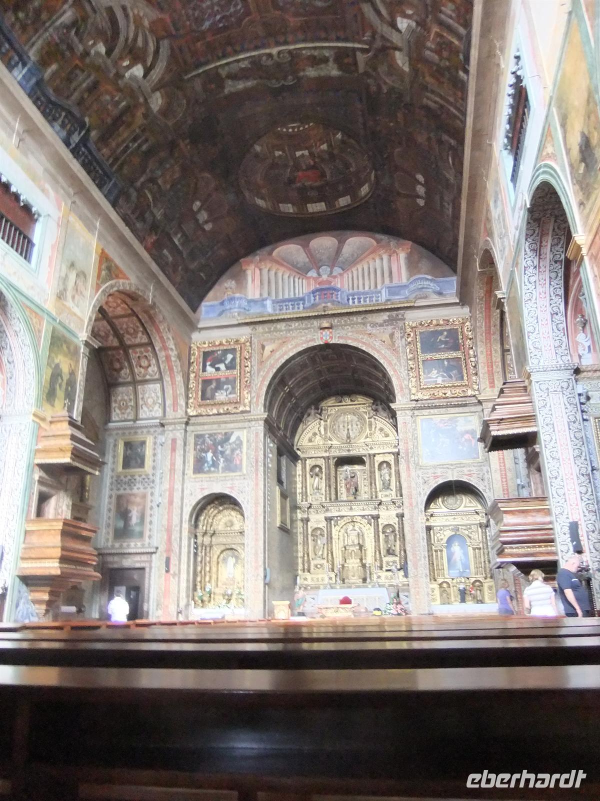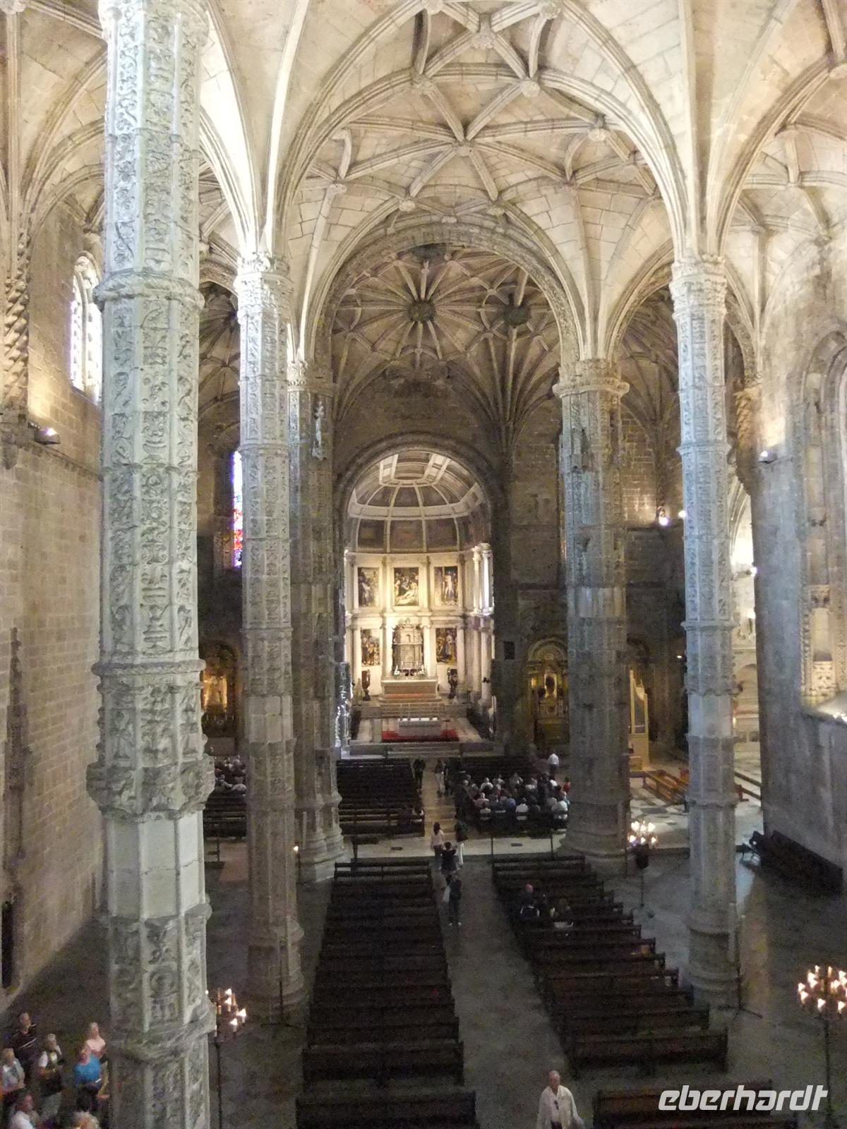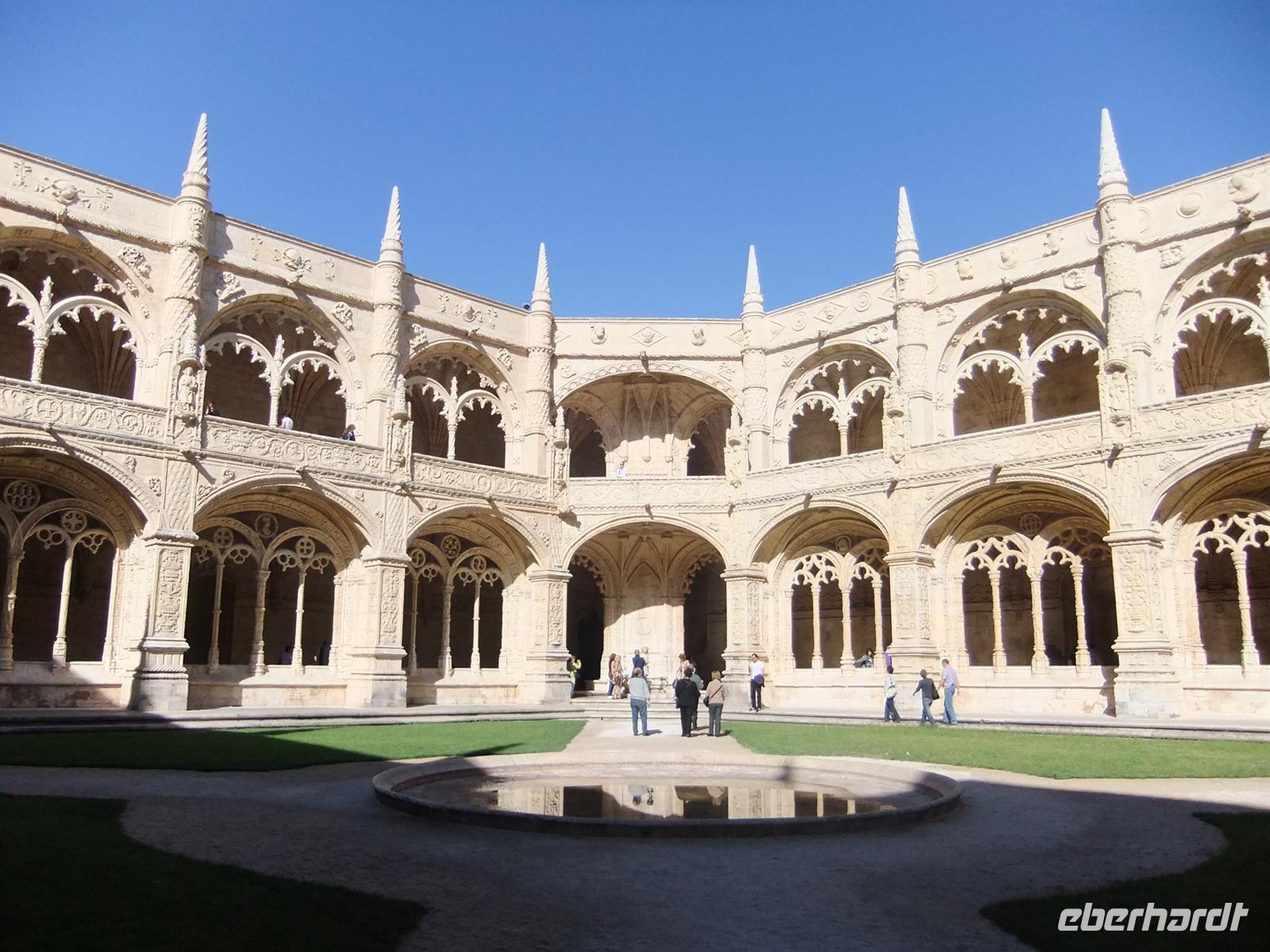im Stadtteil Belém. Da dieses erst 10:30 Uhr öffnete erklärte uns Margarida erste interessante Dinge über dieses Monumental. Unsere Gruppe war schon angemeldet, sodass wir ungehindert eintreten konnten in die Kathedrale des Klosters. Nicht nur von außen ist dieses Bauwerk beeindruckend, sondern auch von innen ist es wahrlich eine schlichte aber schöne Kathedrale. Nach der Kathedrale besichtigten wir den angrenzenden Kreuzgang des Klosters. Im Anschluss hatte die Gruppe ein wenig Freizeit um auf eigenen Wegen das Kloster zu besichtigen. Die meisten gingen, schon in Richtung Ausgang, zur Chorempore,