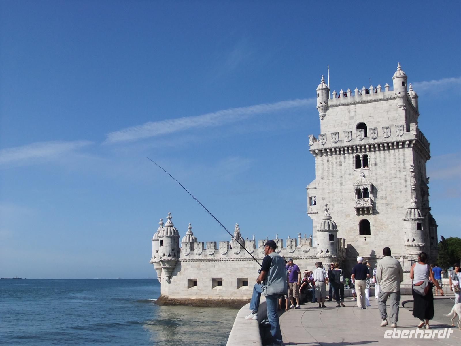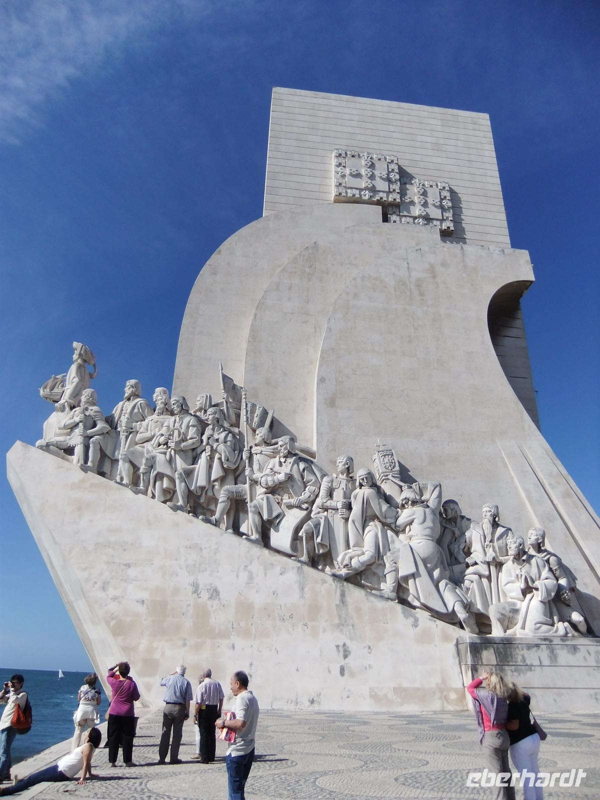 von wo man einen super Blick über das Innere der Kathedrale erhaschen konnte. Schließlich saßen alle wieder 11:30 Uhr im Bus. Weiter ging es danach, immer noch im selben Stadtteil bleibend, zum Torre de Belém. Ein Turm er im 16. Jahrhundert als Wachturm errichtet wurde, später sogar als Zollhaus und Gefängnis diente. Auch hier hatten wir einen kurzen Stopp, der uns genug Zeit ließ, ein wenig Sonne zu tanken und den Turm ausgiebig zu bestaunen. Wir fuhren wieder in Richtung Altstadt entlang des Flusses und hielten sogleich an der nächsten Sehenswürdigkeit an, dem Padrão dos Descobrimentos. Diese Sehenswürdigkeit, die auf Deutsch „ Entdeckerdenkmal“ genannt wird, stellt den Bug eines Schiffes dar, mit dem die portugiesischen Entdecker von anno dazumal die Welt entdeckten. Ganz vorn dabei ist Heinrich der Seefahrer.
