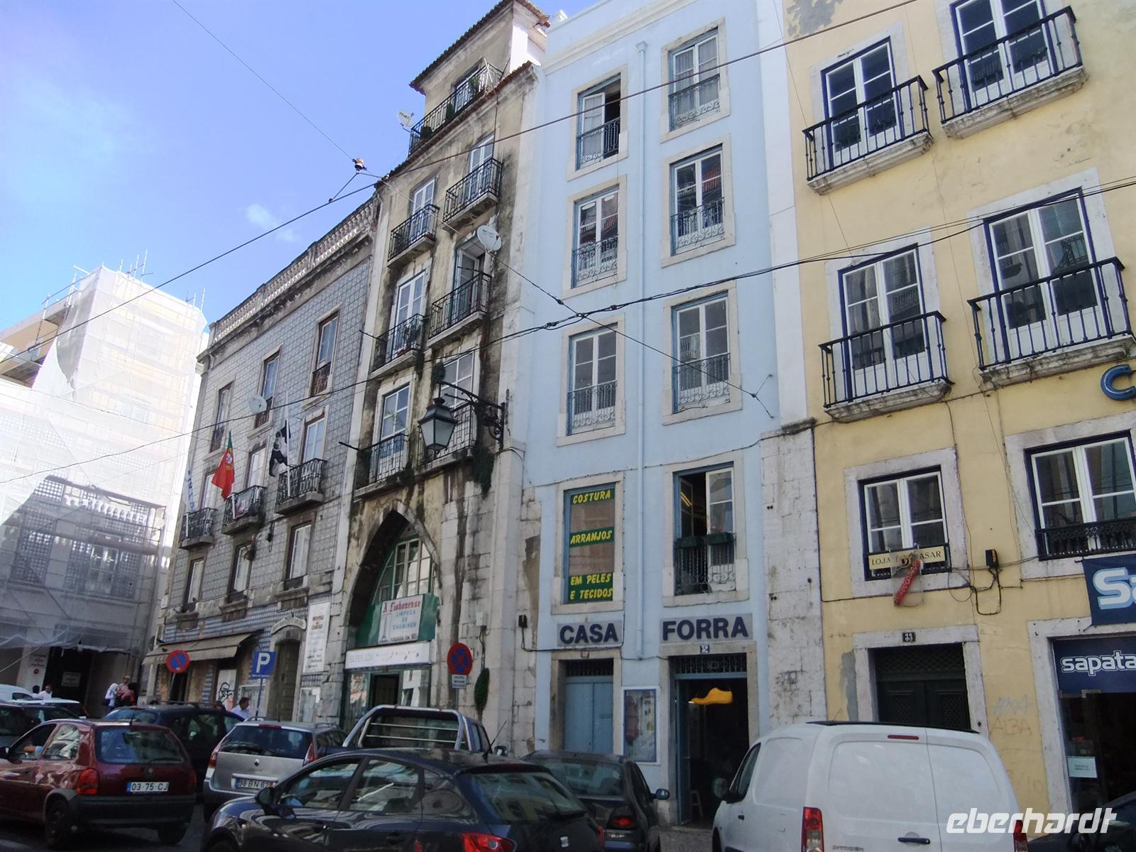 Nach dem Frühstück trafen wir uns alle um gemeinsam mit der Metro in die Stadt zu fahren. Jeder hatte sein Tagseticket dabei, sodass es pünktlich um 09:30 Uhr losgehen konnte. Direkt vor dem Hotel gibt es die Metrostation San Sebastian. Die Metrolinien in Lissabon sind in Farben (blau, grün, gelb, rot) unterteilt. So behält man einen guten Überblick. An besagter Metrostation fahren die Blaue und die Rote (Endstation) ab. Da wir zunächst in die Unterstadt wollten um mit der Electrico 28, eine alte Straßenbahnlinie, zu fahren, mussten wir die Blaue Linie bis zur Station Restauradores nehmen. Bevor man jedoch an den Metrosteig kommt um in die Bahn einzusteigen, mussten wir durch Schranken, die sich einfach mit auflegen des Fahrtickets öffnen ließen. Nachdem wir die Zielstation erreichten liefen wir noch etwa 10 Minuten um zur Haltestelle der Electrico 28 zu gelangen. Unterwegs hielten wir noch an einer Post, um Briefmarken zu holen. Dies dauerte aber ganz schön lange, sodass wir das Vorhaben auf Später verschoben.