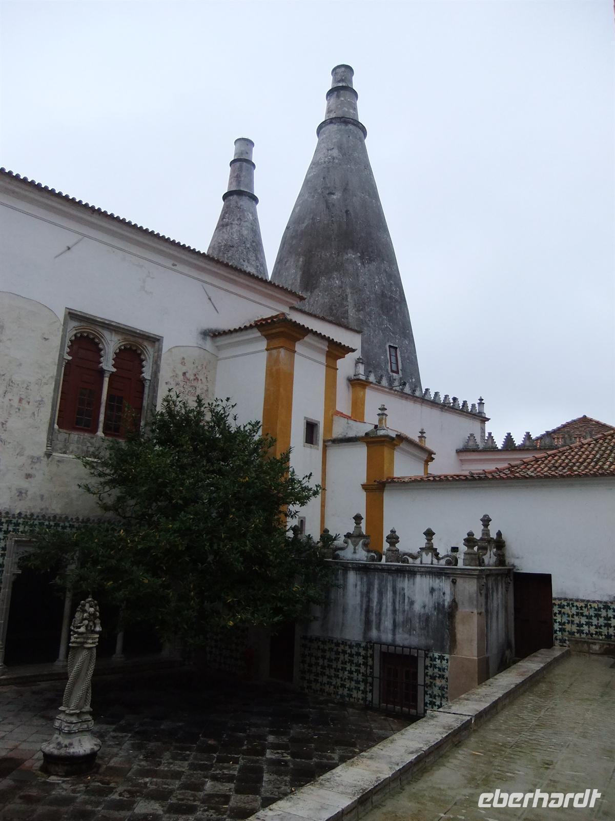 Am Sonntag, dem dritten Tag unserer gemeinsamen Reise nach Lissabon und Madeira, besuchten wir die Gartenstadt Sintra. Hier besuchten wir allerdings nicht die Gärten, sondern das Königsschloss. Margarida erklärte uns während eines Rundganges allerhand, unter anderem über verschiedenste Arten von Kacheln, die in diesem Schloss verarbeitet wurden. Beeindruckend war vor allem die riesige Küche, deren Lüftungsschächte, zwei riesige, weiß gestrichene Kegelsäulen sind. Nach der Besichtigung hatten wir noch ein wenig Freizeit um die kleine Stadt auf eigene Faust zu erkunden. Leider begann es zu Regnen und so suchten viele Schutz unter eigentlichen Sonnenschirmen oder in Cafés. Wir waren alle froh, als wir in den trockenen Bus einsteigen konnten.