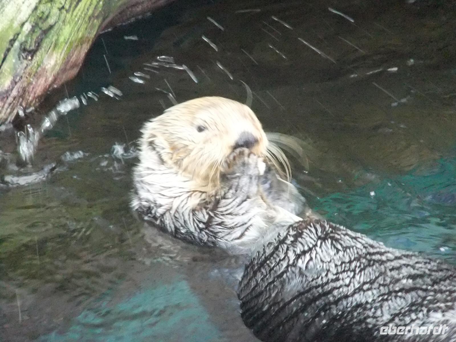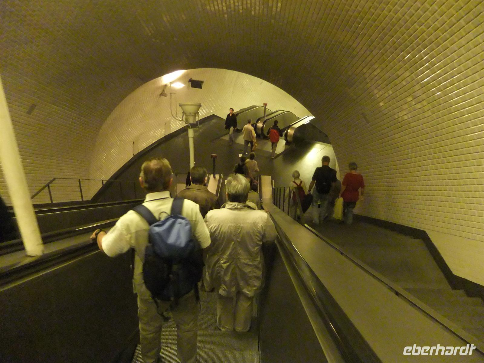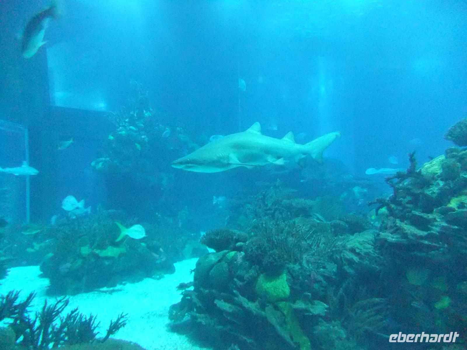 Wir erreichten schließlich die Station Martim Moniz der Electrico 28. Leider passten nicht alle Gäste in eine Bahn, sodass wir uns auf 2 aufteilten. Ich stieg mit in die erste ein, um den Gästen in der zweiten Bahn beim Ausstieg zu winken. Wir erlebten eine rasante Fahrt durch die hügelige Stadt. Manchmal waren es nur Zentimeter, die uns von der Mauer eines Hauses trennten. Trotzdem waren wir wieder froh endlich am Lago do Chiado, einem belebten Platz in der Oberstadt, aussteigen zu können. Wir warteten noch auf die restlichen Gäste in der zweiten Bahn und gemeinsam nutzen wir gleich den Metrozustieg am besagten Platz. Hier stiegen wir sodann in die Grüne Linie ein, die uns bis zur Haltestelle Alameda führte, wo wir dann in die Rote Linie wechselten. Mit dieser fuhren wir dann bis zur Haltestelle Oriente, wo das Expogelände ist. Hier gab ich den Gästen Freizeit um das Gelände auf eigene Faust zu entdecken. Ich ging mit ein paar Gästen zum Ozeanarium wo wir uns das wunderschöne Aquarium anschauten. Gäste die hier älter als 65 waren und entsprechend den Ausweis mithatten kamen hier für den halben Preis rein. Mit einem Fassungsvermögen von insgesamt 5000m³ beeindruckte uns das riesige Wasserbecken in der Mitte des Gebäudes am meisten. Dort sah man vielerlei Fische, wie zum Beispiel Haie, Thunfische, Rochen und vieles mehr. Es herrschte auf jeden Fall immer rege Bewegung in dem Becken. Aber es gab auch noch anderes zu sehen. So gab es einen Seeotter und Pinguine zu bestaunen, genauso wie Papageientaucher.