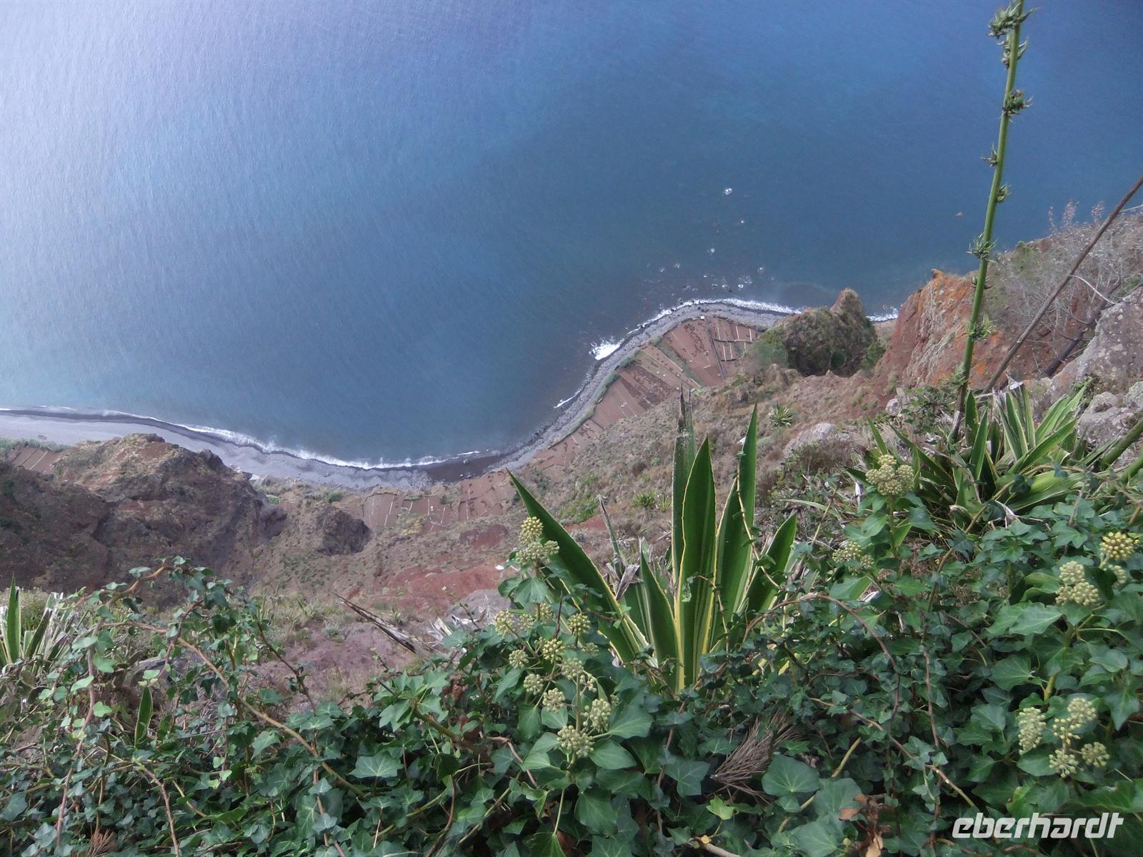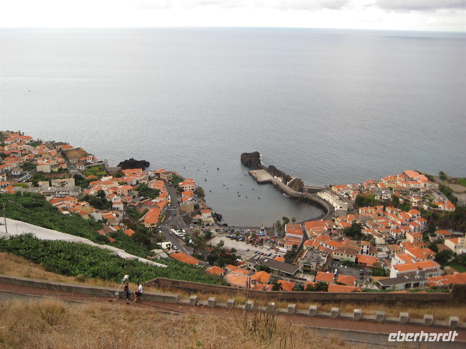 Unser erster gemeinsamer Ausflug mit der großen Truppe führte uns in den Westen der Insel. Zunächst fuhren wir nach Câmara de Lobos, wo wir auf einem schönen Aussichtspunkt Halt machten um die Stadt von oben zu betrachten. Danach ging es weiter zum Cabo Girão, der höchsten Steilküste Europas. Nachdem wir auch hier einen Fotostopp hatten, fuhren wir weiter nach Ribiera Brava. Dieser Ort ist von Felsen umgeben, wobei im Zentrum eine kleine hübsche Kirche steht. Zurück im Bus, teilten Steve und ich kleine Weißbrotkügelchen aus, welche mit Zuckerguss überzogen waren. Etwas hart, aber dennoch nicht zu süß, aber auch nicht jedermanns Geschmack.