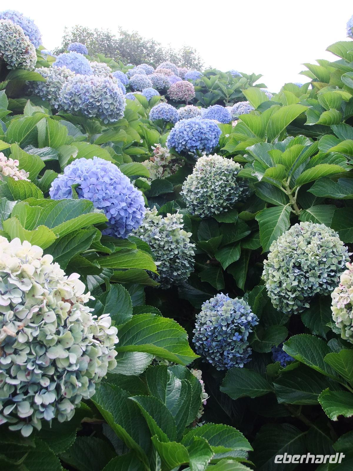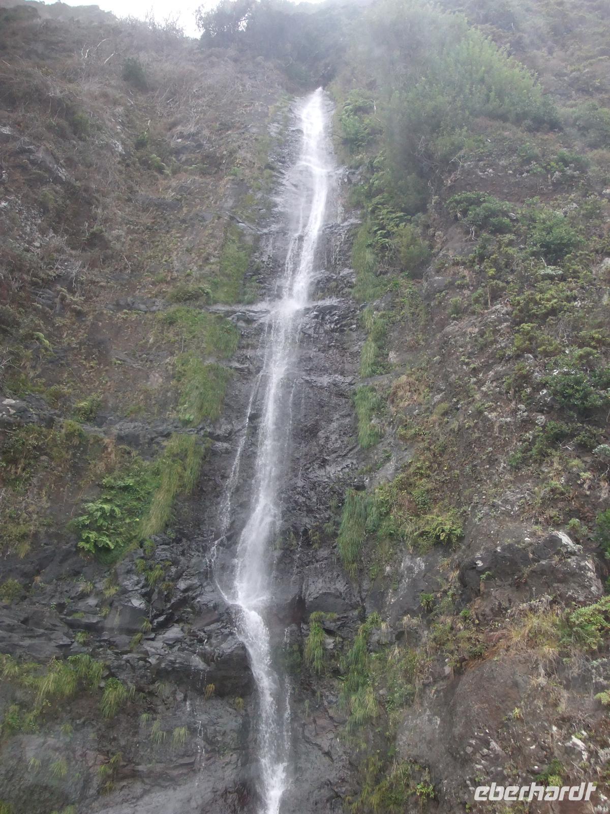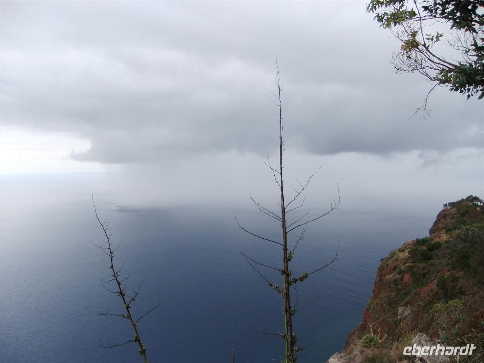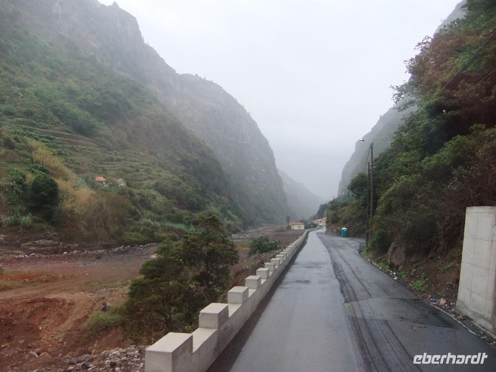 Gut gestärkt fuhren wir also weiter ins Landesinnere. Wir durchquerten die Serra de Aqua - ein Tal, welches vom Unwetter im Februar stark betroffen war und auch noch ist. Man kann noch heute an einigen Stellen sehen, wie der Schlamm von den Hängen rutschte und Häuser mit sich riss. Am Ende der Serra de Aqua erwartete und der Encumeada Pass auf 1007 Metern Höhe. Bei schönem Wetter und keinem Nebel, hätten wir hier vermutlich eine wunderbare Aussicht gehabt, aber leider war dem nicht so. Zumindest konnten wir aber die ersten Agapanthus, die afrikanischen Liebesblumen, bewundern. Unser nächstes Ziel sollte Ribiera da Janela sein. Auf dem Weg dahin durchfuhren wir die Hochebene von Paul da Serra. Aber leider war auch hier starker Nebel, sodass uns keine schöne Sicht gegönnt war. In Ribiera da Janela gibt es nicht viel, sondern lediglich der Fels im Meer mit einem Fenster (=Janela), sodass wir unserer Mittagspause entgegen strebten. Teresa organisierte ein Restaurant, wo man super Degenfisch essen konnte. Uns schien es eher eine Massenabfertigung zu sein, aber geschmeckt hatte es trotzdem und für 12,- €, inklusive Getränke und Dessert, ein unschlagbarer Preis.Dieses Restaurant befand sich in Porto Moniz, welches durch das schöne Meeresschwimmbecken bekannt ist. Leider war das Meer so stürmisch, dass die rote Flagge wehte und man somit nicht baden gehen konnte.