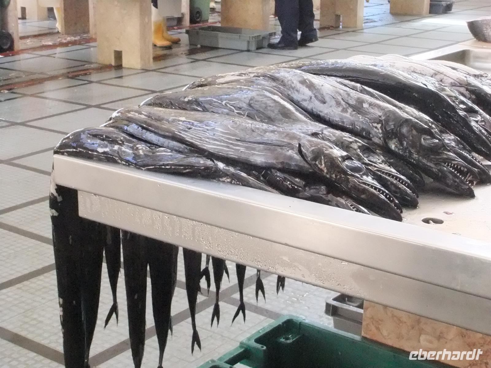 Funchal hieß es heute zu entdecken. Zunächst holte und natürlich Teresa mit Busfahrer Franco vom Hotel ab und wir fuhren erst einmal eine kleine Runde durch die Hauptstadt der Insel. Schließlich hielten wir an der Markthalle an, des es war Freitag und somit Markttag - der beste Tag um das Treiben auf dem Markt wirklich richtig kennen zu lernen. Man sollte den Degenfisch vor einem Besuch des Marktes probiert haben, denn hier konnte man diesen speziellen Fisch in seiner ganzen Pracht bewundern. Er ist schwarz wie die Nacht, sehr lang und hat Zähne wie ein Hai. Einen Schönheitspreis hatte er bestimmt noch nicht gewonnen!
