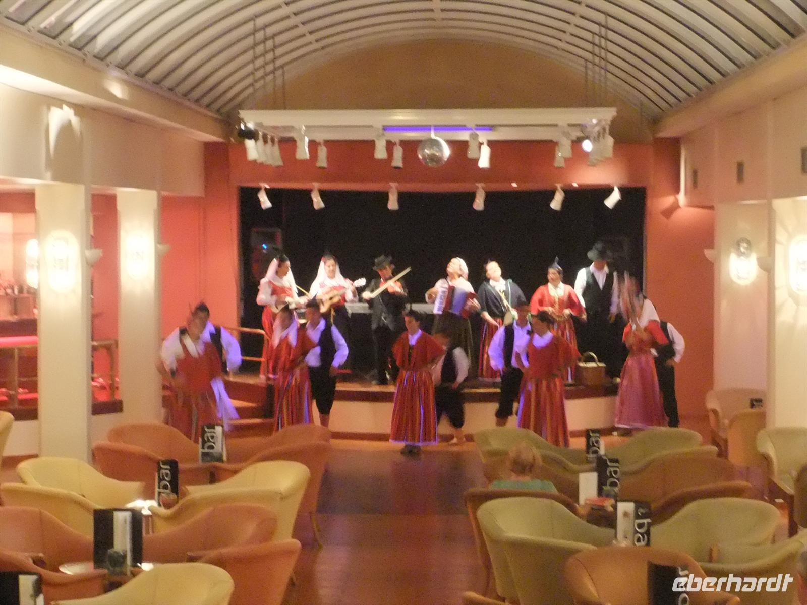 Um 18:15 Uhr fand ein Begrüßungstreffen mit Aurora, eine weitere Mitarbeiterin von TRAVEL1, im Hotel statt. Zum Warm werden, gab es einen kleine Kostprobe vom typischen Madeirawein. Nachdem wir uns noch einmal gemeinsam vorstellten, erklärte Aurora noch mal die einzelnen Tagesabläufe und beantwortete Fragen. Für die zwei fakultativen Ausflüge, die Levadas-Wanderungen, nahmen wir die Anmeldungen der Gäste auf. Somit wussten wir, wie viele teilnehmen wollten, denn bei einer zu großen Gruppe bestellten wir einen zusätzlichen Wanderreiseleiter. Nachdem alle Fragen beantwortet waren, verabschiedete sich Aurora von uns. Steve und ich gingen mit 19 Gästen in eins der reservierten Restaurants, das A Trainera, und wir ließen uns den köstlichen Degenfisch mit Banane schmecken. Sehr lecker.