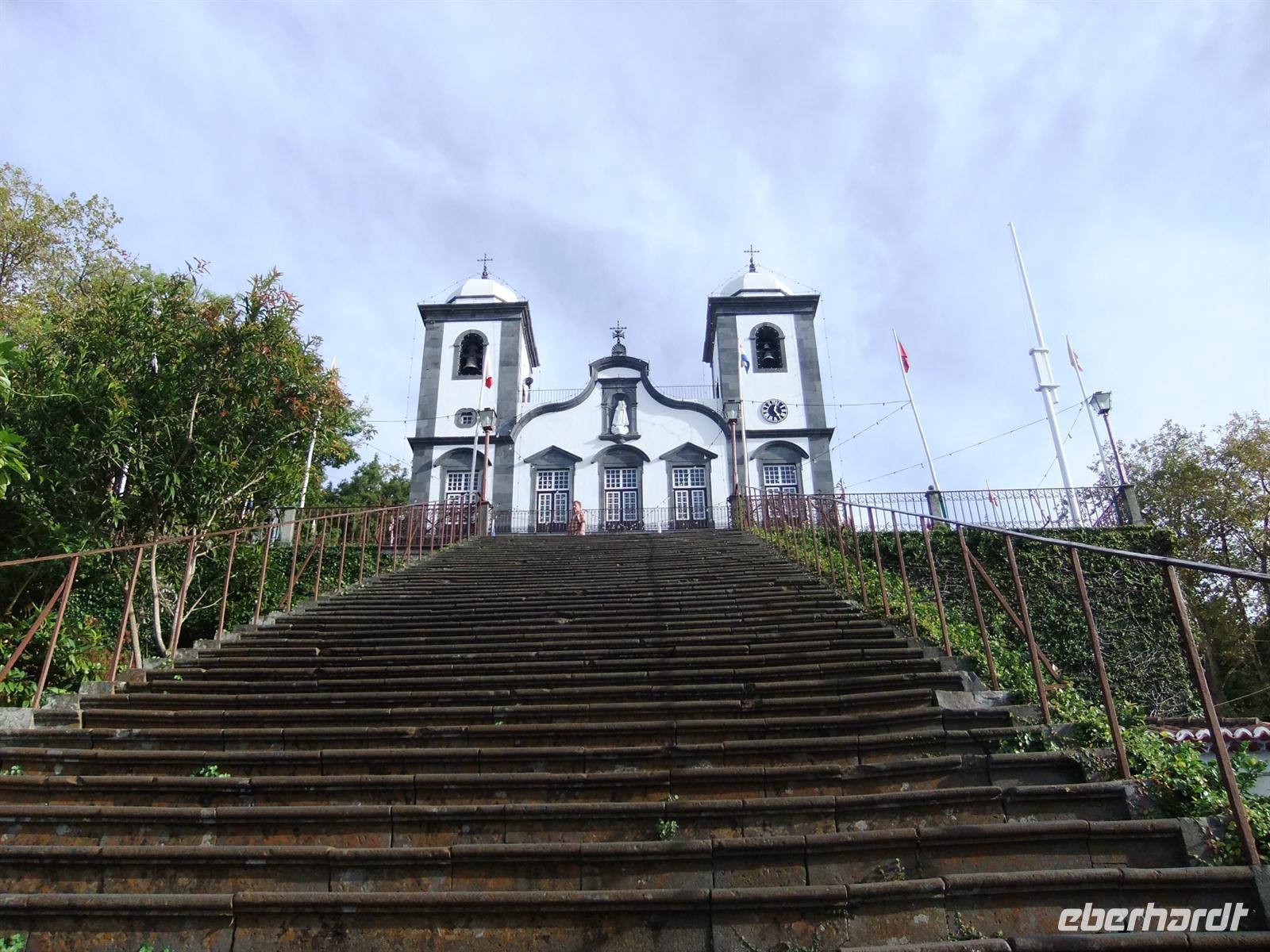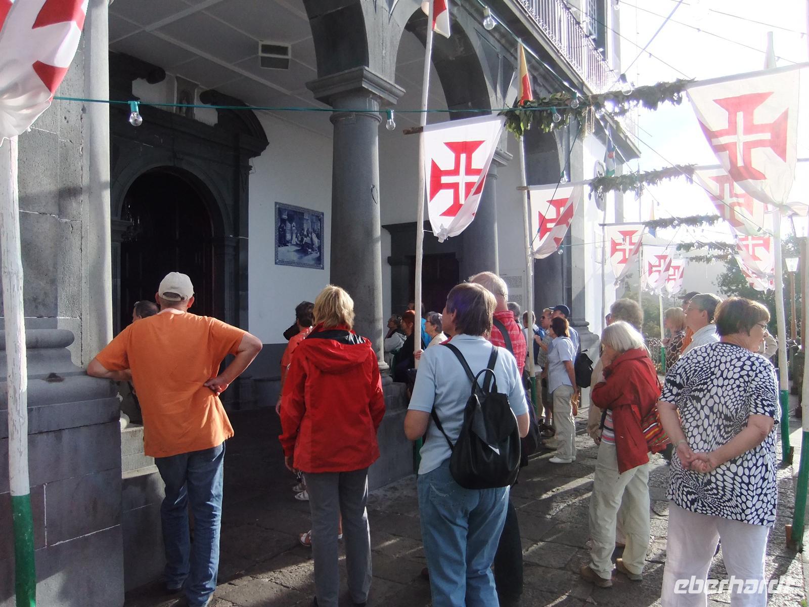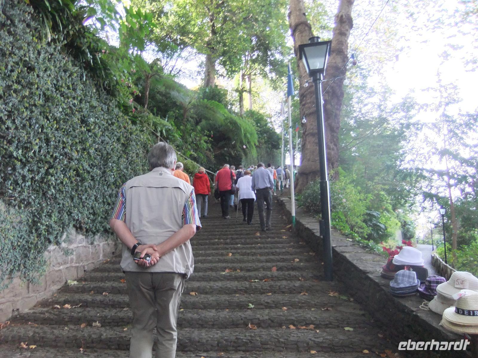 Heute erwartete uns ein weiteres Highlight der Reise. Zunächst fuhren wir nach Monte und besichtigten die Kirche Nossa Senhora do Monte, wo uns Teresa noch einiges darüber erzählte. Wenn eine Prozession stattfindet rutschen Gläubige auf der Treppe vor der Kirche auf Knien hinauf um Vergebung zu erlangen oder Wunder zu erhalten. Das Highlight folgte danach - die Korbschlittenfahrt. Einige Mutige trauten sich und fuhren mit dem Korbschlitten auf den Straßen von Monte nach unten. Die Lenkung und die Bremsen (Gummisohlen aus Autoreifen an den Füßen) stellten zwei trainierte Madeirenser dar. Der Preis betrug pro Person 12,50 €. Diejenigen die keine Korbschlittenfahrt machten fuhren mit Teresa, Steve und mir mit dem Bus zur Abholestelle. Dort sammelten wir wieder alle Gäste ein, gesund und munter.