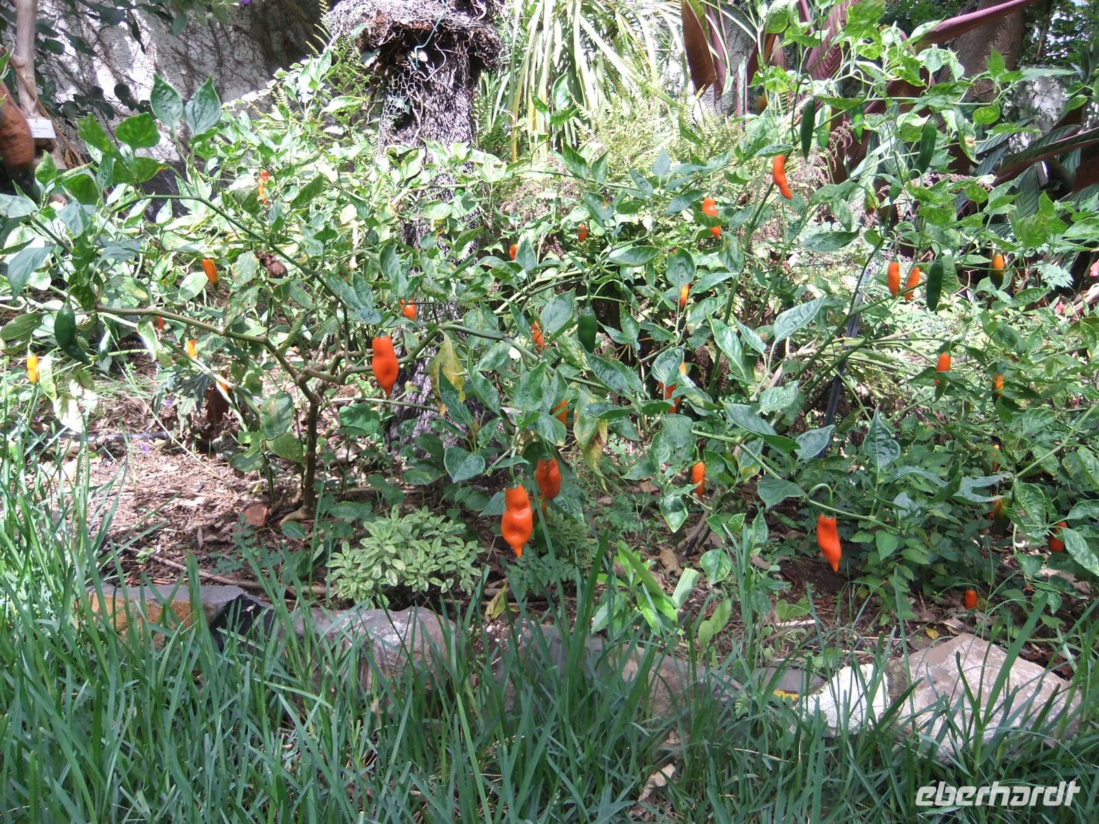Zum Abschluss des heutigen Halbtagesausflugs fuhren wir zu Esmeralda. Wir besuchten ihren wunderschönen Kräutergarten. Zuerst gab es leckeren Wallnusskuchen, Brot und Chili-Gelee mit leckerem Lemonengrastee. Als alle gesättigt waren, führte uns Esmeralda in zwei Gruppen durch ihren Garten und zeigte uns ihre Schätze. Dabei sahen wir z.B. einen Chili-Strauch, einen falschen Olivenbaum und vieles mehr. Letztendlich bestand noch die Möglichkeit leckeres Chili-Gelee und Chili-Soße bei ihr zu kaufen. Auf der Fahrt zurück ins Hotel fuhren wir wieder über Funchals Innenstadt, was einige Gäste wieder nutzten um auszusteigen und auf Erkundungstour zu gehen. Das Abendessen bestellten wir diesmal im Habbeas Coppus.