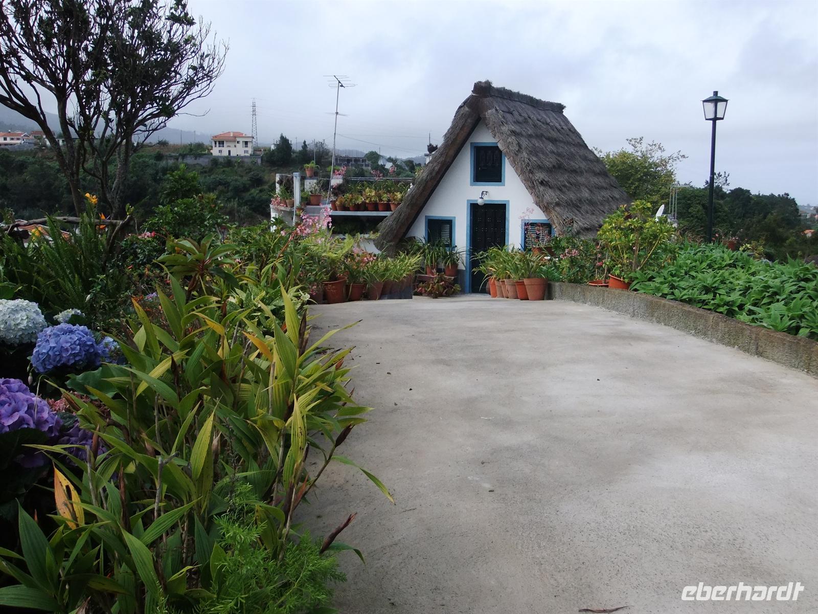 Unser letzter Tag mit Programm führte uns in den östlichen Teil der Insel. Zunächst fuhren wir nach Camacha, welches bekannt für das Korb flechten ist. Wir besuchten eine Korbflechterei, wo man auch Angestellten bei der Arbeit zusehen und Souvenire kaufen konnte. Danach ging es weiter nach Ribiero Frio. Hier schauten wir uns eine Forellenzuchtstation an und gleichzeitig war dies auch der Ausgangspunkt für eine kleine Wanderung zur Aussichtsplattform Balcóes. Anschließend fuhren wir nach Santana, wo wir schließlich Mittagspause machten. Wieder organisierte Teresa das Restaurant. Diesmal gab es leckeren Thunfisch zum Essen. Danach konnte man sich die niedlichen kleinen, typisch strohgedeckten Häuschen, die Casa de Colmo, anschauen. Darin lebte früher eine ganze Familie und auch heute leben vereinzelt Personen darin.