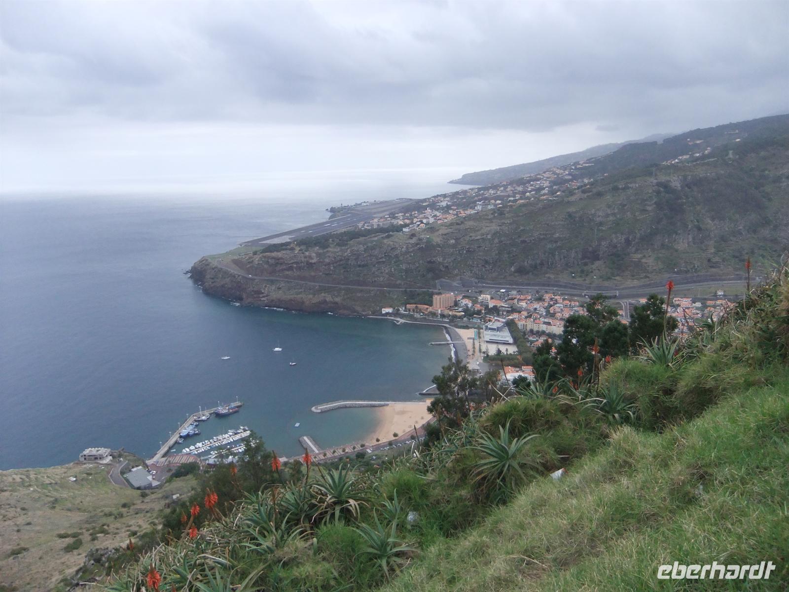 Gestärkt fuhren wir weiter zum Pico do Facho, von wo man zum einen, einen wunderbaren Blick über den Flughafen von Madeira hatte, zum anderen aber den östlichsten Zipfel der Insel betrachten konnte. Da leider der Ausflug zum Pico do Arieiro aufgrund der Waldbrände im August ausfiel, fuhren wir als Ersatz zum östlichsten Punkt von Madeira, zum Ponta do Rosto. Wenn man hier günstig stand, konnte man einen Blick auf beide Seiten (Süden und Norden) der Insel werfen.