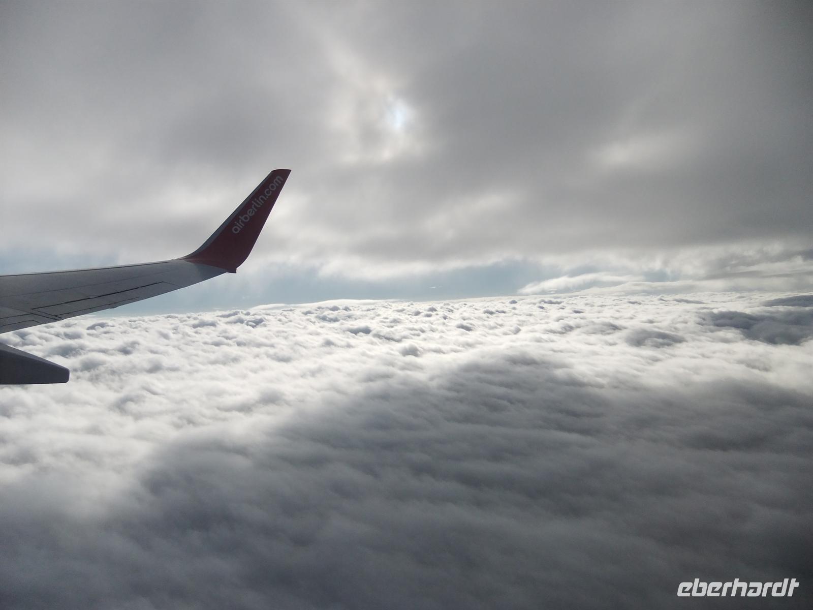 Schon in der Früh, genau um 06:45 Uhr holte mich der Transferfahrer von Zuhause ab, um mich direkt nach Leipzig zum Flughafen zu chauffieren. Sicher und bequem erreichte ich diesen nur eineinhalb Stunden später. Die ersten Gäste erkannte ich schon von weitem an den Eberhardt-Koffergurten und begrüßte sie herzlich. Bis alle weiteren Gäste erschienen sind, vergehen rund 30 Minuten. Nachdem ich die Eberhardt-Reisegäste noch einmal im Ganzen begrüßte und mich als ihre Reisebegleitung vorstellte, gingen wir gemeinsam zum Air Berlin Schalter, wo wir unsere Bordkarten erhielten und das Gepäck abgaben. Nachdem alle problemlos diese Hürde geschafft hatten liefen die Gäste zum Sicherheitsbereich. Ich bildete das Schlusslicht und vergewisserte mich, dass alle eingecheckt sind.