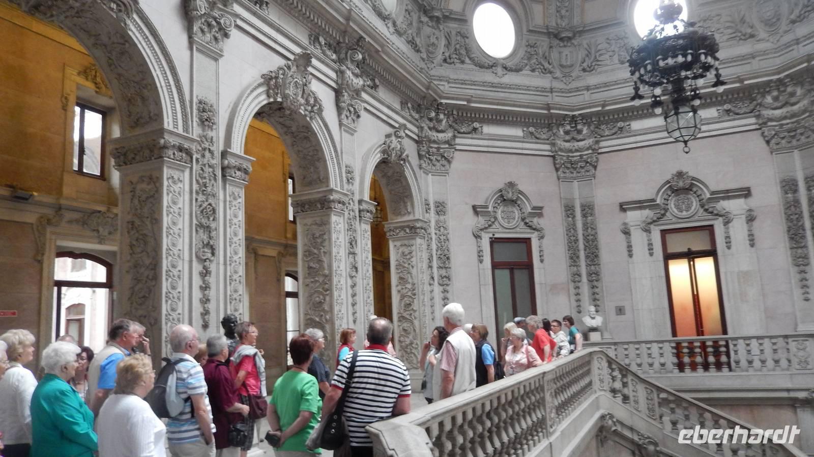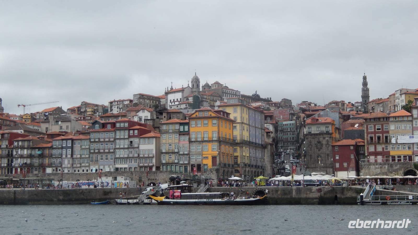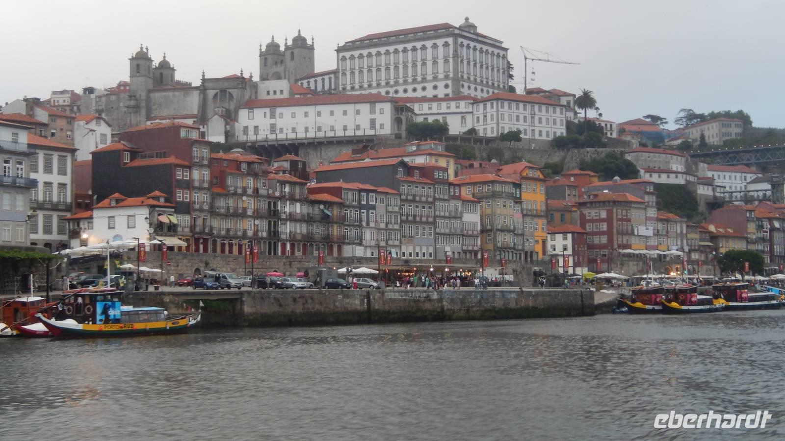 Nachdem Frühstücksbuffet unternahmen wir eine Stadtrundfahrt durch Porto. Die Stadt war im Jahr 2001 die Kulturhauptstadt Europas und die Altstadt wurde ins Weltkulturerbe der UNESCO aufgenommen. Wir fuhren zur farbenprächtigen Cais da Ribeira zur alten Alfandega, einem ehemaligen Zollamt. Wir besuchten die gotische Kirche Igreja de Sao Francisco, welche bereits im 14. Jahrhundert in Auftrag gegeben wurde, und zu den schönsten Bauwerken von Porto gehört. Das alte Börsengebäude Bolsa war besonders Sehenswert. Vier Brücken führen zur Nachbarstadt von Porto, nach Vila Nova de Gaia. Die beeindruckendste ist die Auto- und Fußgängerbrücke Dom Luis I, welche der Assistent Gustav Eiffels geplant hat. Diese Brücke, die aussieht wie ein querliegender Eiffelturm und führt direkt vom Zentrum nach Vila Nova de Gaia. Der Blick von hier über den Douro nach Porto ist von überwältigender Schönheit. Gaias Uferpromenade ist gesäumt von den Bars der Portwein-Firmen, welche hier ihre Keller haben. Natürlich verließen wir Vila Nova de Gaia nicht, ohne in der Sandemann Kellereien den berühmten Portwein zu kosten. Nach dem Mittagessen an Bord konnten wir mit einem Rabello Boot in die Altstadt fahren und die Stadt auf eigene Faust entdecken. Nach dem Abendessen erwarteten uns ein Fado Abend im Salon.