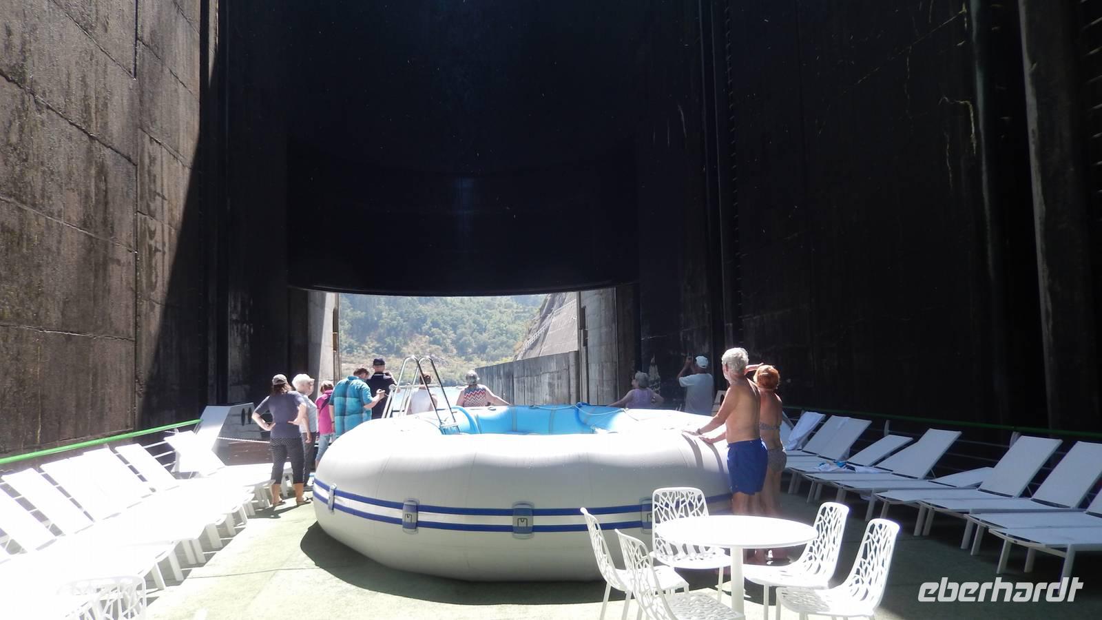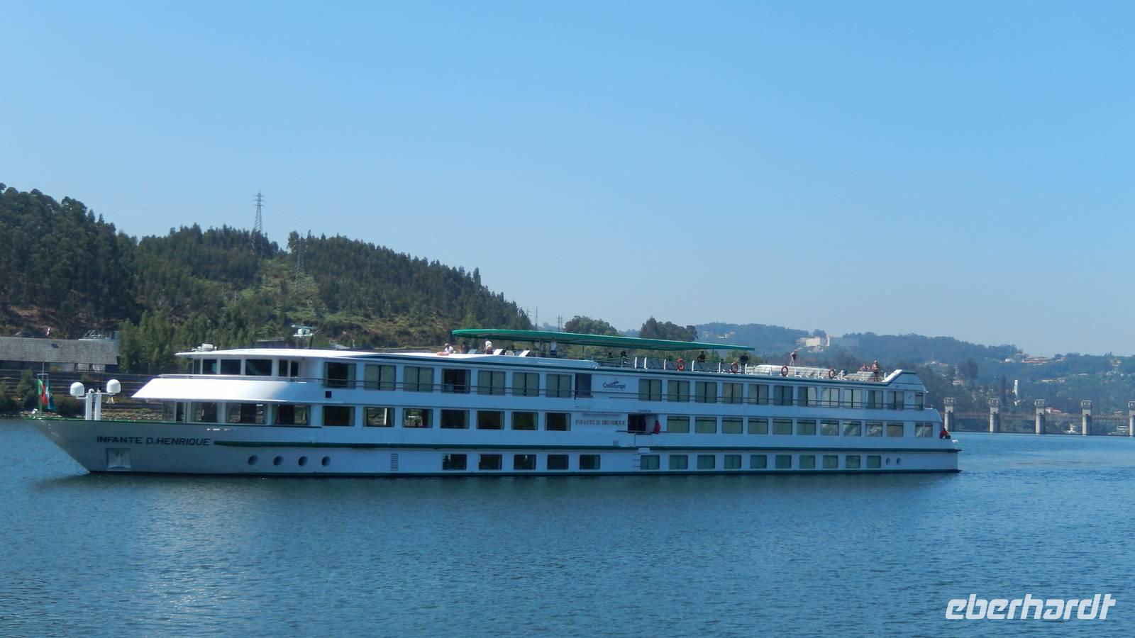 Heute besuchten wir die alte Bischofsstadt Lamego. Eine barocke Kirche krönt die Stadt: die Nossa Senhora dos Remedios. 700 Stufen führen hinauf zur blaugekachelten, doppeltürmigen Kirche - eine Wallfahrt, die jährlich Hunderttausende auf sich nehmen. Wir bummelten durch die uralten Gassen der Stadt, welche schon im 2. Jahrhundert in Schriften als eine der schönsten Städte von Iberien gelobt wurde. Die MS Infante Don Henrique ist in der Zwischenzeit nach Regua weitergefahren und zum Mittagessen gehen wir wieder an Bord. Am Nachmittag genießen wir ein letztes Mal die Fahrt durch die faszinierende Landschaft des Douro-Tals und die beeindruckenden Schleusenanlagen auf dem Weg nach Porto, wo wir am Abend vor Anker gehen. Der letzte Tag unserer Reise klang mit einer schönen Folkloredarbietung aus.