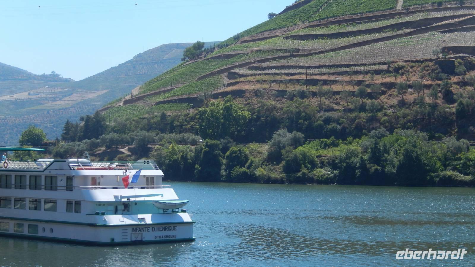 Am Morgen steuert der Kapitän das Schiff flussabwärts. Den Vormittag verbrachten wir an deck, denn die Fahrt führt durch die sonnenverwöhnte Regiao do Vinho de Porto - das Gebiet, in welchem die Trauben des berühmten Portweines angepflanzt werden. "Kraftvoll, feierlich und tief" bezeichnete der portugiesische Poet Herculano diese in Jahrmillionen entstandene Natur längs des Rio Douro. Die Schieferböden, die entlang des Flusses steile, gewundene Terrassen bilden, speichern die Wärme besser als alle anderen Böden und tragen so zur Bildung des hohen Zuckergehaltes bei. Die hier angebauten widerstandsfähigen Rebsorten, die ihre Wurzeln auf der Suche nach Wasser bis zu sieben Meter in den Boden bohren, gibt es im übrigen Europa nicht mehr. Nach dem Mittagessen macht die MS Infante Don Henrique in Ferradosa fest. Der heutige Ausflug führte uns von hier aus über die Weinroute in die terrassenförmig angelegten Weinanbaugebiete des Rio Torto. In einem schön gelegenen Landhaus inmitten der Weinberge lernten wir bei einer Weinprobe die hiesigen Weine kennen. Unser Schiff ist währenddessen nach Pinhao weitergefahren, einem der Zentren der portugiesischen Weinkultur. Bevor auf das Schiff gingen besuchten wir den reizvollen Bahnhof von Pinhao. Er ist bekannt für seine Azulejos - es handelt sich um bemalte Keramikkacheln, für die der Norden von Portugal berühmt ist. Am Abend erwartet man uns im Restaurant zum festlichen Gala-Dinner. Mit Tanz und guter Laune klangt der Tag im Salon des Schiffes aus.