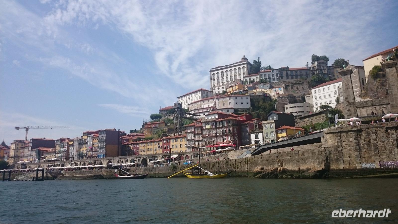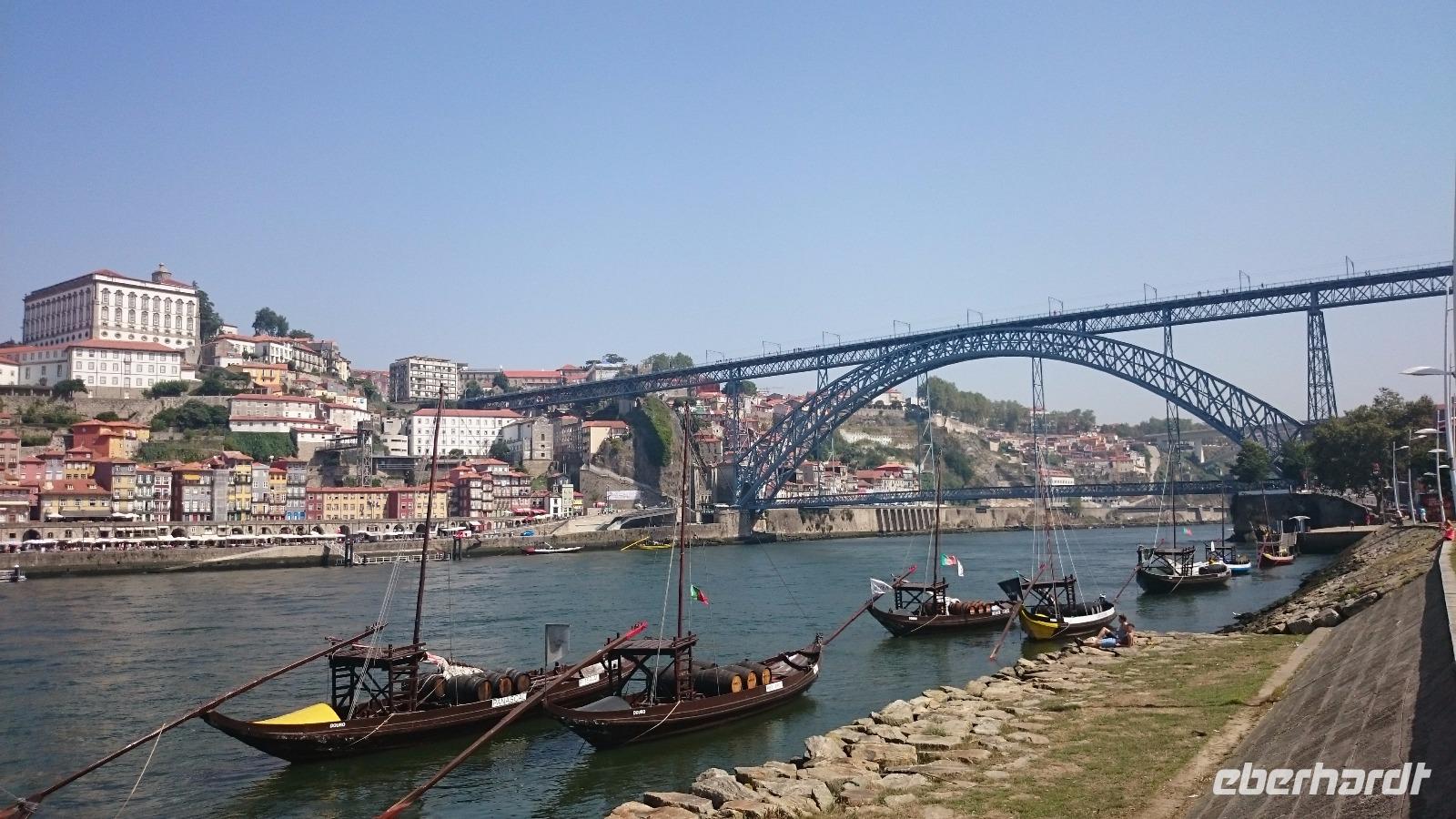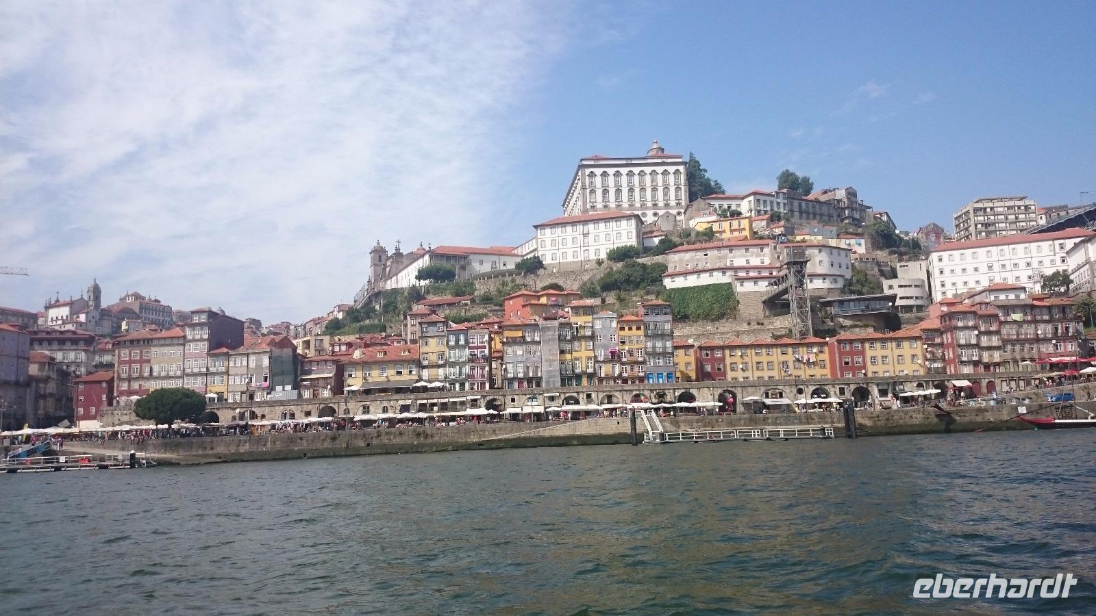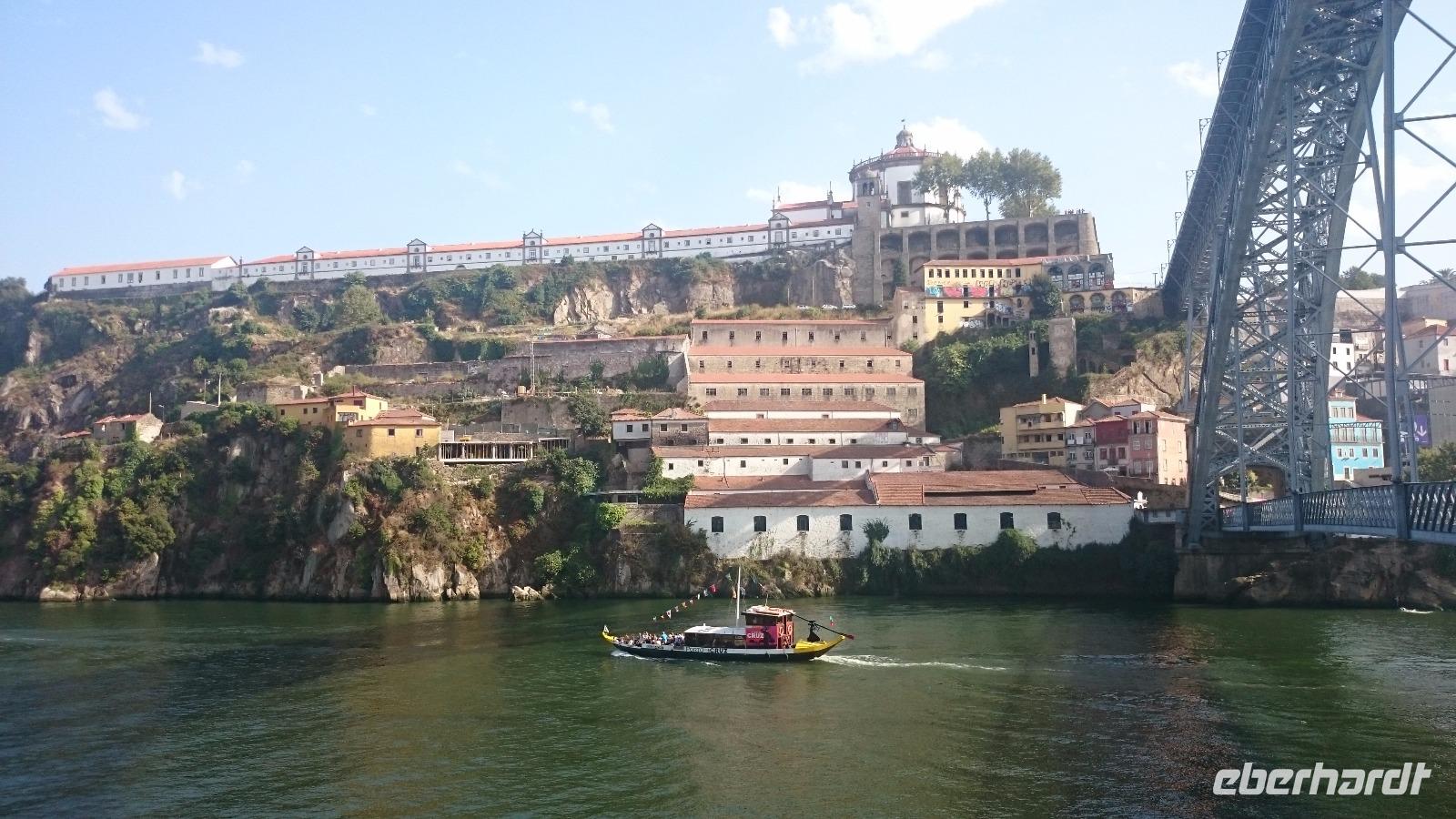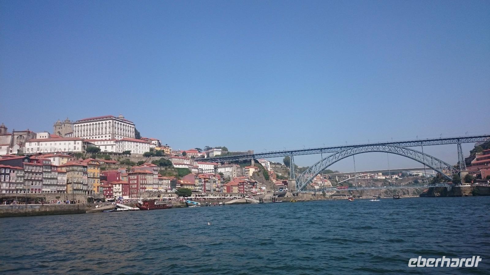 Die Nacht auf dem vor Anker liegendem Schiff war sehr erholsam. Beim Frühstück erfreuten sich die Gäste an einem abwechslungsreichen Angebot. Und wenig später trafen wir uns in einem Bus für deutschsprachige und französischsprachige Reisegäste. Die Stadtrundfahrt in Porto beginnt mit der Besichtigung einer reich dekorierten Kirche und des Palazio de Balas, dem Handelszentrum. Auch G. Eiffel hatte hier schon ein Kabinett. Bis heute dient dieses beeindruckende Gebäude den Händlern der Stadt Porto für Meetings, Verhandlungen und Veranstaltungen. Enge Straßen zeugen von der Geschichte Portos und am gegenüberliegenden Ufer besuchen wir noch eine Portweinkellerei. Auch kurz vor dem Mittagsessen hat die Verkostung von Portwein Ihren Reiz. Am Nachmittag nutzen viele Gäste die Möglichkeit mit dem Rabelo nach Porto zu fahren und dort die Zeit mit Besichtigungen, Einkäufen oder dem Besuch des Cafe Mayestic zu verbringen. Auf dem Schiff erwartet uns nach dem Abendmenü ein Fadoabend in der Salonbar.