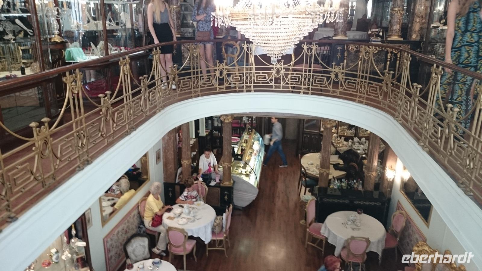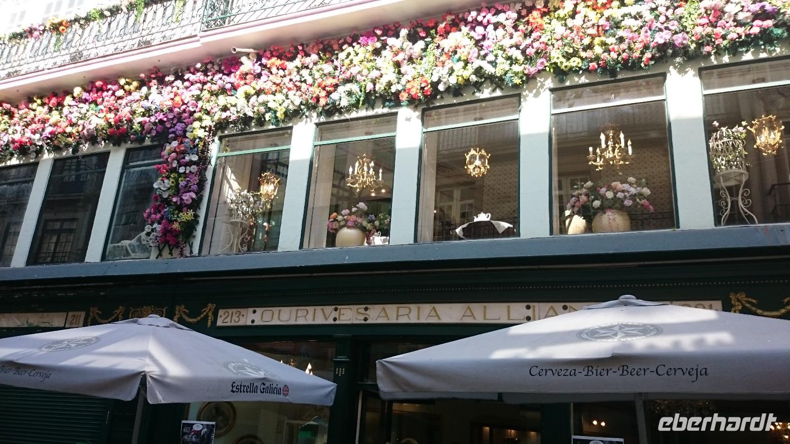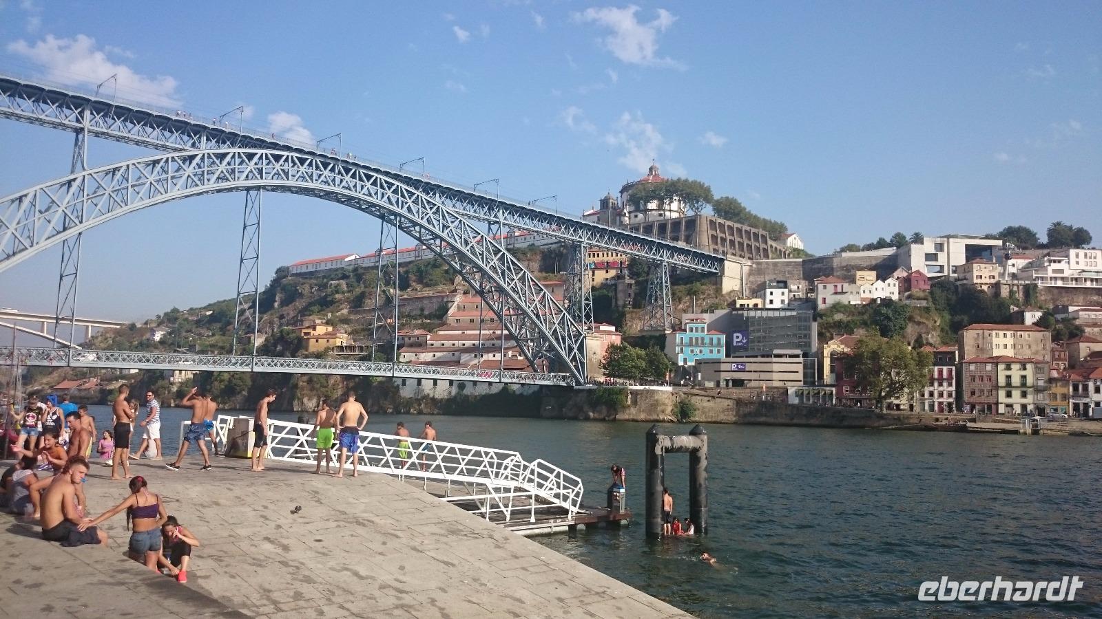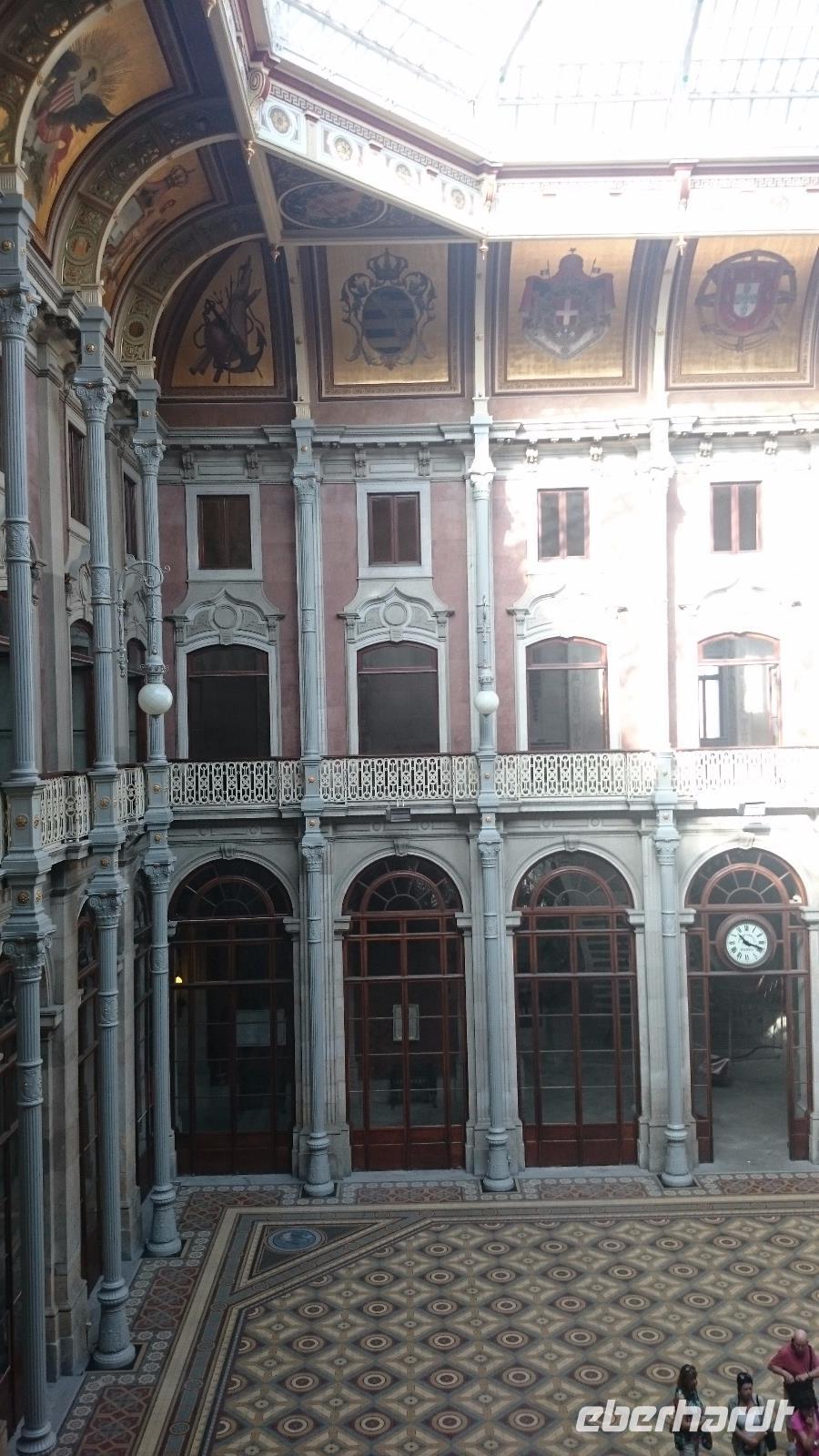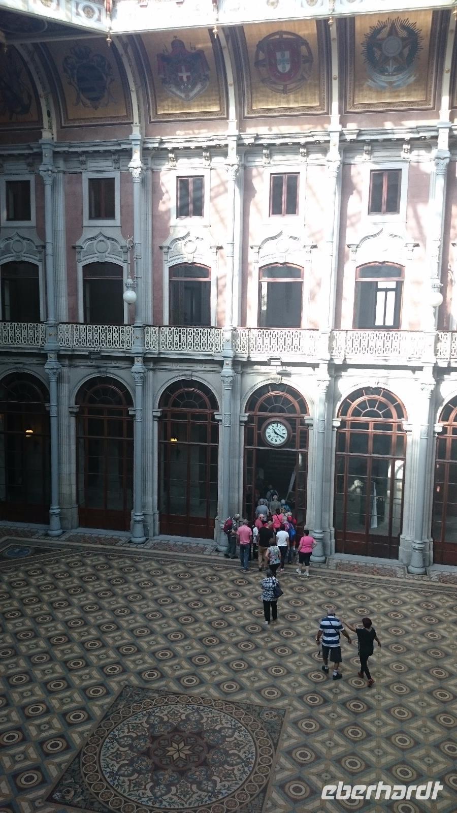 Die Nacht auf dem vor Anker liegendem Schiff war sehr erholsam. Beim Frühstück erfreuten sich die Gäste an einem abwechslungsreichen Angebot. Und wenig später trafen wir uns in einem Bus für deutschsprachige und französischsprachige Reisegäste. Die Stadtrundfahrt in Porto beginnt mit der Besichtigung einer reich dekorierten Kirche und des Palazio de Balas, dem Handelszentrum. Auch G. Eiffel hatte hier schon ein Kabinett. Bis heute dient dieses beeindruckende Gebäude den Händlern der Stadt Porto für Meetings, Verhandlungen und Veranstaltungen. Enge Straßen zeugen von der Geschichte Portos und am gegenüberliegenden Ufer besuchen wir noch eine Portweinkellerei. Auch kurz vor dem Mittagsessen hat die Verkostung von Portwein Ihren Reiz. Am Nachmittag nutzen viele Gäste die Möglichkeit mit dem Rabelo nach Porto zu fahren und dort die Zeit mit Besichtigungen, Einkäufen oder dem Besuch des Cafe Mayestic zu verbringen. Auf dem Schiff erwartet uns nach dem Abendmenü ein Fadoabend in der Salonbar.