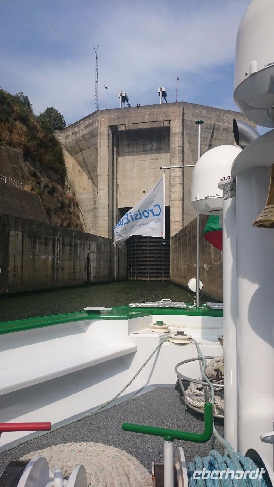 Auch heute verlassen einige Gäste nach dem Frühstück das Schiff, um die nähere Umgebung des Douro zu entdecken. Braga, die portugiesische Schuhstadt steht auf dem Programm. Adele unsere freundliche Stadtführerin erklärt uns die Bedeutung der Stadtmauer und der vielen Kirchen. Der Stadtgarten beeindruckt uns besonders. Nach etwas Freizeit bringt uns der Bus zurück zum Schiff. Am Nachmittag genießen wir das Gleiten über den Douro. Weinberge im Sonnenlicht lassen eine entspannte Stimmung aufkommen. Die 36 m hohe Carrapatelo Schleuse zeugt aber auch von den technischen Errungenschaften für die Schiffahrt auf dem Douro. Nach dem Abendessen nutzen einige Gäste die Zeit für einen Spaziergang in Regua.