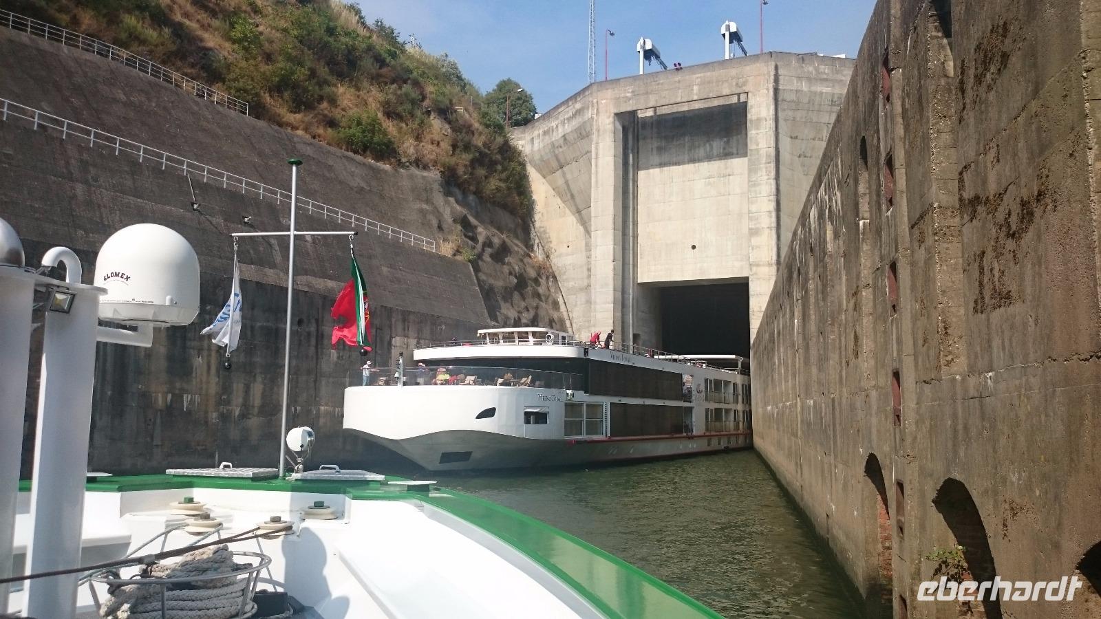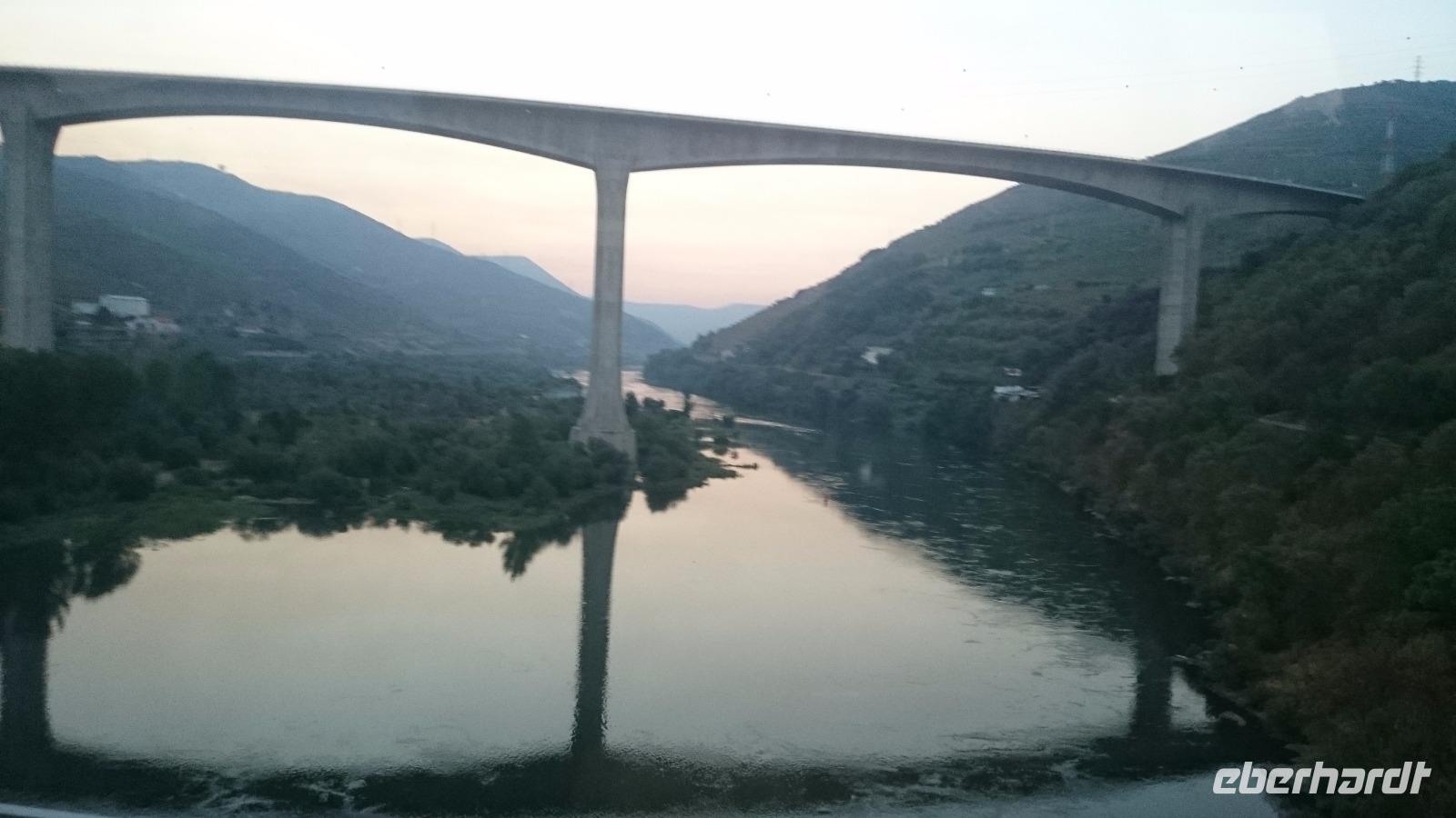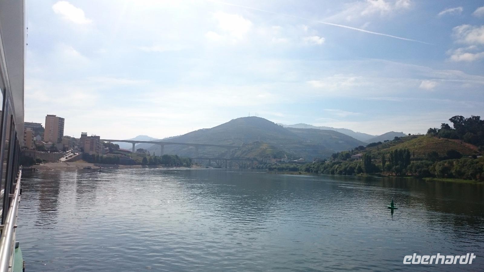 Heute startete der Tag für einige Reisende mit Frühsport auf dem Sonnendeck, andere Gäste versuchten sich an einem Quiz. Die Zeit bis zum Mittagsmenü an Bord verging viel zu schnell, auch dank der reizvollen vorbeiziehenden Landschaft. Der Nachmittag gehörte einer von der Reederei organisierten Zugfahrt von Pinhao nach Pocinho und zurück. Auf Grund eines technischen Problems mit der Schleuse konnte unser Schiff diese Strecke leider nicht wie geplant zurück legen. Aber die Bahnfahrt war eine super Alternative. Ein völlig neuer Blickwinkel auf das Dourotal wurde uns so eröffnet. Alle Gäste genossen diese Abwechslung sehr und versuchten möglichst viele Eindrücke mit der Kamera festzuhalten. Mit einem niveauvollen Galadinner und dem anschließenden Besuch in der Salonbar ging auch dieser schöne Tag zu Ende.
