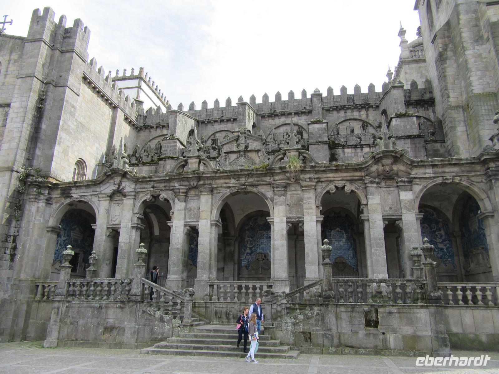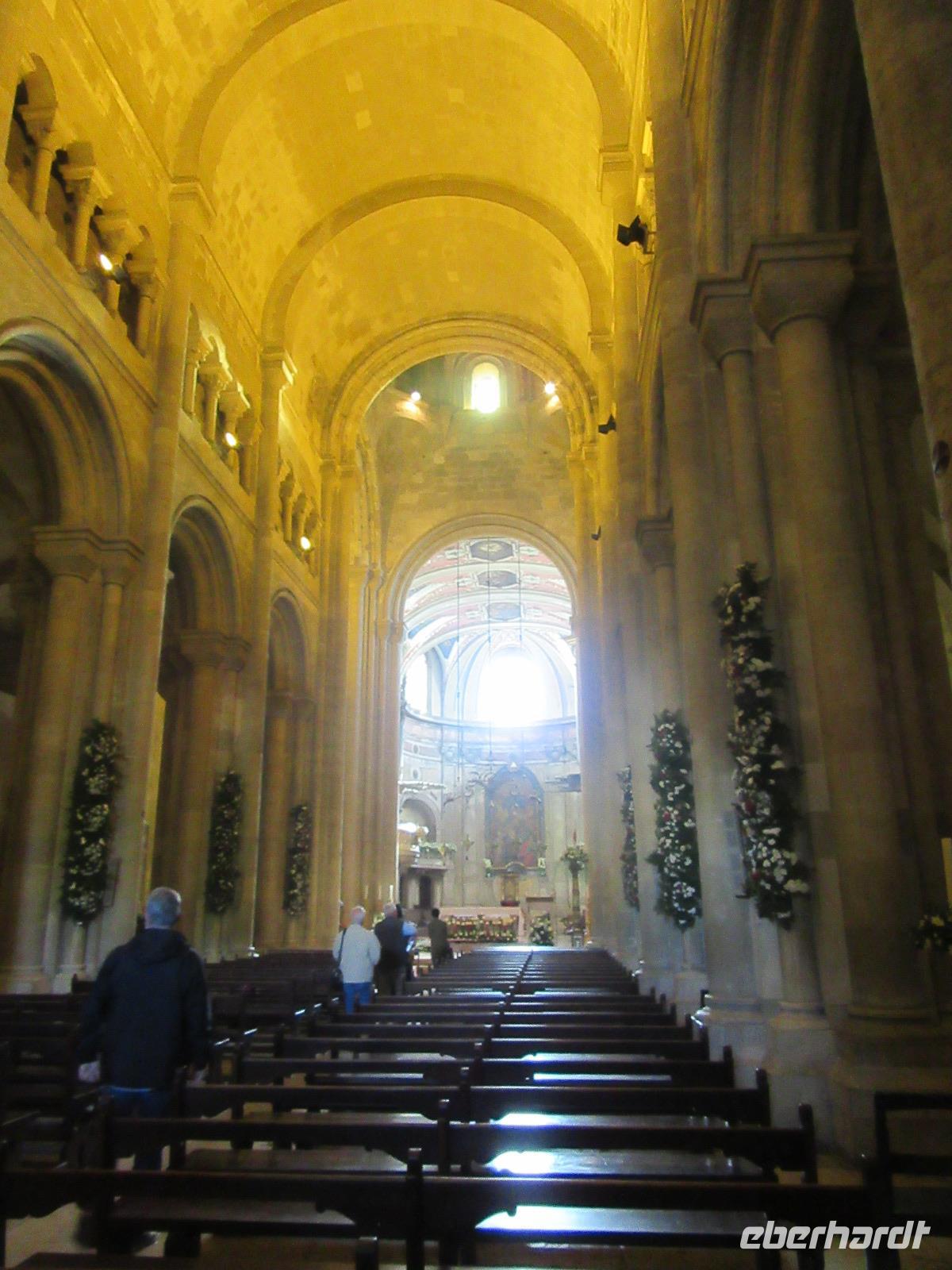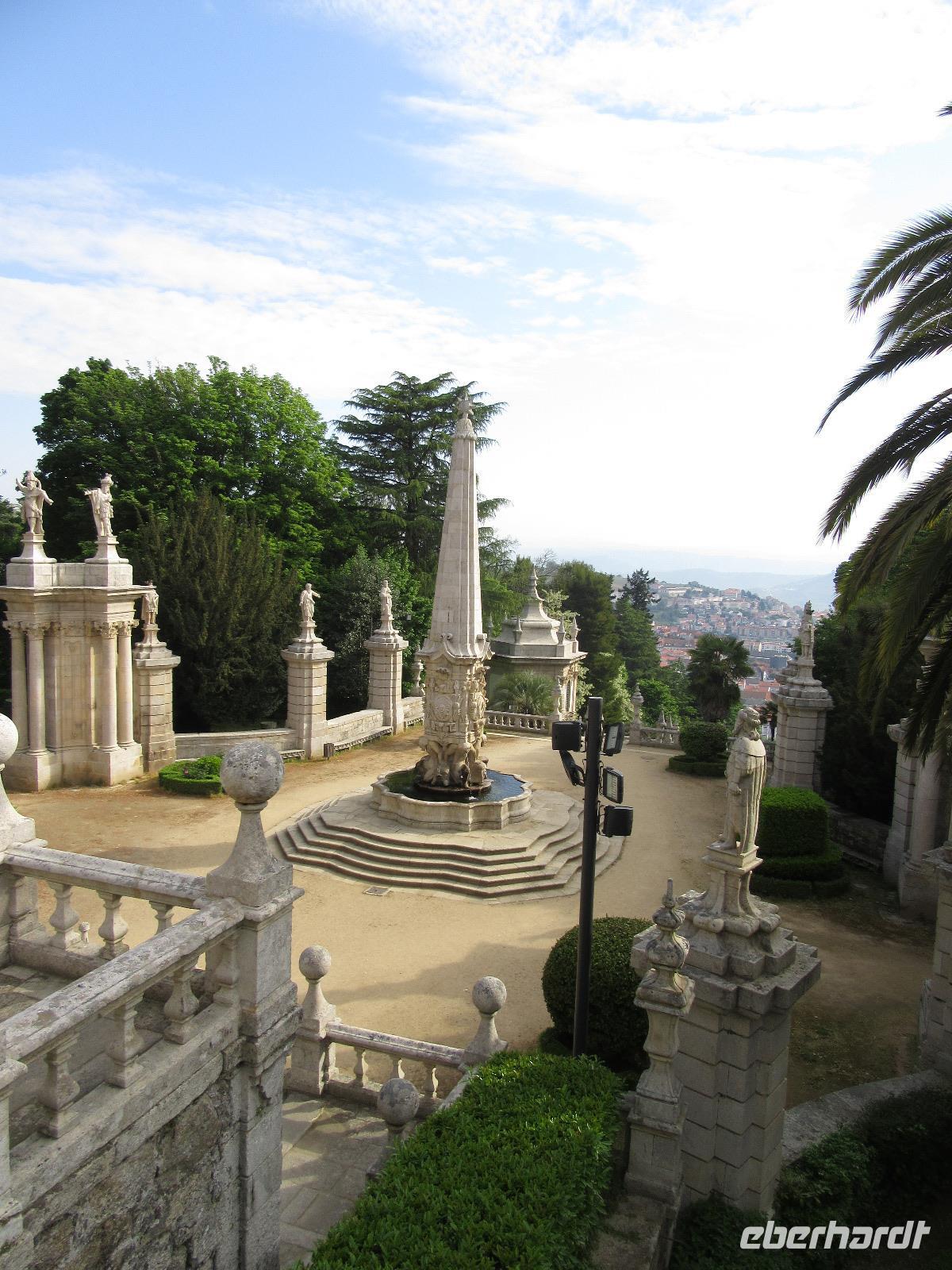 Zu unserem letzten Ausflug fuhren wir wieder mit unserem deutsch-englischen Bus und Paolo in den Ort Lamego. Unser erster Halt war an der Wallfahrtskirche, die Nossa Senhora dos Remedios gewidmet wurde und von der man einen guten Blick über die Stadt erhalten konnte. Noch imposanter aber war die barocke Treppenanlage, die hinab in die Stadt führte. Über 680 Stufen mit schön verziert mit Statuen und Brunnenmusste man hinab steigen, um zum zentralen Platz Lamegos zu kommen. Wir stiegen ungefähr drei/viertel der Stufen hinab zum Bus. Im Stadtzentrum angekommen, erzählte Paolo über die Enstehung und die zahlreichen Kirchen. In der Kathedrale Sé lief bereits der singende Gottesdienst, daher besichtigten wir sie von ausßen. Paolo gab uns genügend Zeit, den Ort auf eigene Faust zu erkunden, einen kleinen Kaffee zu trinken oder den für die Gegend typischen Schinken zu probieren. Anschließend versuchten wir ein zweites Mal in das Innere der Kathedrale zu gelangen, leider war der singende Gottesdienst noch nicht beendet. So erkundeten wir den anschließenden Kreuzgang und hingen zum Bus zurück. In Regua angekommen, verabschiedeten wir uns von Paolo und unser letzter Teil der Flusskreuzafhrt auf dem Douro konnte fortgesetzt werden.